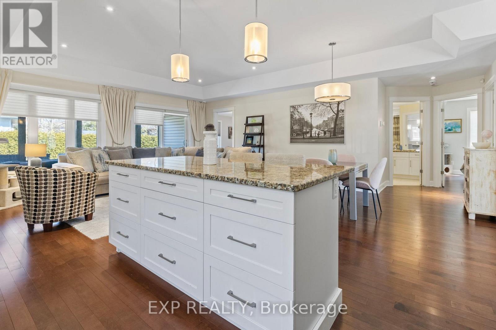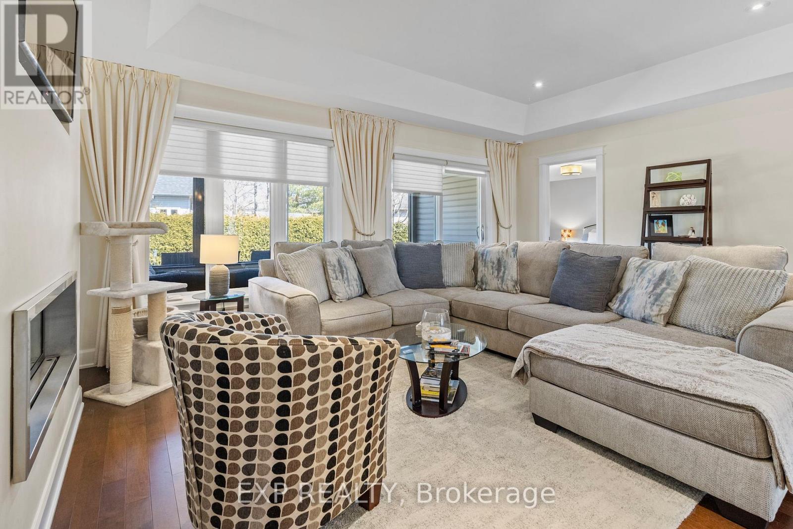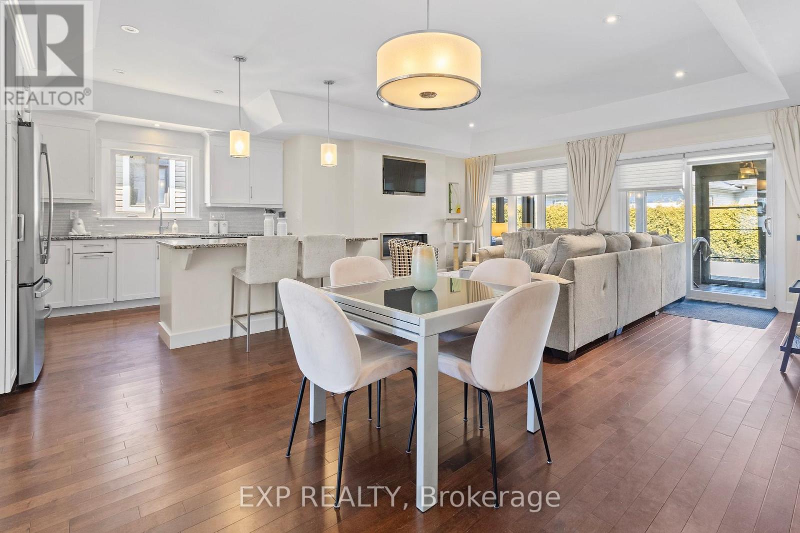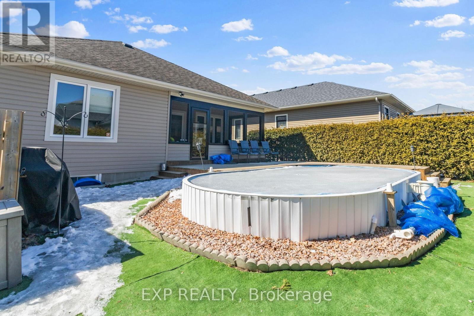 Welcome to this stylish bungalow, offering the perfect blend of modern comfort and low-maintenance living. With 1,353 sq. ft. on the main level plus a beautifully finished lower level, this carpet-free home features engineered hardwood flooring throughout and ceramic tile in all the right places. The open-concept layout is ideal for both everyday living and entertaining, highlighted by a gourmet kitchen with granite countertops, a large island, and seamless flow into the living space with a cozy fireplace. The spacious primary bedroom includes a walk-in closet and a private ensuite, while the convenience of main-floor laundry adds to the home's thoughtful design. Downstairs, the finished lower level provides additional living space along with a bathroom already roughed in for a shower, offering great potential for future customization. Step outside to your private, maintenance-free backyard complete with turf, mature cedar hedging, and a 21 ft. on-ground , heated saltwater pool. The covered rear deck creates the perfect space to relax or entertain all summer long. Additional features include economical natural gas heating, central air, an ICF foundation, a double garage, and a paved driveway. Ideally located just minutes to the Brockville Golf & Country Club, St. Lawrence River Park, Brockville Yacht Club, and downtown, this home truly offers the best of city living. (id:4555)