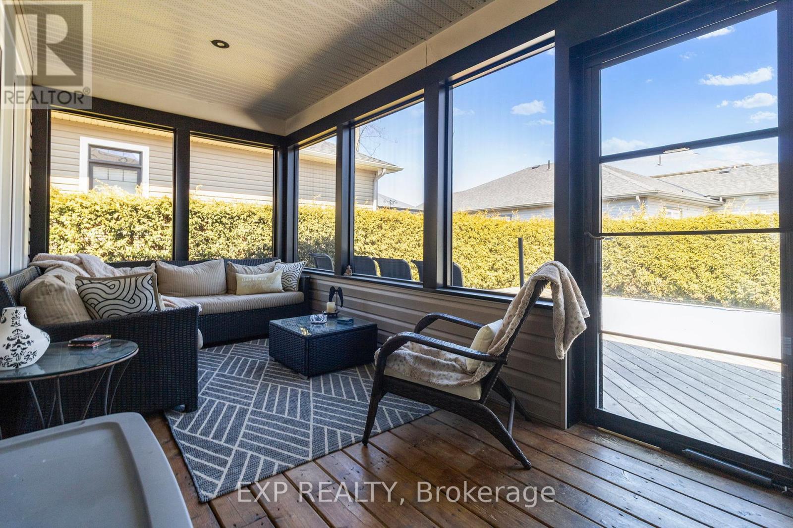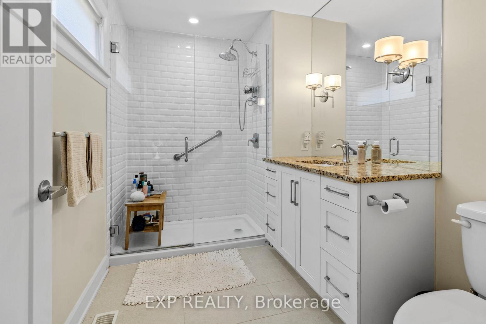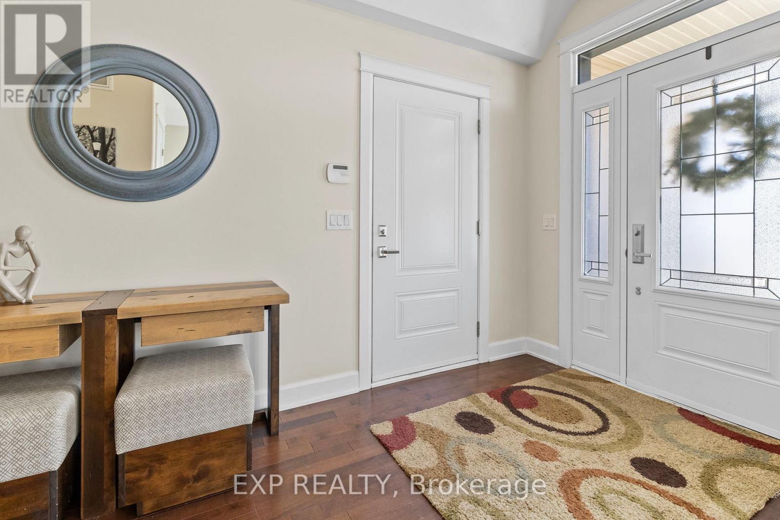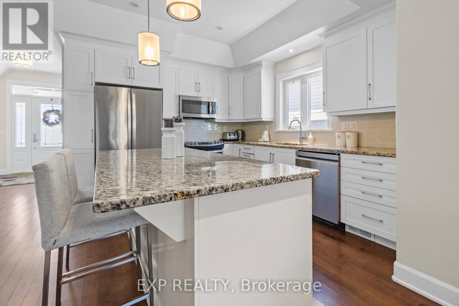 Welcome to this stylish bungalow, offering the perfect blend of modern comfort and low-maintenance living. With 1,353 sq. ft. on the main level plus a beautifully finished lower level, this carpet-free home features engineered hardwood flooring throughout and ceramic tile in all the right places. The open-concept layout is ideal for both everyday living and entertaining, highlighted by a gourmet kitchen with granite countertops, a large island, and seamless flow into the living space with a cozy fireplace. The spacious primary bedroom includes a walk-in closet and a private ensuite, while the convenience of main-floor laundry adds to the home's thoughtful design. Downstairs, the finished lower level provides additional living space along with a bathroom already roughed in for a shower, offering great potential for future customization. Step outside to your private, maintenance-free backyard complete with turf, mature cedar hedging, and a 21 ft. on-ground , heated saltwater pool. The covered rear deck creates the perfect space to relax or entertain all summer long. Additional features include economical natural gas heating, central air, an ICF foundation, a double garage, and a paved driveway. Ideally located just minutes to the Brockville Golf & Country Club, St. Lawrence River Park, Brockville Yacht Club, and downtown, this home truly offers the best of city living. (id:4555)