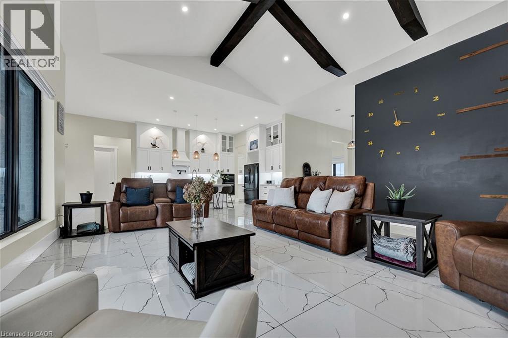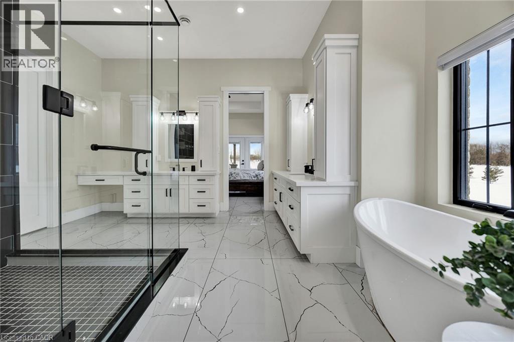 This custom built bungalow, completed in 2023, sits on just under 10 acres and offers a rare mix of modern comfort, quality finishes, and space to enjoy the land. Featuring 3 bedrooms and 3 bathrooms, the home is thoughtfully designed for both everyday living and long term comfort. The foyer welcomes you with marble flooring, in floor heating, and tall ceilings, setting the tone for the rest of the home. The open concept main living area flows naturally and is filled with natural light from large south facing windows. A floor to ceiling stone fireplace anchors the living room and creates a warm, inviting space year round. The kitchen is both functional and well designed, featuring floor to ceiling cabinetry, quartz countertops, stainless steel appliances, a farmhouse sink, and a large island for everyday use. A walk through pantry connects to the formal dining room, offering flexibility for hosting or quieter meals. Built in cabinetry with floating shelves and a bar fridge adds a practical accent and additional storage. Patio doors lead to a covered outdoor living area for easy indoor outdoor flow. The primary bedroom is spacious and bright, with a well appointed ensuite that includes double vanities, a large walk in shower, and a walk in closet. Two additional bedrooms, a dedicated office, mudroom, and generous laundry room complete the main level. Everything is located on one level for easy, efficient living. Two attached garages with in floor heating provide plenty of space for vehicles, storage, or workspace. A standout feature of the property is the approximately 40 x 70 heated shop, complete with in floor heat, large overhead doors, a washroom, and office space. Set on just under 10 acres, this property offers privacy, open space, and room for projects, hobbies, or simply enjoying the outdoors. A newer build that combines thoughtful design, luxury finishes, and practical country living. (id:4555)
