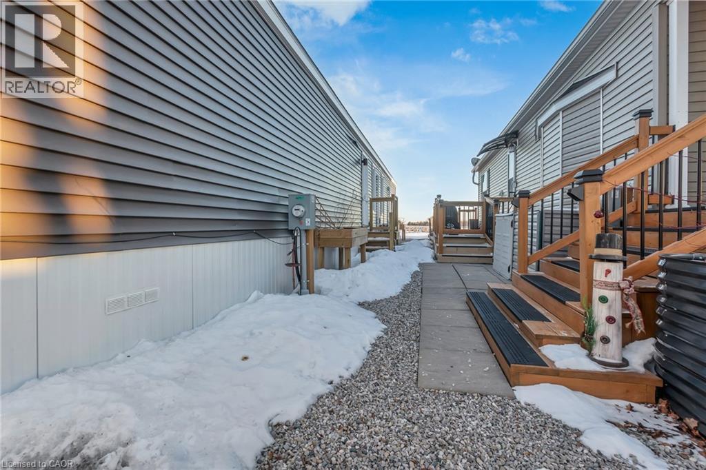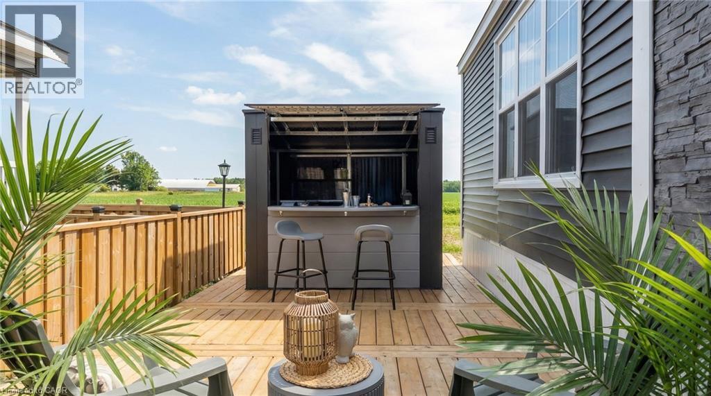 Welcome to stylish, low-maintenance living in this modern and sophisticated modular home, where comfort, convenience, and community come together beautifully. Thoughtfully updated and move-in ready, this home is an excellent opportunity for buyers looking to enjoy an easy lifestyle in a friendly park setting with fantastic amenities and a convenient location. Inside, you'll appreciate the practical upgrades and included extras that make settling in simple, including the transom windows radiating natural light, all newer appliances (2023), window coverings, built-in closet organizers, a large primary bedroom with ensuite bathroom and walk-in closet, a modern kitchen with loads of cabinet space and pull out drawers and an owned water heater. The home also offers 200 amp service, providing added flexibility. Outside you will be pleased with your brand new expansive deck with party shack, and 2 + full parking spaces. Beyond the home itself, the community lifestyle is a true highlight, with friendly neighbours and access to a lake and beach area for relaxation and recreation, including fishing, kayaking, and organized activities. Residents can also enjoy a dog park, playgrounds, and school bus pickup and drop-off, making this a great option for a variety of buyers. The location is ideal for commuters and those who want nearby conveniences, with easy access to Highway 403, approximately 20 minutes to Brantford, 15 minutes to Woodstock, 10 minutes to Burford for groceries, and just 4 minutes to Cathcart Variety for grocery and drink selection. Park fees include free garbage pickup every Sunday, annual property taxes, park maintenance, water, and a wide range of community activities such as bingo, trivia, karaoke, and more. If you've been searching for a home that offers modern style, affordable living, and a welcoming community lifestyle, this one is a must-see. (id:4555)
