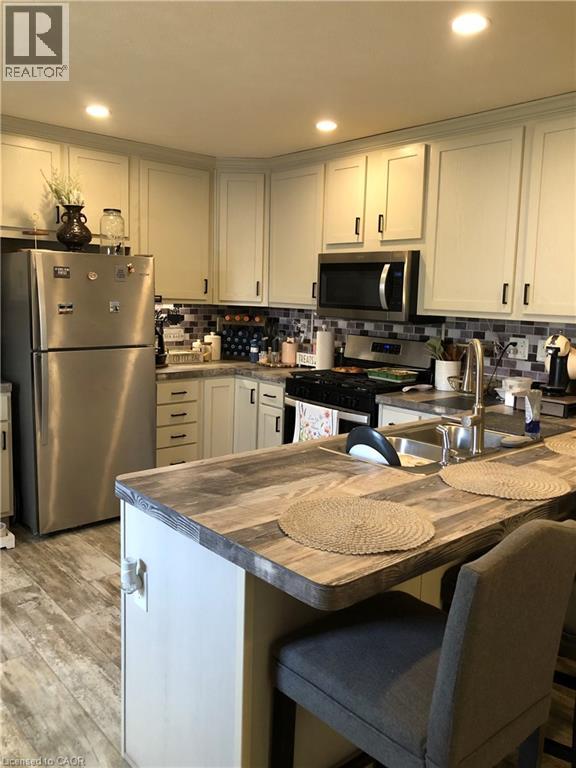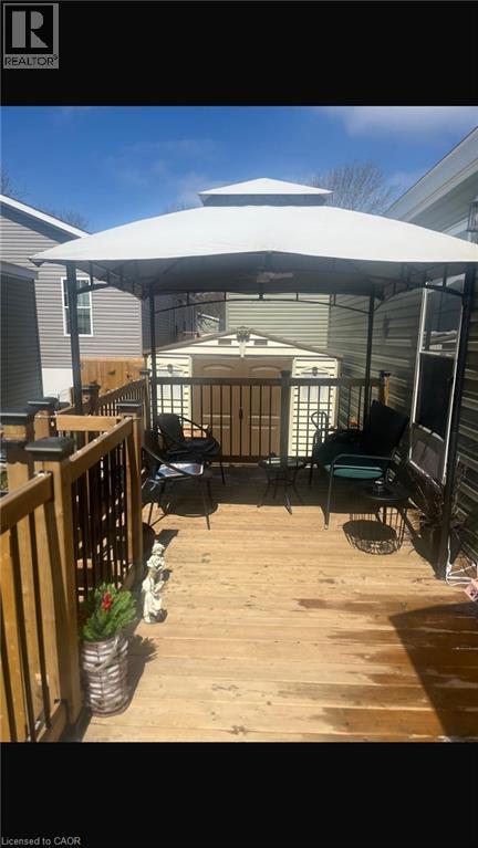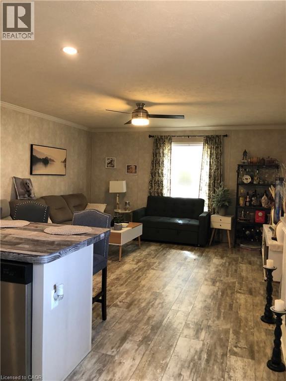 Welcome to this modern 2023 park home in the sought-after Twin Springs community, just minutes from Burford. Offering bright, open-concept living, this well-appointed home features a stylish kitchen with a large centre island, floor-to-ceiling pantry, and stainless steel appliances overlooking the living and dining area. The home includes a spacious primary bedroom, one additional versatile bedroom, and a full 4-piece bathroom. Enjoy outdoor living on the newly built extended treated wood deck, complete with a convenient storage shed. A rare oversized parking pad provides four dedicated parking spaces, an exceptional feature for the community. Residents of Twin Springs enjoy access to a spring-fed lake, sandy beach, and community events, all conveniently located near Brantford and Highway 403. (id:4555)