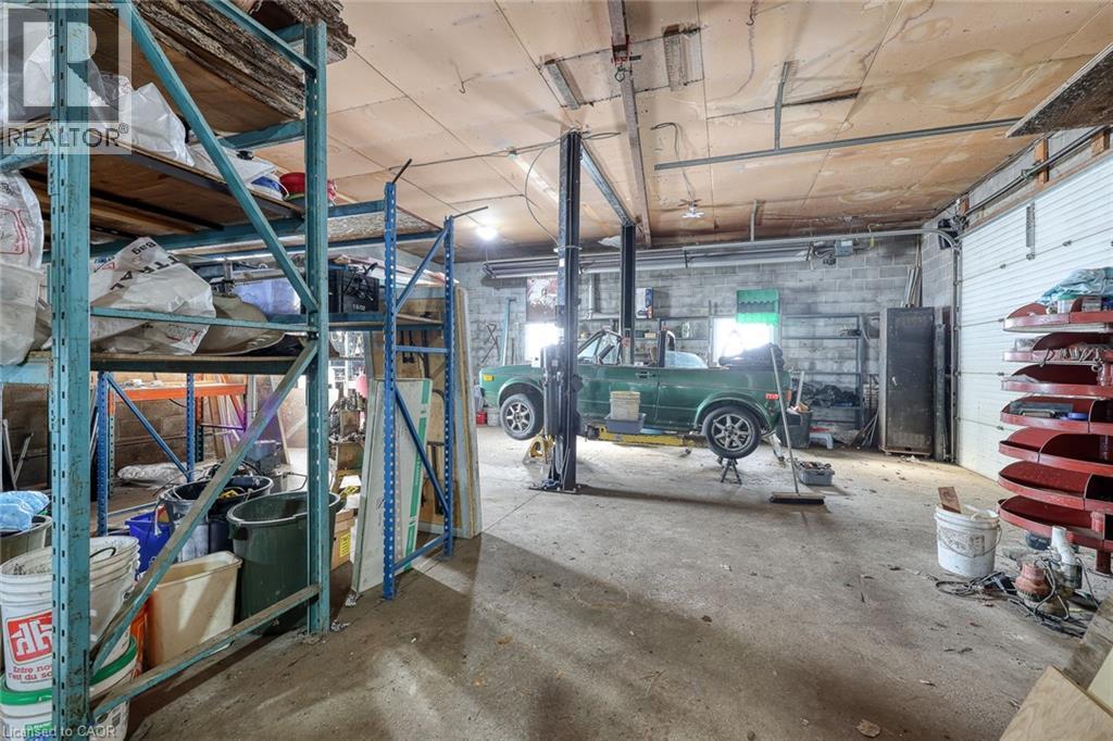 Set on 1.33 acres in a strategic rural location just minutes to Highway 401, this distinctive live and work opportunity offers space, functionality and long term potential in one well positioned property. The partially heated shop spans approximately 2,700 square feet with 12 foot ceilings and is thoughtfully configured for a wide range of operational needs. It features two bay doors including one 10 foot door and one standard size door for seamless vehicle and equipment access, poured concrete floors, a durable steel roof, five newer windows, dedicated office space and a convenient two piece washroom. A hoist is included, along with select work benches and racking that will remain. The building is serviced with 220 volt electrical service and includes a 220 volt plug suitable for equipment requiring that connection. The expansive layout accommodates fabrication, mechanical work, storage, trades or contracting operations with flexibility to adapt as your business evolves. Extensive on site parking provides ample room for staff, clients, trailers and larger vehicles, supporting efficient day to day operations. The detached one and a half storey residence offers comfortable living quarters with opportunity for customization. The main level includes a spacious primary bedroom connected to a smaller adjoining room that could function as a nursery, private office, dressing room or potential second bedroom depending on layout preferences. The home includes a full bathroom and additional powder room. The furnace and water treatment iron filter are approximately five years old, all water lines in the home have been replaced, and the property offers a solid structural foundation ready for thoughtful updates or continued use. (id:4555)