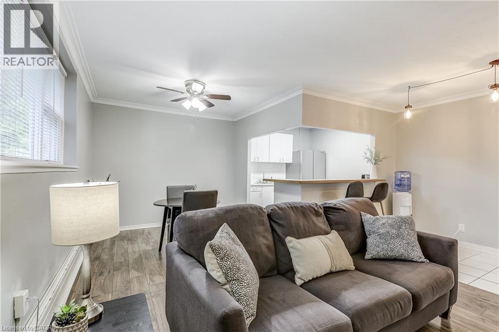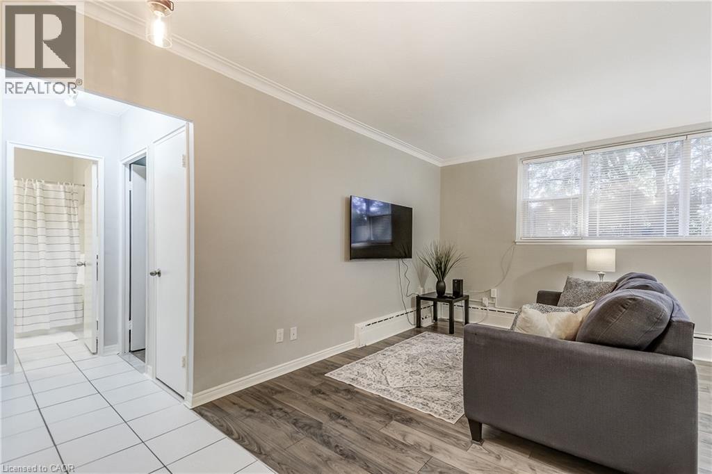 Tucked away in the heart of South Burlington, this quiet low-rise condo is truly a hidden gem. Situated on a quiet and tree lined residential street, it's an opportunity for affordable living in one of Burlington’s most desirable neighbourhoods. Whether you're a first-time buyer or looking to downsize, this spacious 1 bed, 1 bath unit offers bright, open living and just a few minutes from downtown Burlington. Newly renovated with brand new appliances, new large 55 TV (included), new flooring, this carpet free home is filled with natural light. This condo is move in ready! Walk to schools, shops, restaurants, Spencer Smith Park, and the Lakeshore – everything you need is within reach. Plus, you're just a short walk to the GO station and minutes from the highway for added convenience. Condo fees cover heat, water, exterior upkeep, building insurance, parking, and a locker—conveniently located just across the hall. Exclusive parking space - #56. Discover why this is one of Burlington’s best-kept secrets. (id:4555)