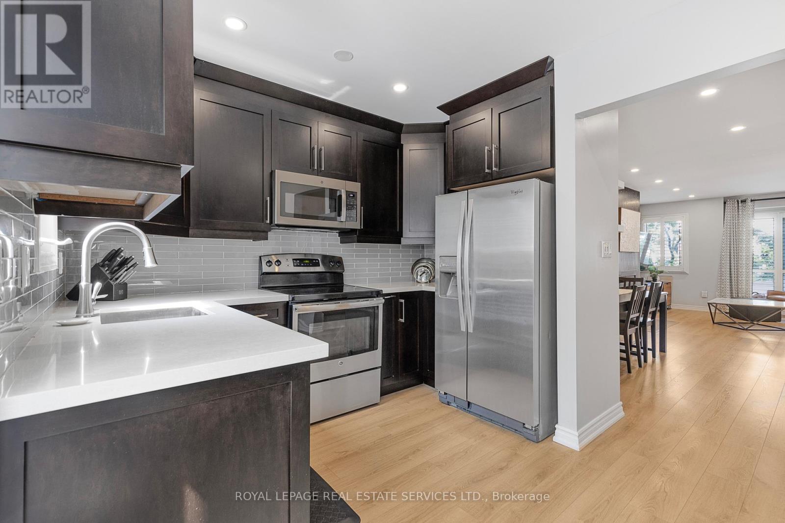 Welcome to The Brownstones, a highly desirable community in the heart of Burlington. This beautifully renovated 2-bedroom townhouse blends modern elegance with comfort and convenience. The spacious open-concept main level features wide plank wood flooring, a bright living and dining area, and a stylish kitchen with granite countertops, stainless steel appliances, and plenty of storage. Step outside to your private patio and beautiful green space, perfect for relaxing or entertaining.Upstairs, youll find two generously sized bedrooms with upgraded finishes and ample closet space. Every detail has been thoughtfully updated with high-end finishes throughout, making this home truly move-in ready.With low condo fees and a prime location, this home offers outstanding value. Enjoy being just a short walk to downtown Burlington, the lake, Spencer Smith Park, trendy restaurants, Mapleview Mall, shops, and transit. Whether youre looking for a vibrant urban lifestyle or peaceful green surroundings, this home delivers the best of both worlds.Dont miss the chance to own this stunning, modern townhome! (id:4555)