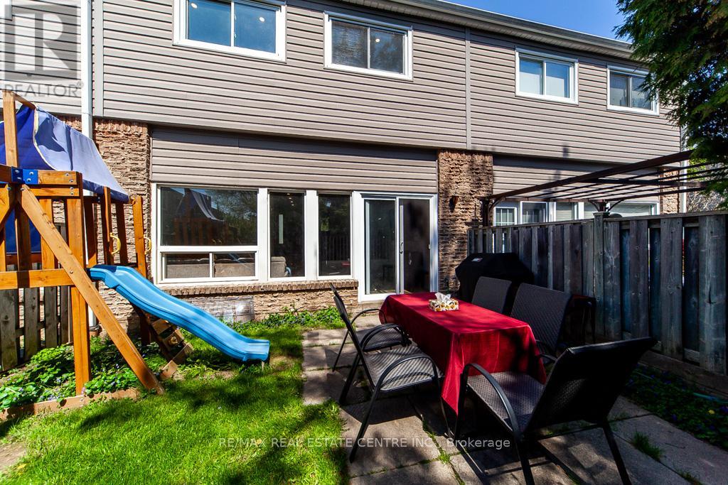 Welcome to this rare and uniquely located townhome, nestled within the tranquil and family-friendly Brant Gardens complex. Positioned right on the main street, this home offers the luxury of a private frontage view while maintaining the peace of a quiet neighborhood. Recently upgraded with brand-new laminate flooring and an abundance of pot lights, this home is bathed in natural light, creating an ambiance reminiscent of a bright, spacious studio. The heating and cooling system has been modernized, transitioning from a baseboard system to a high-efficiency furnace with central air conditioning, ensuring comfort throughout the year. The bright kitchen is a chefs delight, featuring a large window that floods the space with light, a Lazy Susan cupboard with pull-out shelves, and ample storage and countertop space. This culinary haven seamlessly connects to an open dining area and a generously sized living room, perfect for family gatherings and entertaining. Upstairs, you'll find three spacious bedrooms, each filled with natural light. The primary bedroom offers a beautifully updated semi-ensuite bathroom, styled like a Jack-and-Jill setup for convenience. With large windows and thoughtful design, these rooms are ideal for restful nights and refreshing mornings. This home also offers the convenience of a south-side separate entrance, underground parking, and a private fenced backyard, perfect for outdoor relaxation. Location is unbeatable, with a short stroll to box stores, popular restaurants, parks, and a public elementary school just steps away. Essential amenities like FreshCo, Tim Hortons, Shoppers Drug Mart, and more are at your doorstep. Commuting is a breeze with easy access to public transit and major highways, including QEW, 403, and 407.This is your opportunity to own a rare townhome that perfectly combines privacy, convenience, and modern living. Don't miss out schedule your private viewing today! (id:4555)