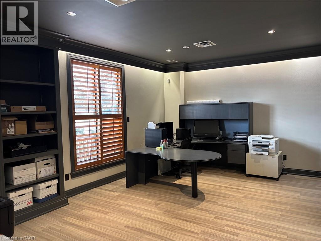 Located on the east side of King Road, this is the front 40% of the building. Comes with spectacular office space of approximately 2500 sq. ft. consisting of 2 Large private offices private each with private washrooms offices. The balance 1800 sq. ft. being fully air conditioned open office/showroom/studio/shop work space. The drive in loading door measures 10' H x 10' W. 4 washrooms 6+ parking. Tenants proportionate share of the Taxes Maintenance and Insurance is estimated to be $5.50 per sq. ft. per annum for 2025. Hydro service is a 100 amps @ 600 volts 3 phase. BONUS FREE OF CHARGE is a 500 sq. ft. mezzanine that can be used for storage or production, employee meeting/training, administration, tool storage and more. (id:4555)
