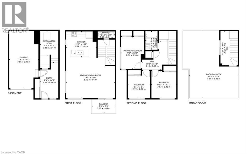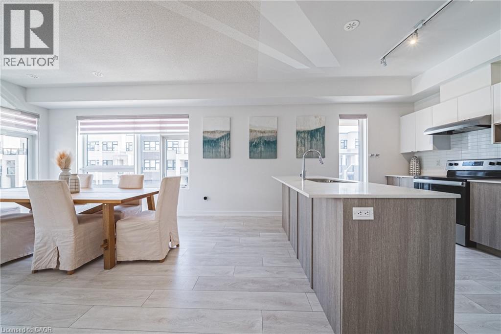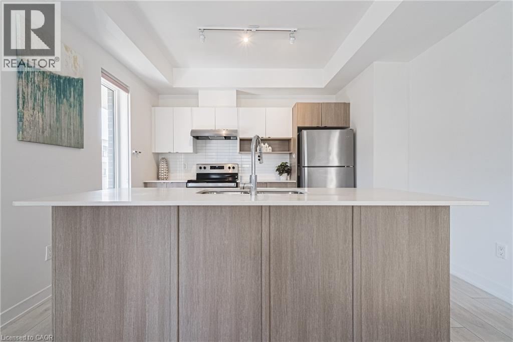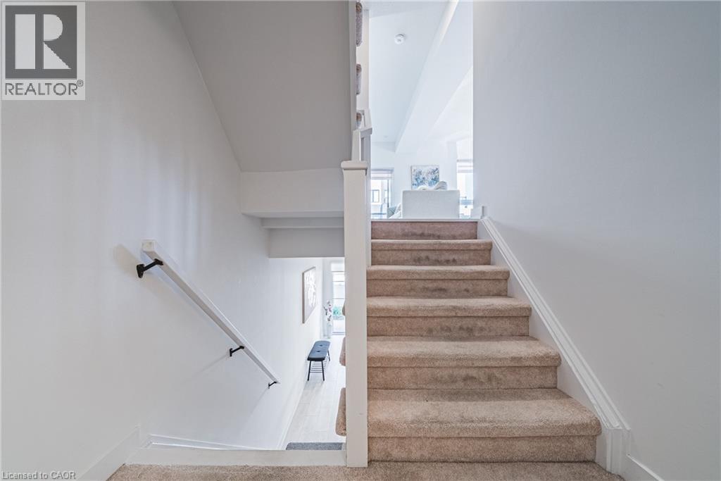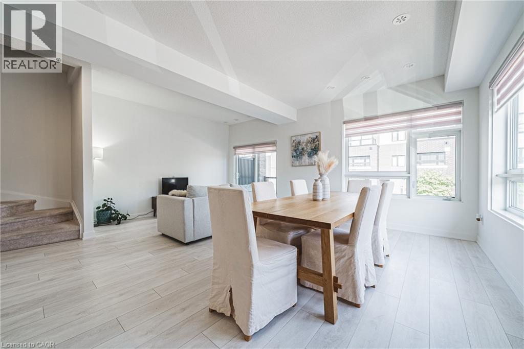 Location, location, location! This modern 3-bedroom, 1.5-bath, 3-storey corner end-unit townhome condo offers approximately 1,600 sq ft of stylish, low-maintenance living in one of Burlington’s most desirable and commuter-friendly locations. As a corner unit, it benefits from extra windows that fill the home with natural light. The second floor features a beautifully designed open-concept layout, with a spacious living and dining area that’s perfect for entertaining and easy to furnish to suit your style. The kitchen is both functional and elegant, with quartz countertops, a designer backsplash, stainless steel appliances, and a large island with breakfast bar seating—ideal for hosting or casual dining. A convenient 2-piece powder room is also located on this level. The third floor includes three bright bedrooms, a full 4-piece bathroom, and bedroom-level laundry for added convenience. The top level boasts an oversized private rooftop terrace with stunning views of Burlington's north and east skyline—perfect exposure for enjoying beautiful scenery both day and night. Step out to an additional balcony from the dining area for even more outdoor space. Located just steps from the Aldershot GO Station and minutes from major highways, this home is perfect for commuters. Enjoy close proximity to Lake Ontario, marinas, parks, trails, the Royal Botanical Gardens, Burlington Golf & Country Club, shopping, restaurants, and all the amenities you need. Bright, modern, and move-in ready—this home offers the perfect blend of comfort, convenience, and style. (id:4555)