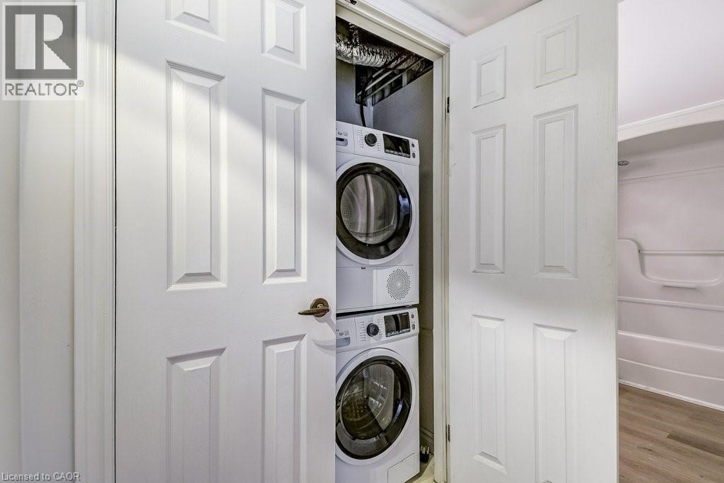 Terrific opportunity in Headon Forest, Burlington! This bright, newly renovated 1 bedroom + den condo features brand new vinyl flooring, a modern updated bathroom, new washer & dryer, and fresh paint throughout. The open-concept layout includes a spacious bedroom and a versatile den—perfect for a home office, guest space, or workout room. Enjoy the ease of a ground-level entrance, making everyday tasks like carrying groceries a breeze. Step outside to your southeast-facing raised balcony, an inviting spot for morning coffee or evening unwinds. With in-suite laundry, a locker, and one underground parking space, this condo has everything you need. Ideally located within walking distance to restaurants, shops, and Tansley Woods Community Centre, with quick access to the 403, 407, QEW, and both Burlington & Appleby GO Stations. A fantastic choice for commuters and anyone seeking a vibrant, connected lifestyle! (id:4555)