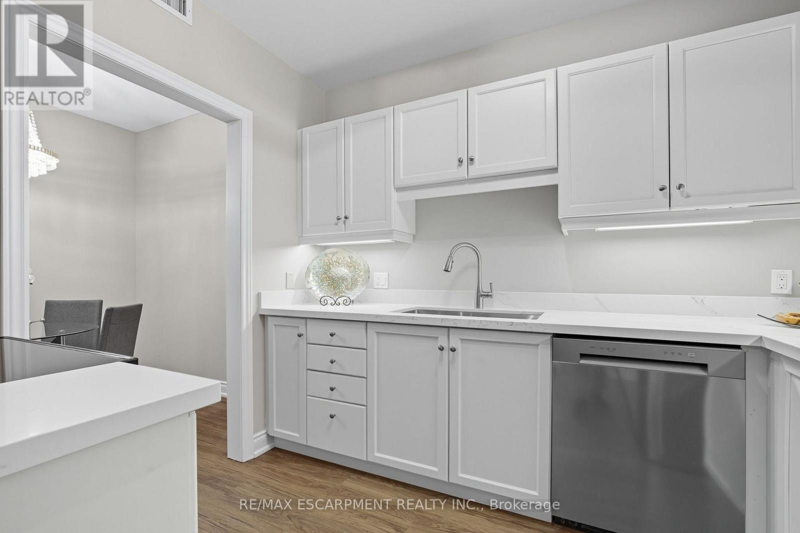 Welcome to this beautifully newly renovated large one-bedroom, two-bathroom condo with serene garden views. This move in ready home provides a serene retreat with modern touches throughout. Parking spot #16 and locker #104. Visitors parking has access to EV chargers. Step inside to find 9 foot ceilings, freshly painted interiors and stylish, updated vinyl flooring that flows seamlessly through the living spaces. The spacious living area is filled with natural light and is overlooking a peaceful field adorned with seasonal flowers, and trees. This balcony with views offer privacy and tranquility. The kitchen has been thoughtfully updated with designer finishes, offering ample cabinetry, quartz countertops, under mount sink and LG fridge with ice maker and filtered water, LG glass top range, built in microwave and fan, and LG dishwasher. These appliances have just been installed and never been used. Condo Fee is $639 per month includes FIBE cable and internet, parking, water, heat and A/C via a heat pump you own, building maintenance, and dial up security entrance. Adjacent to the entry door is washer/dryer closet. The generously sized bedroom includes 2 closets, a walk-in and standard. There is room for a desk. The Spa like en-suite bathroom newly installed carara porcelain tile, shower and tub combination. A second 2-piece bathroom adds flexibility for guests or work-from-home living. With its tranquil setting, modern updates, and thoughtful layout, this condo is an ideal choice for those seeking a low-maintenance lifestyle with all the comforts of home. The second floor is most sought after. You can move in immediately and live the good life. (id:4555)