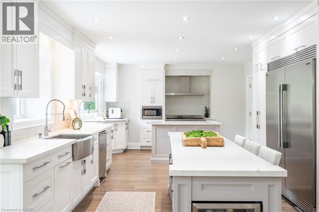 Welcome to your dream country estate, perfectly set on 3.5 picturesque acres in the highly sought-after community of Kilbride. From the moment you step through the front door, this impeccably renovated home will captivate you with its seamless blend of modern elegance and timeless country farmhouse charm. This exceptional property features 4 bedrooms, plus an upper-level primary suite complete with a cozy fireplace, a luxurious ensuite, and a conveniently located laundry room nearby. The thoughtfully designed main floor offers an ideal layout for a growing family, centered around a chef-inspired kitchen with two oversized islands, a spacious dining area enveloped by windows, and an open-concept great room perfect for gathering. Need a bit of quiet? Retreat to the separate living room/office, where you can relax by the inviting gas fireplace. Additional main floor highlights include a large mudroom with exterior access and a vaulted secondary primary retreat offering its own serene ensuite and private walkout to an outdoor living space. The surprises continue in the fully finished lower level, where you'll discover a wet bar, recreation area, and a convenient walk-up to your sprawling backyard oasis. Why head to a resort when this property has it all? Enjoy an inviting inground pool, multiple outdoor seating areas, a volleyball court, and a cozy fire pit—all designed for ultimate outdoor living. As a bonus, this home features a legal accessory dwelling complete with a kitchenette, full bath, and fireplace, providing the perfect solution for multi-generational living. Located in one of North Burlington’s most coveted villages, this magnificent estate offers a rare opportunity for discerning buyers seeking the perfect blend of luxury, functionality, and family-friendly charm. Let’s get you home! Luxury Certified (id:4555)