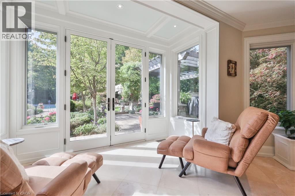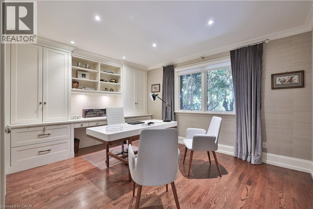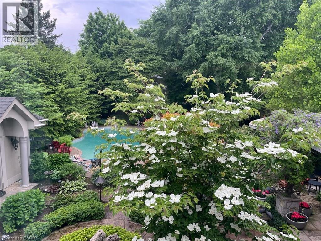 Set on a breathtaking 70’x209’ private lot in Burlington’s prestigious Roseland community, this stately stone and stucco home offers over 5,850 sq ft of finely curated living space across three levels. Showcasing timeless elegance and old-world craftsmanship, this home impresses with custom millwork, plaster crown mouldings, custom built-ins and rich hardwood, limestone and porcelain floors. Step into a grand foyer that leads to elegant formal dining and living rooms with a gas fireplace then discover the heart of the home: a chef’s dream kitchen featuring a sprawling island, top-of-the-line appliances, walk-in pantry, sunlit breakfast area with a walk out to the stunning gardens. Adjoining the kitchen is the great room with a two-storey ceiling, gas fireplace and a wall of windows framing your own backyard paradise. The main level also features a home office, stylish powder room and custom mudroom with access to an oversized double garage with epoxy floors. Upstairs, unwind in your primary retreat with vaulted ceilings, sunlit walk-in closet and luxurious 4-piece spa-inspired ensuite with steam shower. A loft-style library with built-in bookcases overlooks the great room and three more spacious bedrooms include a private guest suite, a shared 4-piece bath and convenient upper-level laundry. The lower level features a home theatre room, hobby room, second laundry, fitness studio with beverage centre and 3-piece bath and storage. Outside, the resort-style backyard is an entertainer’s dream featuring a 20’x40’ saltwater gunite pool (‘19), stucco pool house (‘15) with kitchenette, change room and garden storage, a pergola-covered stone patio (’19) with gas fireplace, dramatic landscape lighting and tranquil stone water feature, surrounded by stunning, lush, mature gardens. Just steps to top schools, parks, downtown and the lake, this distinguished home with its meticulous attention to detail exudes warmth and comfort and will appeal to the most discerning buyer. (id:4555)