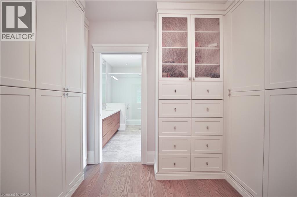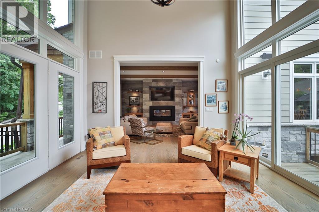 Welcome to one of the most unique properties in the sought-after Aldershot neighbourhood! This custom-built home offers 4,800 sq ft of finished living space on a rare 0.5-acre ravine-front lot, offering total privacy and a serene, natural setting. Designed and built by the owner (a custom home builder), the home was thoughtfully positioned to capture ravine views from nearly every room, with the 3-car garage located at the back. A grand two storey entry features a barn board accent wall, two-sided gas fireplace, elegant music room, and a stunning open-riser staircase. Soaring 9-ft ceilings rom basement to 2nd floor add to the spacious feel. Enjoy 4+1 bedrooms and 4+1 baths, with vaulted ceilings in 3 bedrooms. A sun-drenched 4-season sunroom with pine vaulted ceiling, gas fireplace, and floor-to-ceiling glass offers panoramic views of the ravine and saltwater pool. Quartz countertops and custom cabinetry are found throughout, along with site-finished hardwood, built-in speakers, and large windows bringing in natural light and lake glimpses. The expansive second-floor laundry room includes built-ins and a dedicated sewing desk. The finished basement with separate side entrance provides in-law suite. (id:4555)