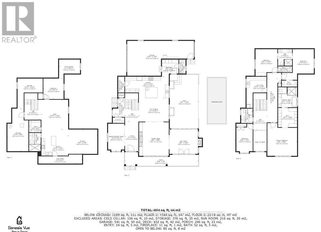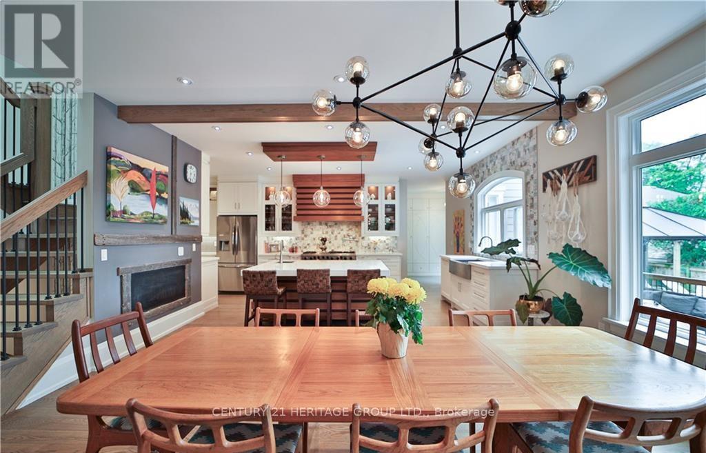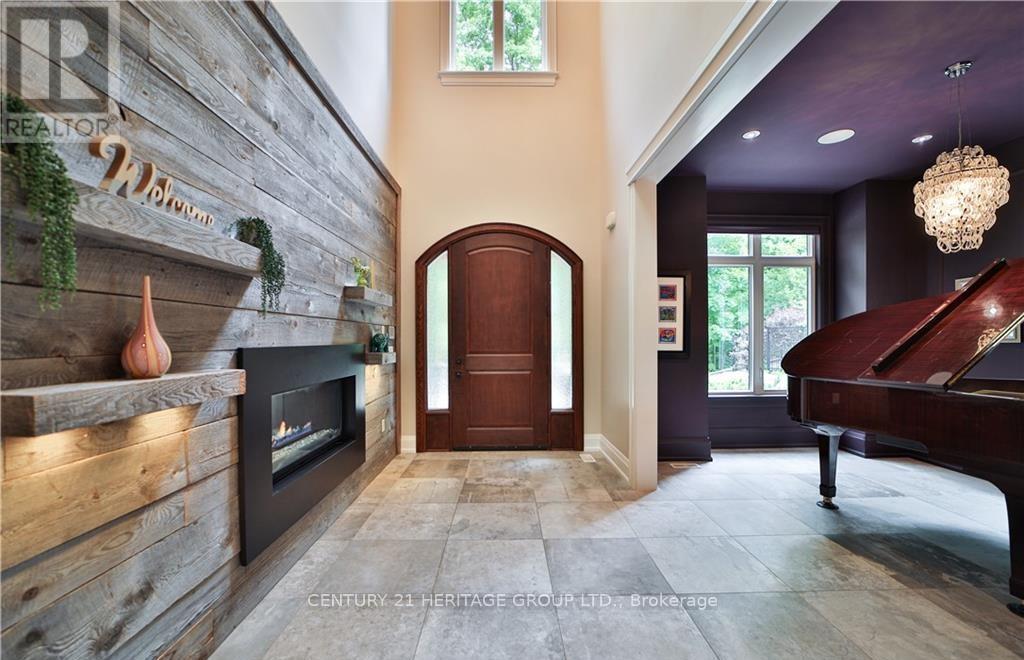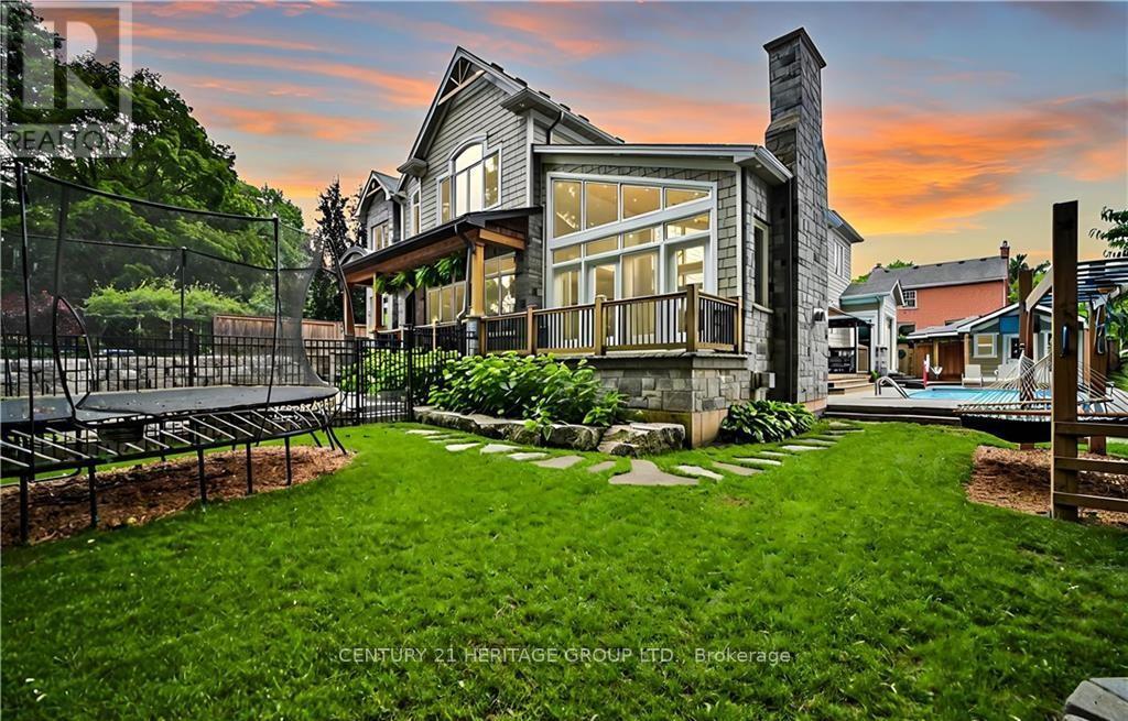 Welcome to one of the most unique properties in the sought-after Aldershot neighbourhood! This custom-built home offers 4,800 sq ft of finished living space on a rare 0.5-acre ravine-front lot, offering total privacy and a serene, natural setting. Designed and built by the owner (a custom home builder), the home was thoughtfully positioned to capture ravine views from nearly every room, with the 3-car garage located at the back. A grand two storey entry features a barn board accent wall, two-sided gas fireplace, elegant music room, and a stunning open-riser staircase. Soaring 9-ft ceilings rom basement to 2nd floor add to the spacious feel. Enjoy 4+1 bedrooms and 4+1 baths, with vaulted ceilings in 3 bedrooms. A sun-drenched 4-season sunroom with pine vaulted ceiling, gas fireplace, and floor-to-ceiling glass offers panoramic views of the ravine and saltwater pool. Quartz countertops and custom cabinetry are found throughout, along with site-finished hardwood, built-in speakers, and large windows bringing in natural light and lake glimpses. The expansive second-floor laundry room includes built-ins and a dedicated sewing desk. The finished basement with separate side entrance provides in-law suite. (id:4555)
