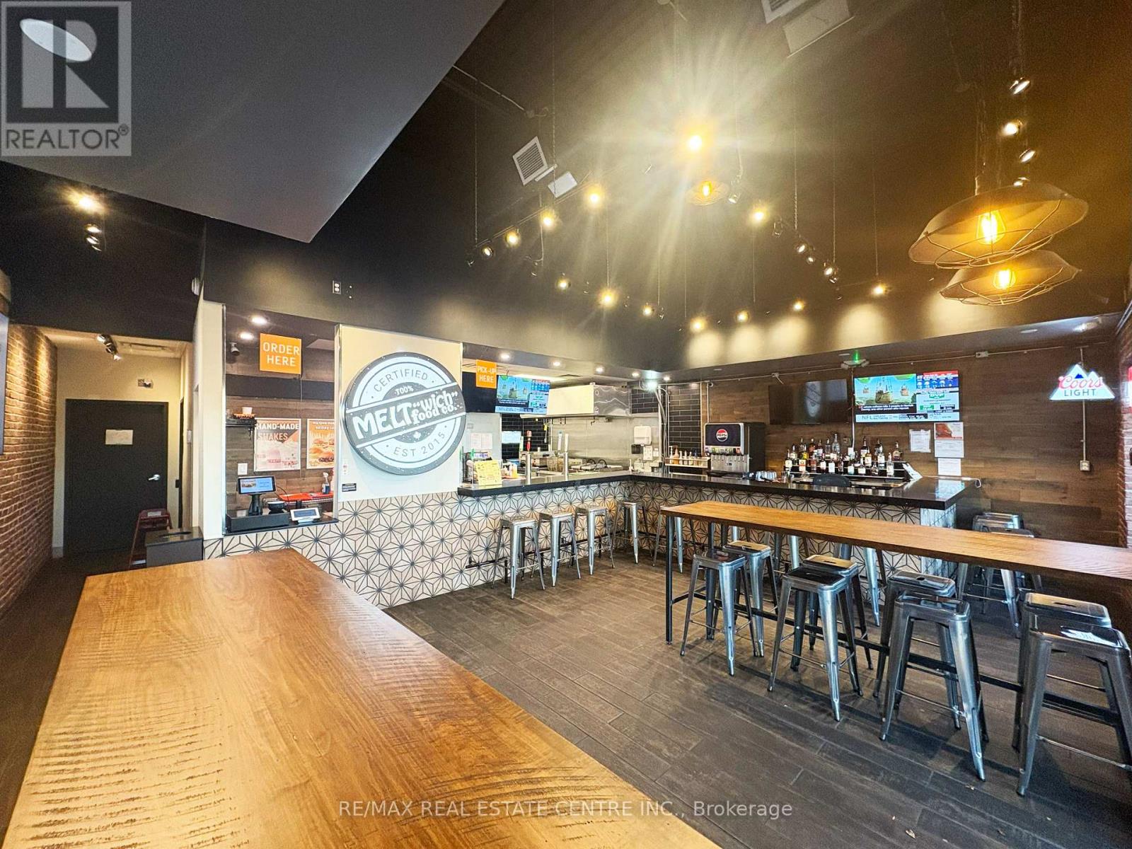 Turnkey opportunity to own an established Meltwich Food Co. franchise or step in with your own concept in a high-traffic retail hub just off the QEW, offering excellent visibility, strong footfall, and a loyal customer base. This 1,168 sq. ft. approx. Turnkey restaurant space is fully built-out and ready for immediate operation. Meltwich is known for its gourmet grilled-cheese melts, burgers, poutines, and milkshakes, with full franchise support and training. Alternatively, the versatile layout allows for rebranding or conversion into a new restaurant or retail business. The location is part of a bustling retail complex anchored by AAA tenants including McDonald's, Benjamin Moore, Medical Centre and Pharmacy, Burlington Public Library, CIBC Bank, Dental Care, Subway, Service Canada, and many more, ensuring a steady stream of visitors. The property features ample parking, prominent corner signage, and a bright, inviting interior suitable for dine-in, take-out, and delivery operations. A key highlight is the LLBO license, allowing the sale of alcoholic beverages to expand revenue potential. Leasehold improvements and premium chattels are included for a seamless transition. The lease is managed at $3,406 per month plus TMI and taxes, with a total monthly cost of $5,039.60, making it an attractive arrangement for a new operator. Located in a thriving, growing market with a dense residential and commuter base, this property permits a wide range of uses including restaurant, retail, personal service, office, medical clinic, convenience store, and fitness/recreation facilities, making it ideal for entrepreneurs to operate Meltwich or launch a new concept. Don't miss this rare opportunity to own a turnkey franchise-or create your own business-at one of Burlington's most desirable retail destinations. (id:4555)
