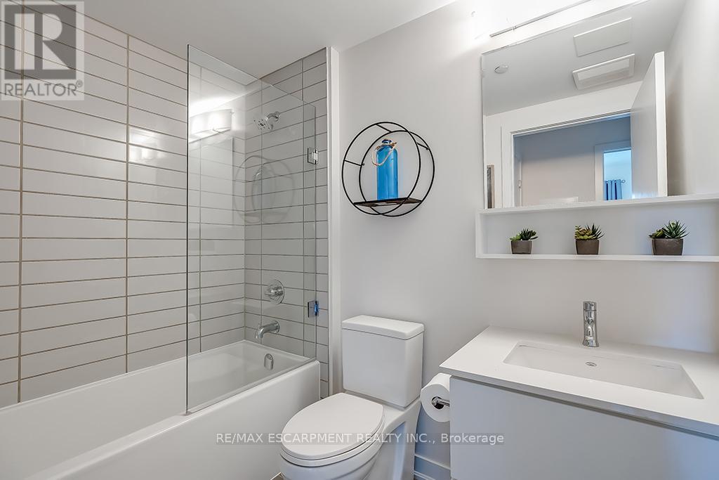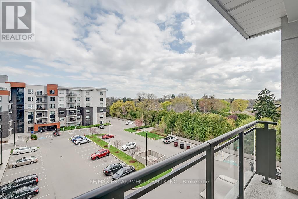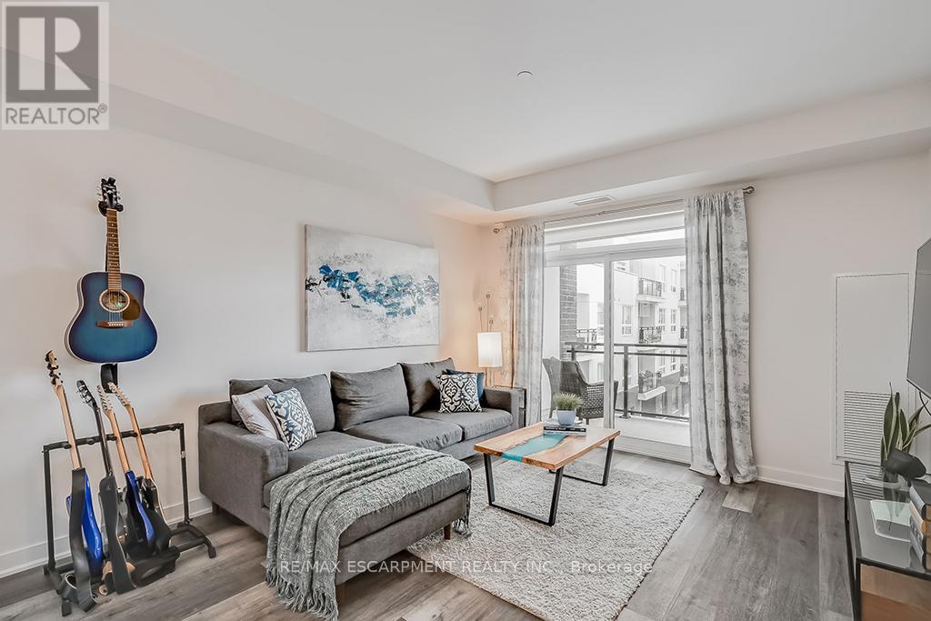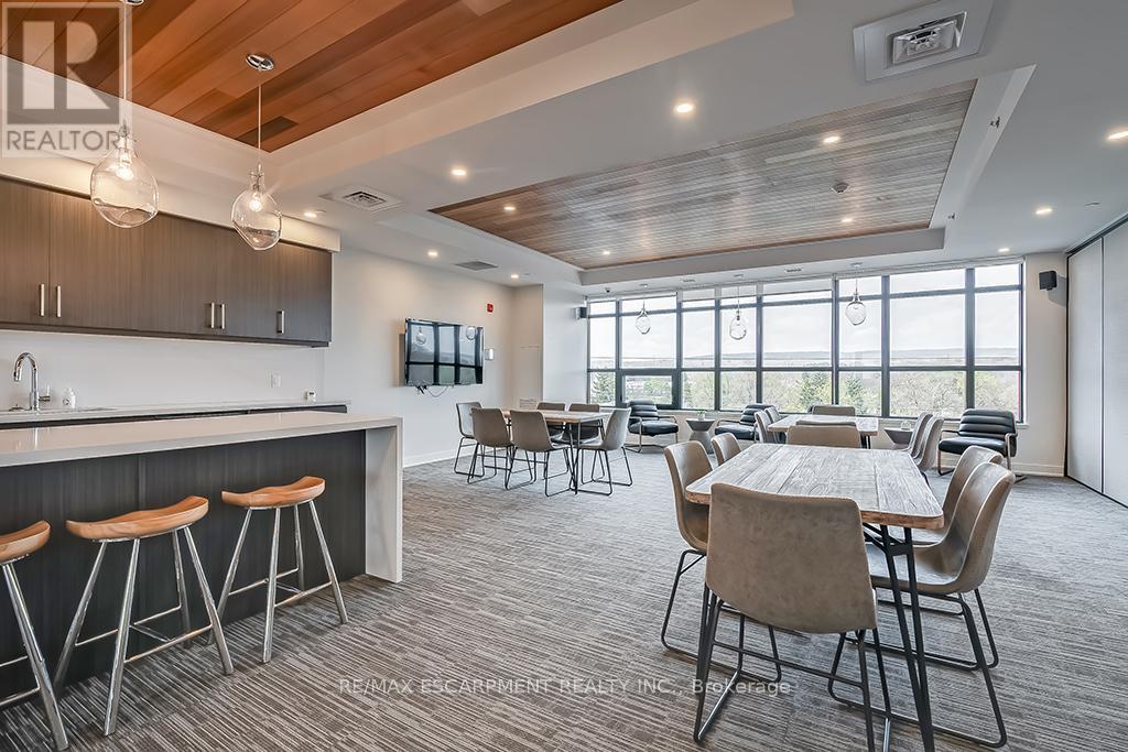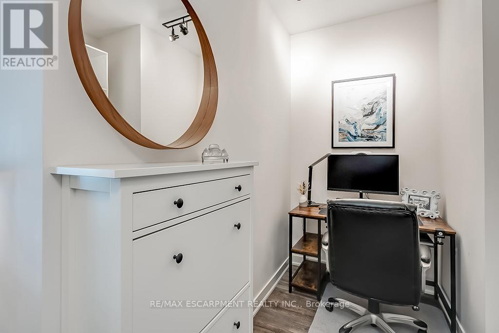 Stunning one bedroom + den suite at Affinity in Aldershot! Custom kitchen with quartz, stainless steel appliances, breakfast bar and glass subway tile backsplash. Open concept living with 9' ceilings, in-suite laundry, 4-piece bathroom and spacious private balcony. Steps to the GO station, RBG, marina, library, schools and Burlington Golf & Country Club. One underground parking space and one storage locker on unit level. Building amenities include loads of visitor parking, electric car charging station, rooftop terrace with BBQs, gym, yoga room and party room! (id:4555)