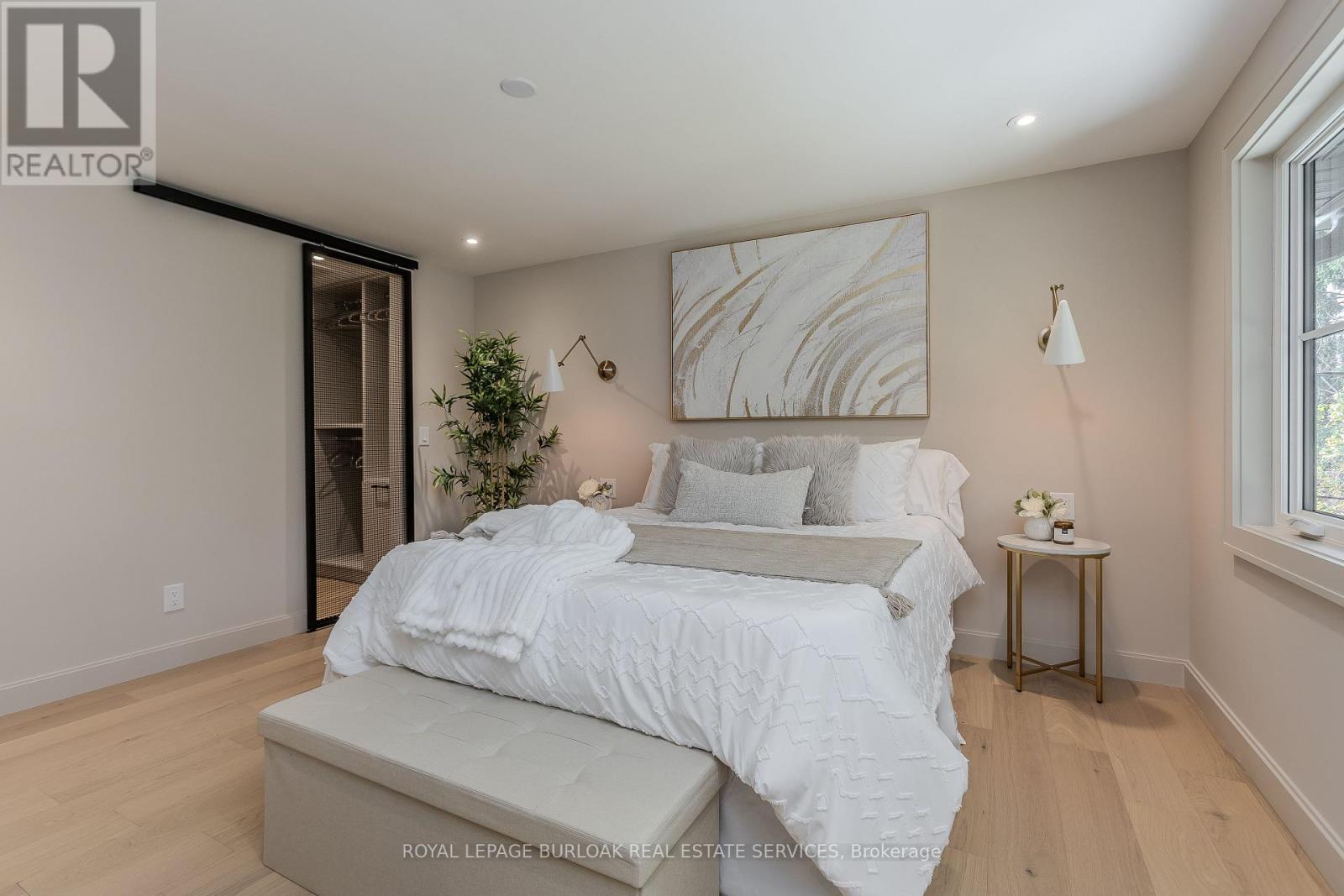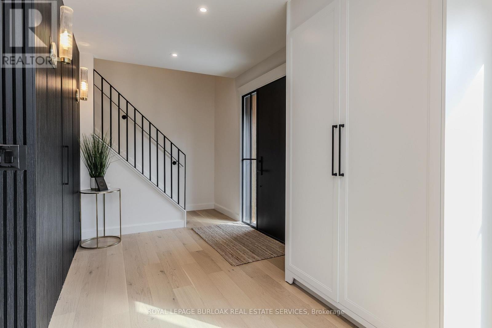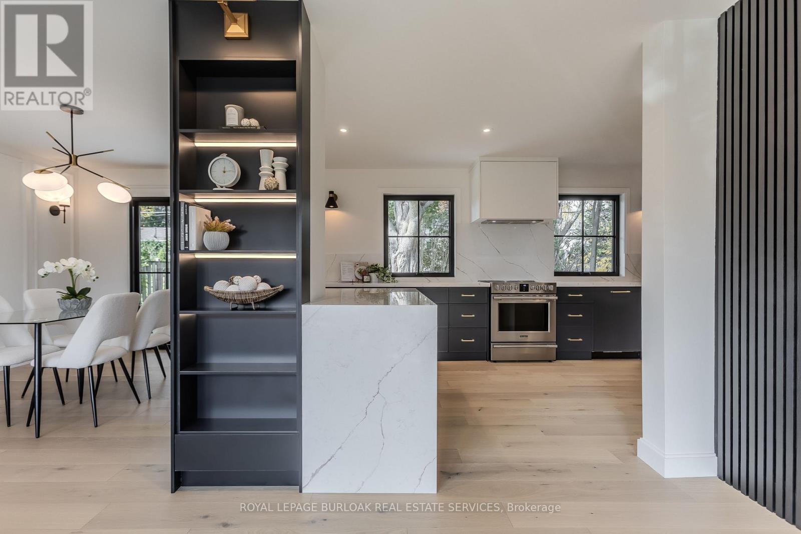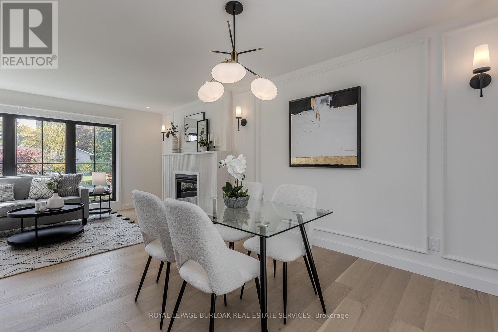 Modern luxury and family-friendly living in this fully renovated home in Dynes. Nestled on a mature, pool-sized lot with mature trees, this home is mins from schools, parks, dining, transit, hwys & lakefront. Spanning 2,177SF of total finished living space, this open-concept layout features exquisite details at every turn. From the stunning curb appeal with refinished exterior, fiberglass entry door & cedar-roofed covered porch, to the engineered white oak floors and abundant LED pot lights, this home has it all. The custom kitchen is a dream with slim-shaker cabinets, quartz counters & matching slab backsplash, gold fixtures, pantry, appliance garage &spacious island with breakfast bar. Seamless flow from kitchen to dining area with black frame sliders opening to a private yard with stone patio-ideal for entertaining. The inviting living room features a striking gas fireplace with modern surround & mantle. Plus an oversized window for natural light. Upstairs, retreat to a luxurious primary suite with WI closet & spa-like ensuite with freestanding tub& Riobel tub filler, large glass shower & double vanity. 2 additional bedrooms and a full bath complete this level. The finished lower level incl a cozy family room, office, massive laundry room with custom storage cabinetry & quartz counters. Extras: EV charger rough-in, gas BBQ connection, new Ridley windows, updated HVAC, sump pump, new electrical & much more! See supplement. All work done with permits. Move in ready! (id:4555)