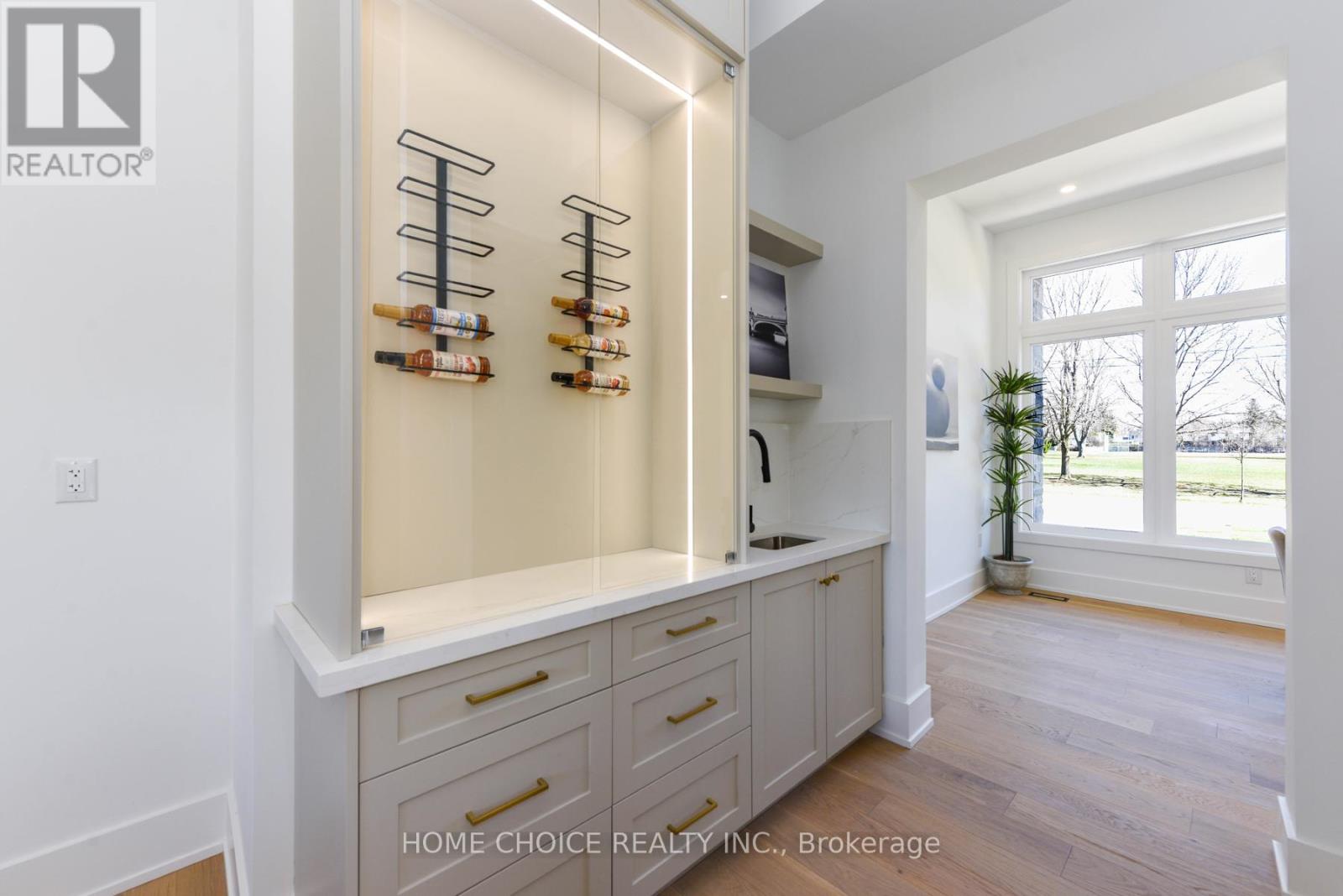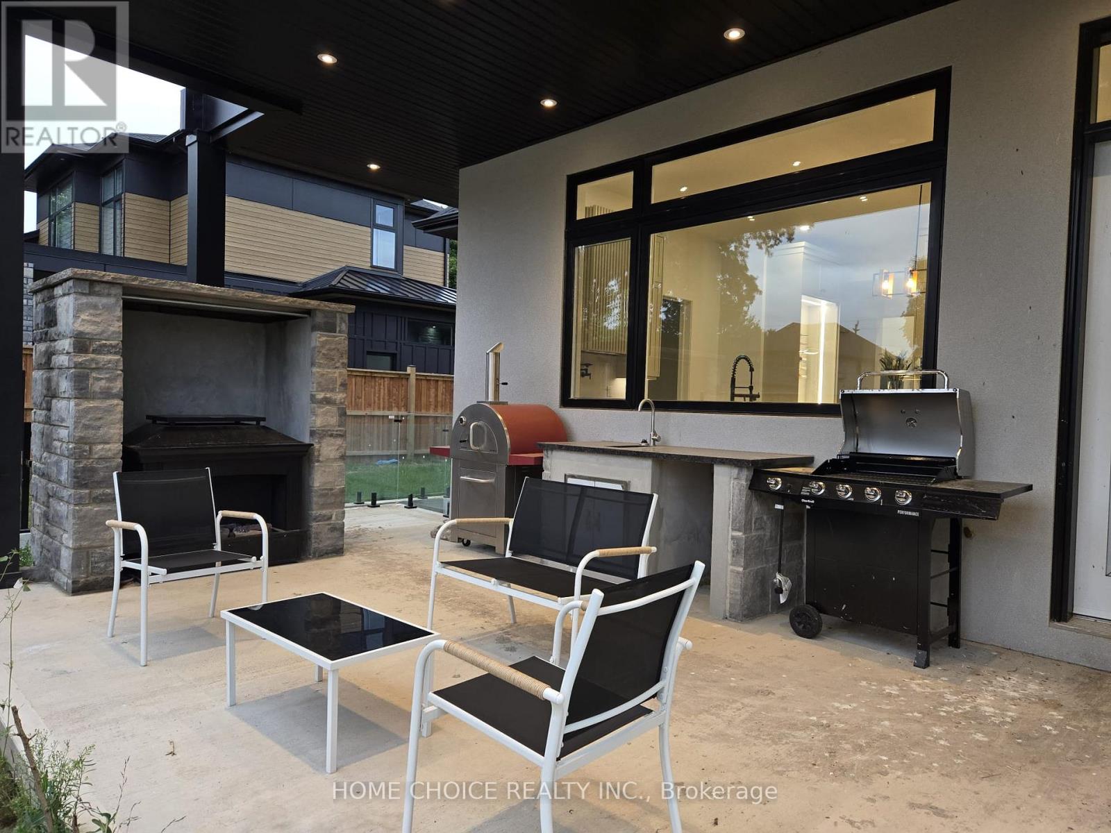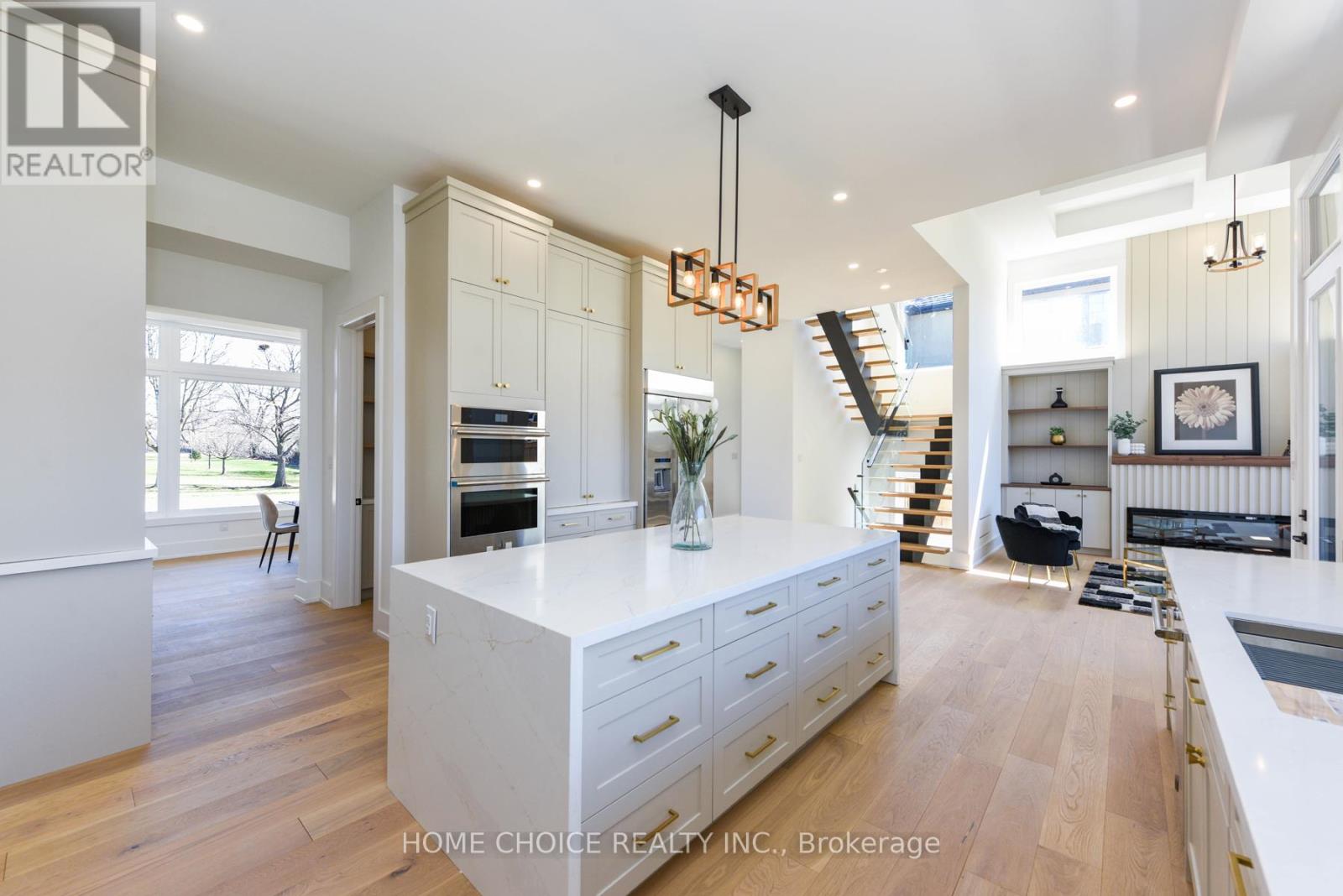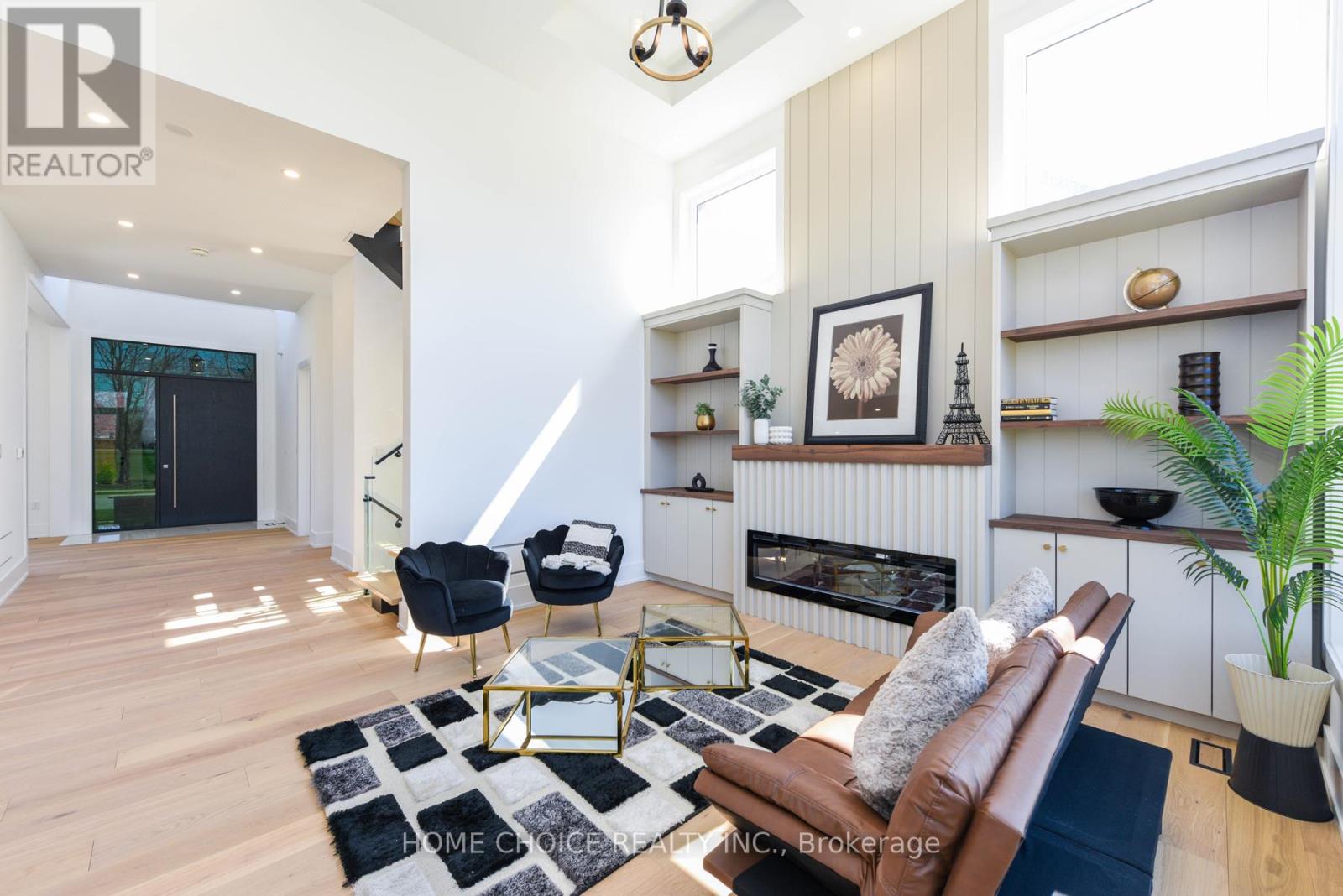 Client RemarksWelcome to your future custom-built dream home with 5000 SF of living space, walking distance to lake, top rated schools & across Breckon Park.Exterior (Interlocked driveway alongside lights, Stone address Ledge, Landscape, Automatic Sprinklers , Black windows)Main Floor (11' ceiling, HW floor, Office/Study room, dining room, Solid core Berkley doors) Chefs Kitchen (built in woodwork, Fluted range hood & Island, Lights under cabinets, Jenn air appliances, Built in microwave/oven, Glass wine hutch, Appliance garage with sliding doors, Lazy Susan, Garbage bins, Painted shaker doors, Dove tail drawers, Servery, Quartz, Multi-functional sink, Pot filler, walk in pantry) Family Room (14 ceiling, Built in cabinetry, Huge windows, 72 fireplace, Fluted wall panel, storage)-Powder room (Black toilet, Ceiling height tiles, H/E vanity & faucet) Outdoor Living Space (Huge covered patio, Stoned Gas fire place, Pizza oven, BBQ, Fridge space, Faucet & sink, Glass railings, Stone window wells)Stairs (Floating modern stairs with black beams, LED lights under each step, Glass railing)Basement (Walkout separate entrance, 10 ceiling, Bedroom, Full washroom, Living room with fireplace, Bar, Entertainment area, floor to ceiling glass wall Gym, Sauna, Home Theater, Storage room)Top floor (10 ceiling, chandeliers, 48 skylight, Linen closet) Master BR1 (Double door, Accent wall, Walk in closet) Master WR1 (Double vanity, H/E sink & faucet, Free standing faucet & tub, Niches with LED lights, curb less shower with glass door, wall mounted blk toilet) - BR 2 (Facing park, Custom closet, attached WR) WR2 (H/E vanity & faucet, wall mounted Blk Toilet, Curb less shower with lights in niche) BR3 & BR4 (facing park, huge windows, custom closets), Jack & Jill WR (Blk Tlt, H/E sinks/faucets with double vanity, Glass shower with lights in niche)Smart home features smart switches, EV car charger, exterior cameras. (id:4555)