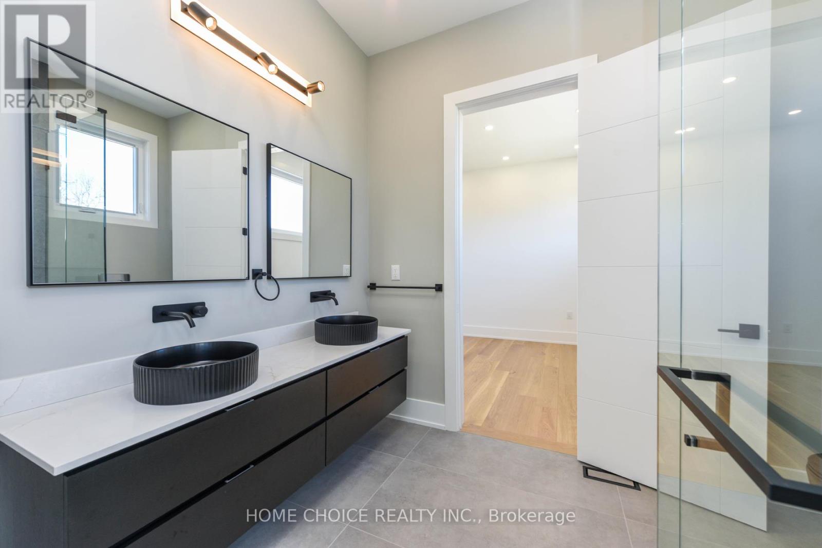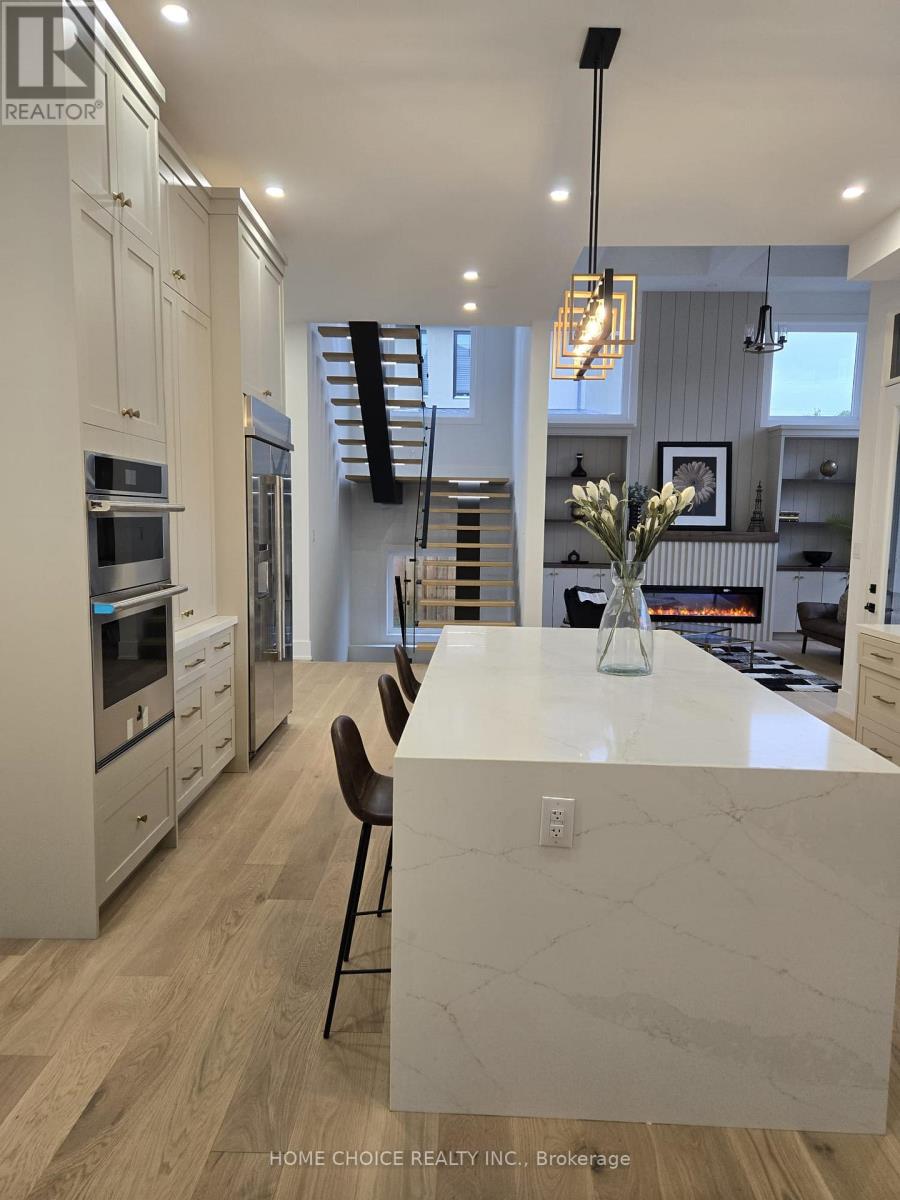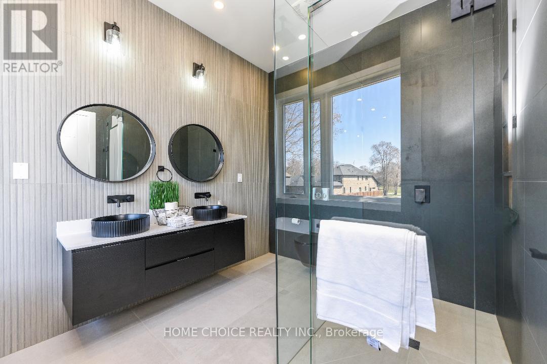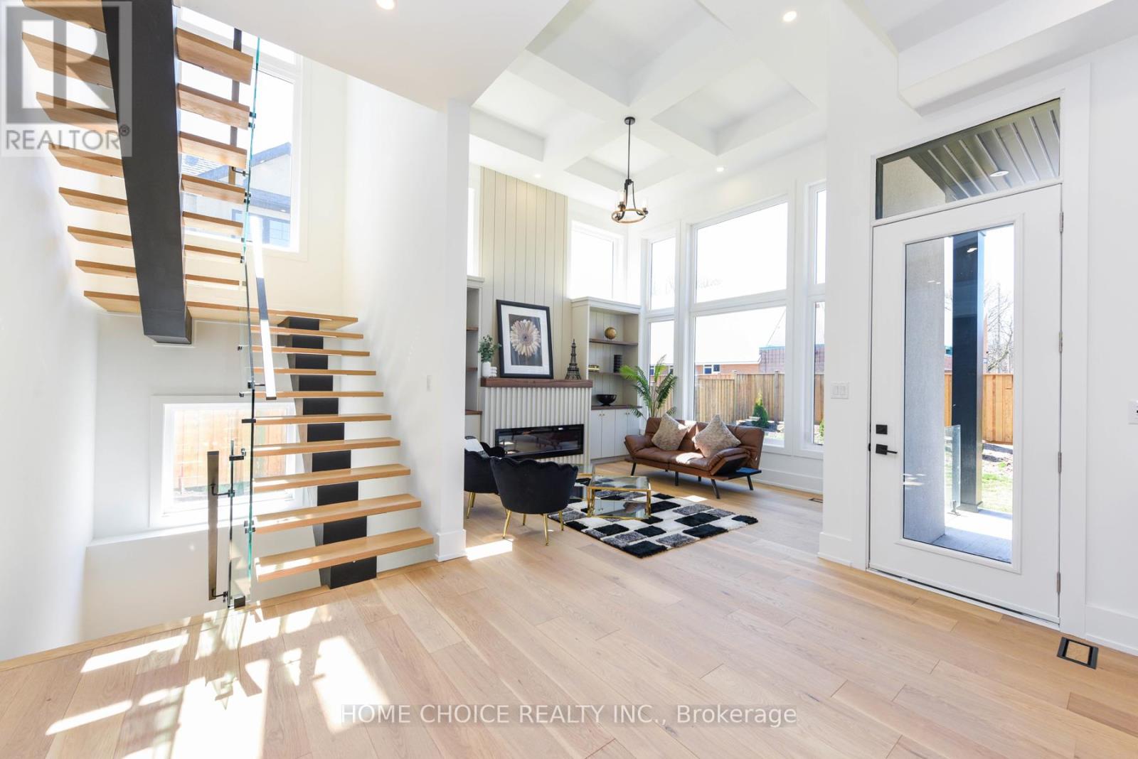 Client RemarksWelcome to your future custom-built dream home with 5000 SF of living space, walking distance to lake, top rated schools & across Breckon Park.Exterior (Interlocked driveway alongside lights, Stone address Ledge, Landscape, Automatic Sprinklers , Black windows)Main Floor (11' ceiling, HW floor, Office/Study room, dining room, Solid core Berkley doors) Chefs Kitchen (built in woodwork, Fluted range hood & Island, Lights under cabinets, Jenn air appliances, Built in microwave/oven, Glass wine hutch, Appliance garage with sliding doors, Lazy Susan, Garbage bins, Painted shaker doors, Dove tail drawers, Servery, Quartz, Multi-functional sink, Pot filler, walk in pantry) Family Room (14 ceiling, Built in cabinetry, Huge windows, 72 fireplace, Fluted wall panel, storage)-Powder room (Black toilet, Ceiling height tiles, H/E vanity & faucet) Outdoor Living Space (Huge covered patio, Stoned Gas fire place, Pizza oven, BBQ, Fridge space, Faucet & sink, Glass railings, Stone window wells)Stairs (Floating modern stairs with black beams, LED lights under each step, Glass railing)Basement (Walkout separate entrance, 10 ceiling, Bedroom, Full washroom, Living room with fireplace, Bar, Entertainment area, floor to ceiling glass wall Gym, Sauna, Home Theater, Storage room)Top floor (10 ceiling, chandeliers, 48 skylight, Linen closet) Master BR1 (Double door, Accent wall, Walk in closet) Master WR1 (Double vanity, H/E sink & faucet, Free standing faucet & tub, Niches with LED lights, curb less shower with glass door, wall mounted blk toilet) - BR 2 (Facing park, Custom closet, attached WR) WR2 (H/E vanity & faucet, wall mounted Blk Toilet, Curb less shower with lights in niche) BR3 & BR4 (facing park, huge windows, custom closets), Jack & Jill WR (Blk Tlt, H/E sinks/faucets with double vanity, Glass shower with lights in niche)Smart home features smart switches, EV car charger, exterior cameras. (id:4555)
