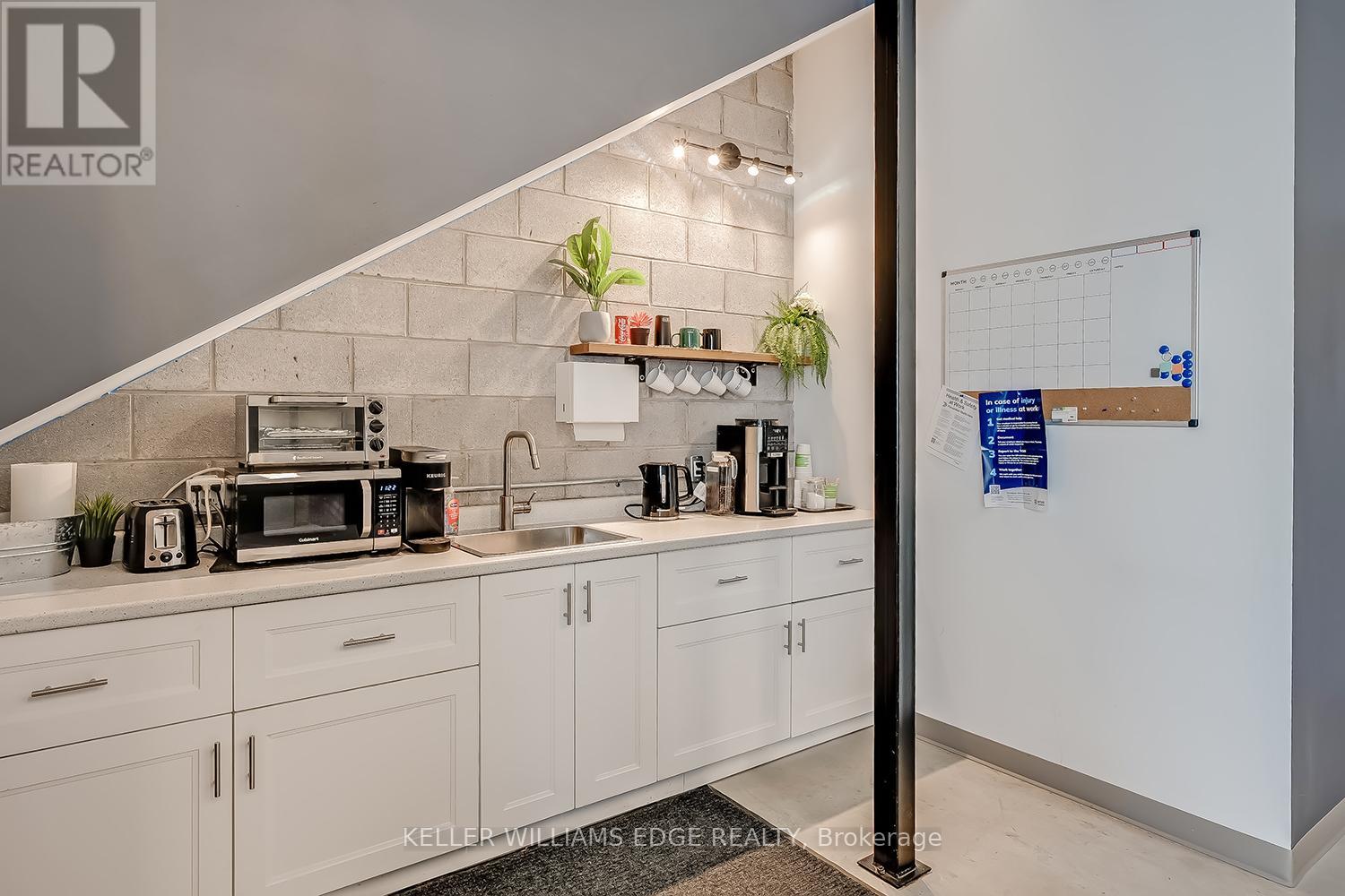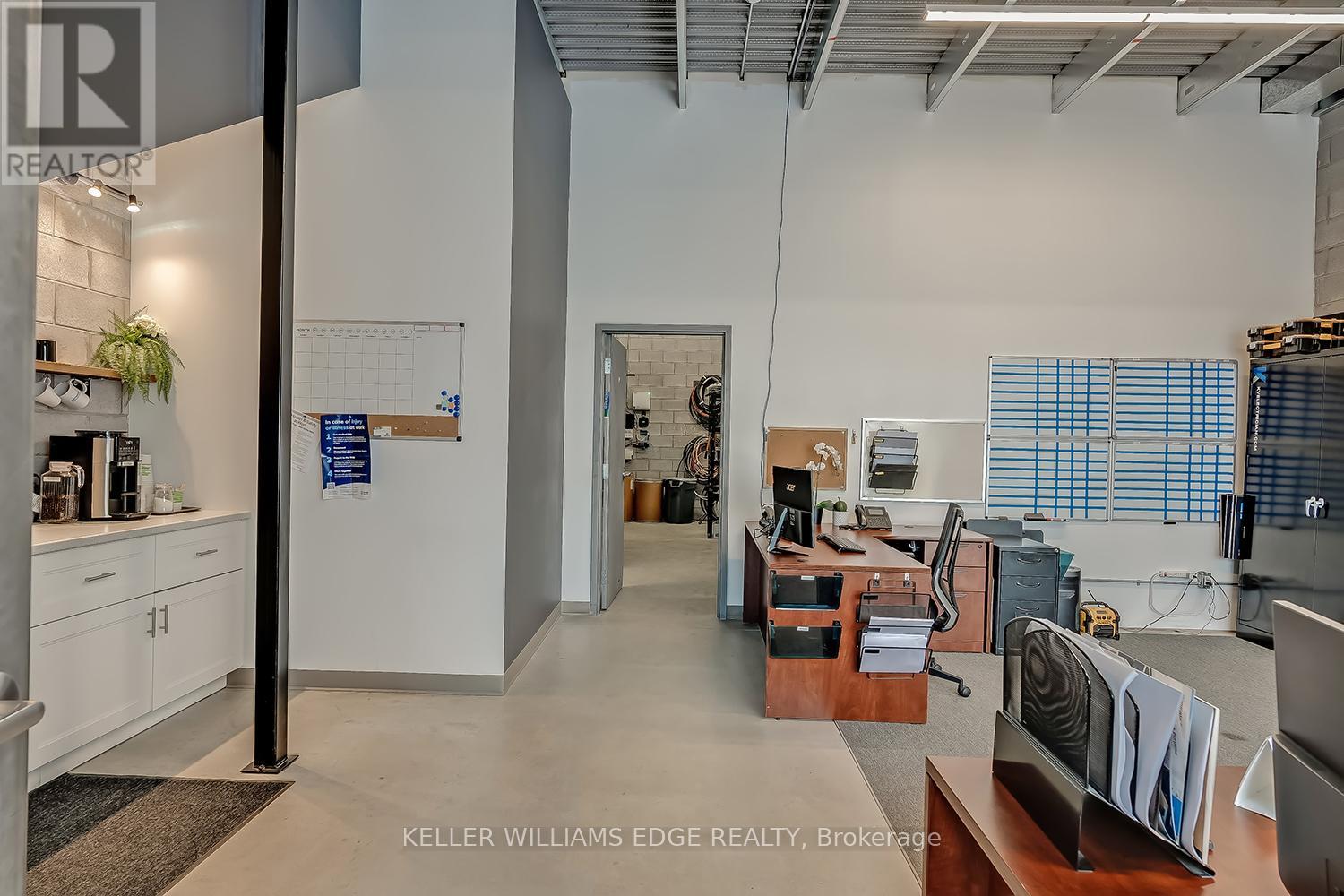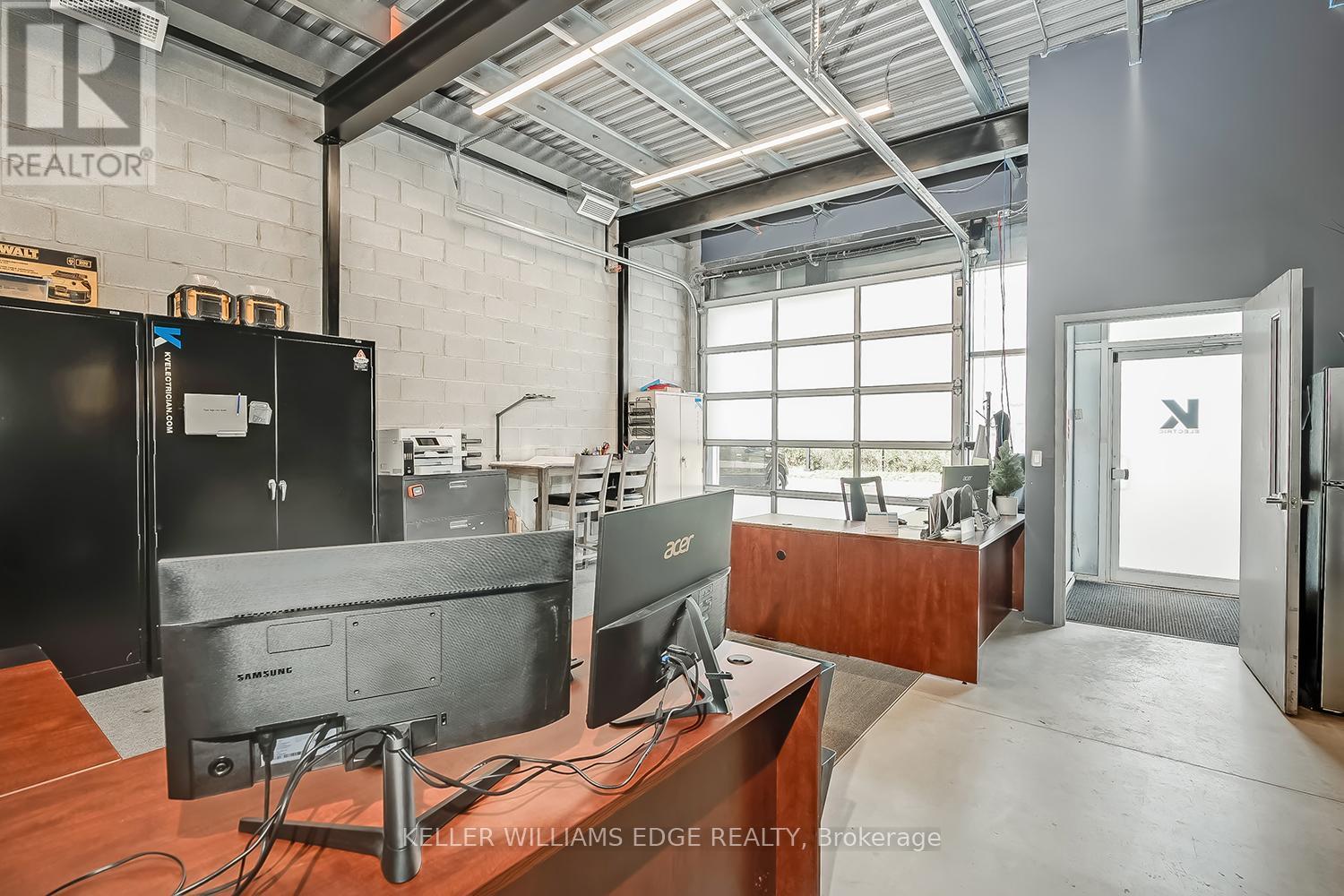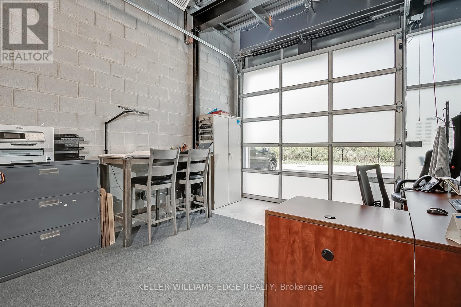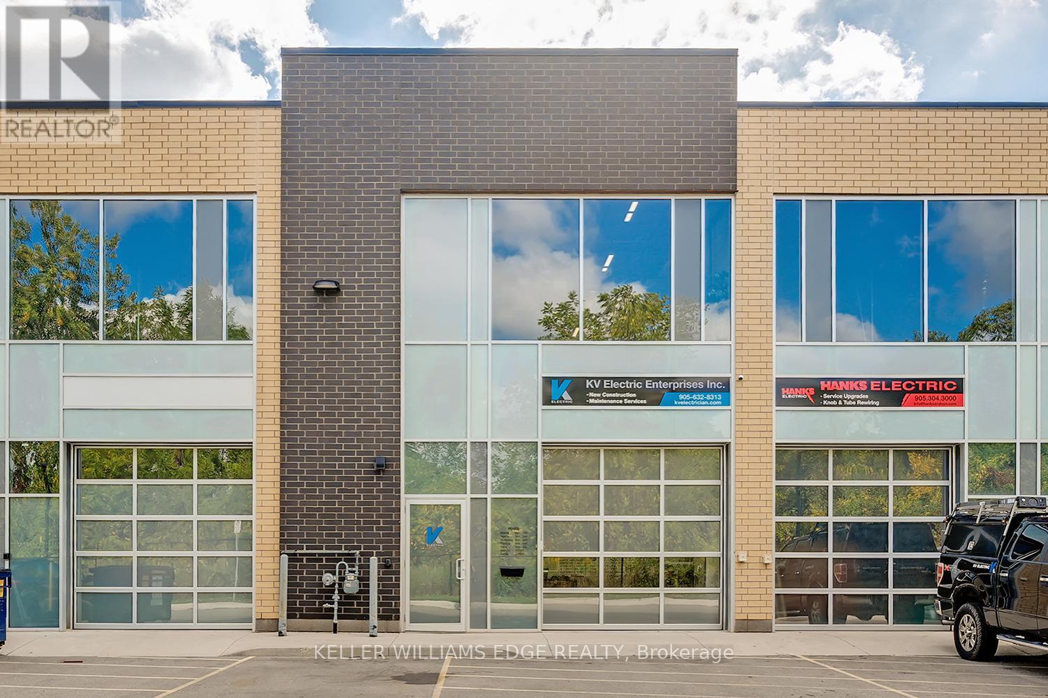 PRIME INDUSTRIAL-COMMERCIAL OPPORTUNITY - This rare and versatile unit offers approximately 2,172 sq. ft. of functional space, including a 1,000 sq. ft. upper mezzanine. Bright and inviting with expansive windows, a glass front entry, and a 10' x 10' drive-in shipping door, this property is designed to meet a wide range of business needs. The main floor features polished concrete floors, a functional kitchenette, spacious washroom, and dedicated storage. The open-concept mezzanine provides flexible options for additional storage, offices, meetings or collaborative work and even includes a wet bar. Additional highlights include 3-phase 60amp/600v electrical service, sprinkler system, and ample on-site parking for staff and visitors. With excellent visibility from King Road and convenient access to Highways 403, 407, QEW, and GO Transit, the location is as strategic as it is practical. Seller is willing to close the adjoining wall or leave it open should you wish to expand by leasing the neighbouring unit. (id:4555)