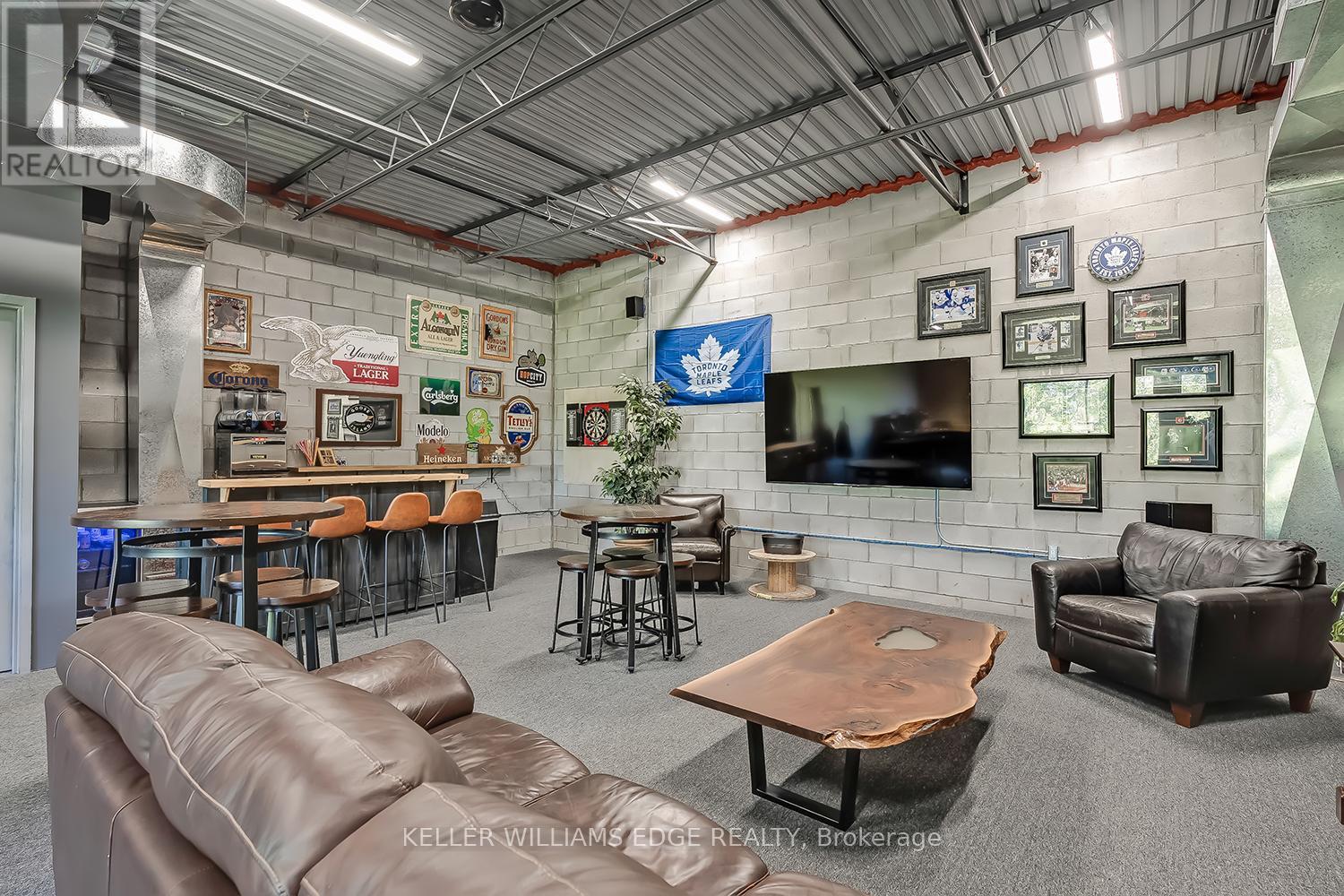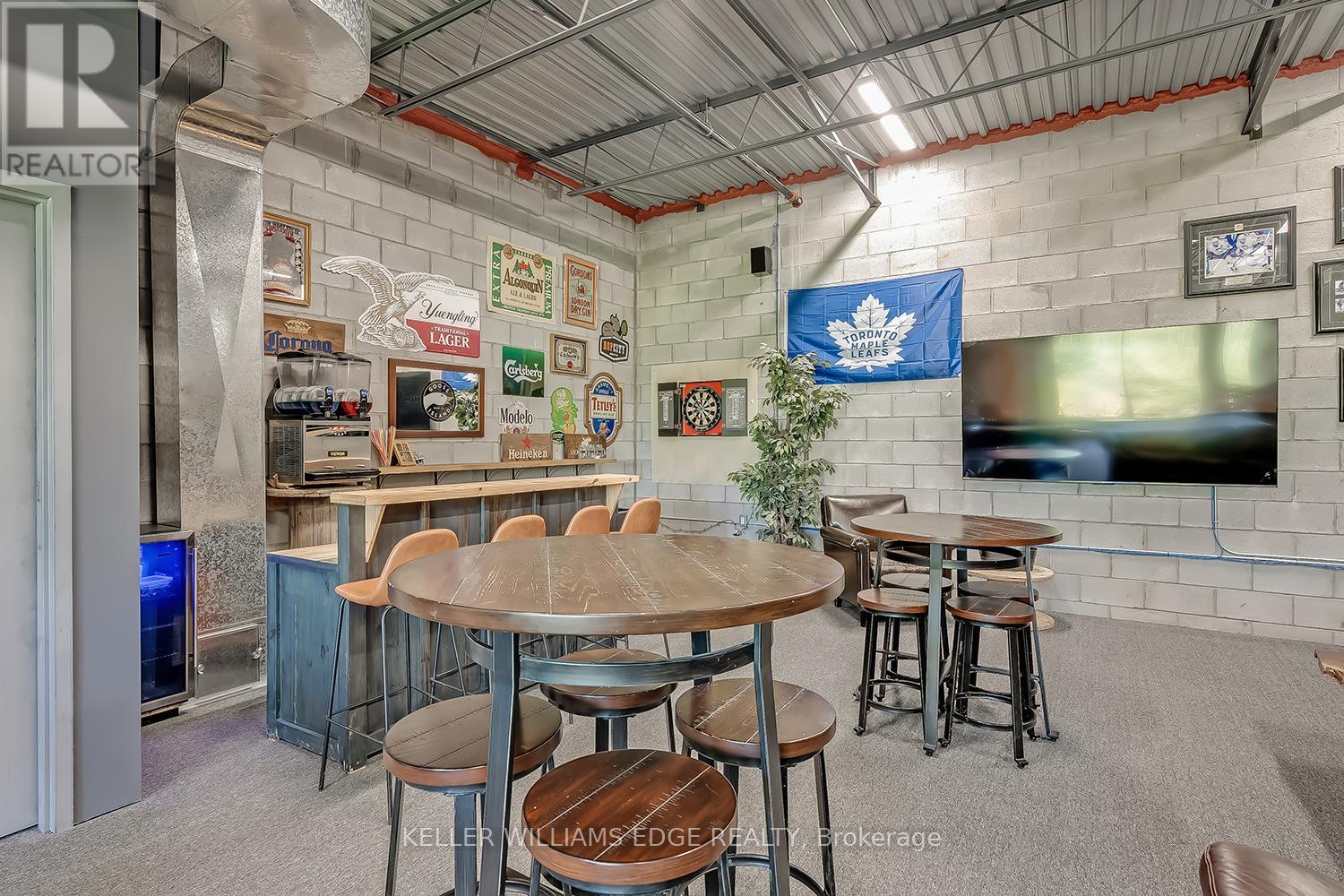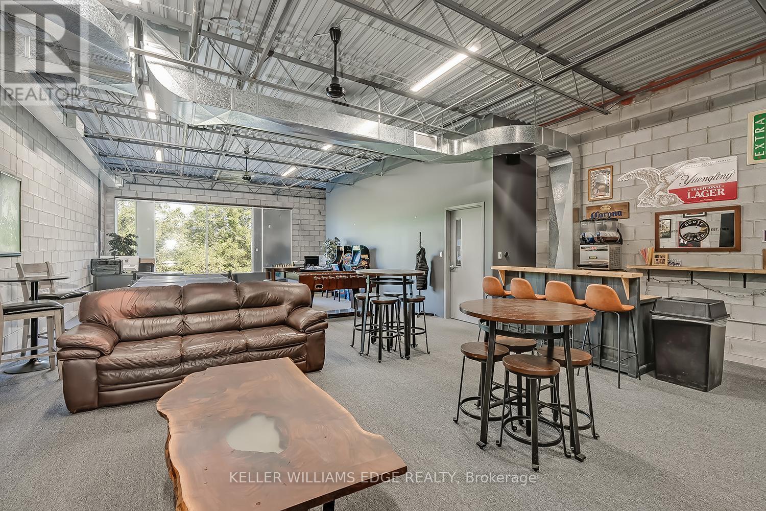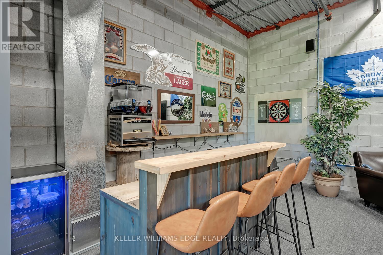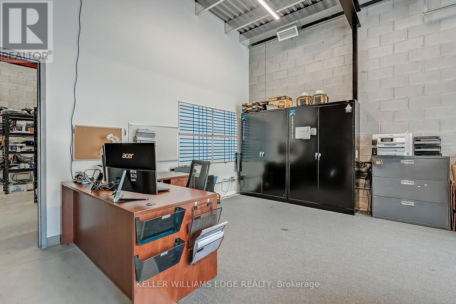 PRIME INDUSTRIAL-COMMERCIAL OPPORTUNITY - This rare and versatile unit offers approximately 2,172 sq. ft. of functional space, including a 1,000 sq. ft. upper mezzanine. Bright and inviting with expansive windows, a glass front entry, and a 10' x 10' drive-in shipping door, this property is designed to meet a wide range of business needs. The main floor features polished concrete floors, a functional kitchenette, spacious washroom, and dedicated storage. The open-concept mezzanine provides flexible options for additional storage, offices, meetings or collaborative work and even includes a wet bar. Additional highlights include 3-phase 60amp/600v electrical service, sprinkler system, and ample on-site parking for staff and visitors. With excellent visibility from King Road and convenient access to Highways 403, 407, QEW, and GO Transit, the location is as strategic as it is practical. Seller is willing to close the adjoining wall or leave it open should you wish to expand by leasing the neighbouring unit. (id:4555)