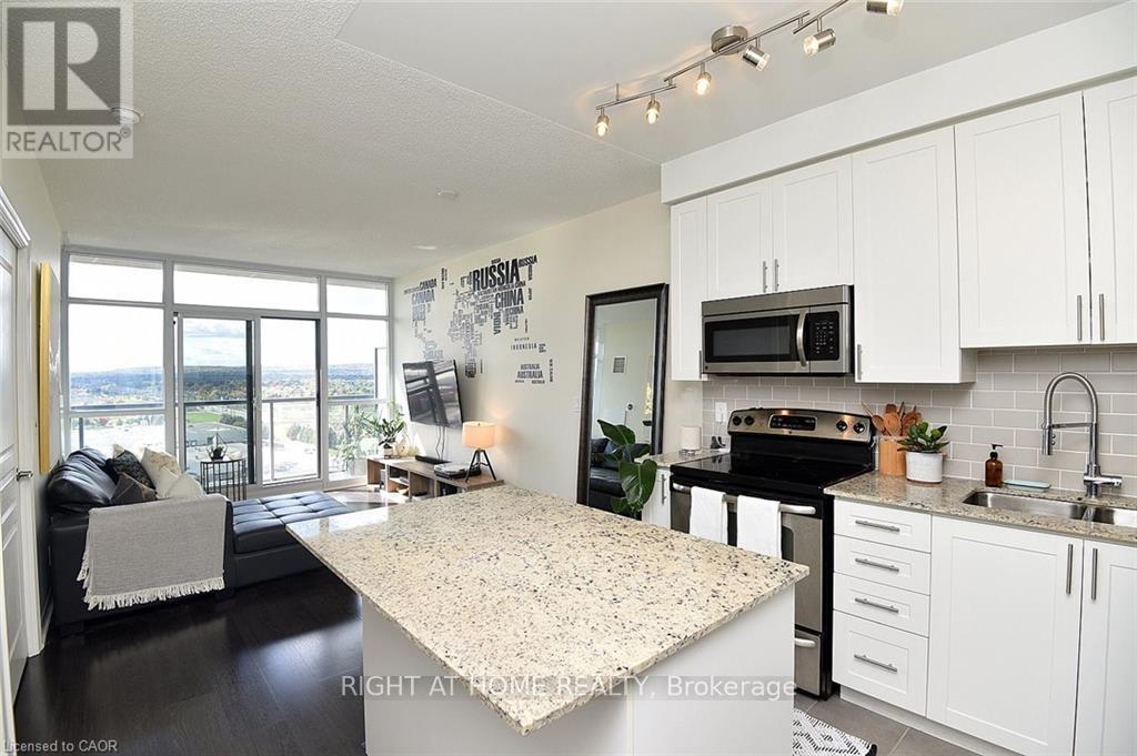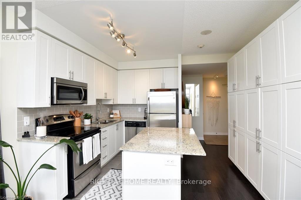 Beautiful Condo in One of Burlington's Most Desirable Areas.Stunning 1 Bedroom + Den suite offering clear, unobstructed views. Modern kitchen with granite countertops, upgraded cabinetry, and a large center island, open-concept living/dining area with floor-to-ceiling windows providing abundant natural light. The unit includes 2 bathrooms (1 full and 1 powder), in-suite laundry, and a private balcony with exceptional city views-perfect for enjoying holiday fireworks. Features include 1 underground parking space and 1 locker.Exceptional building amenities: Gym, Yoga Room & Cardio Room Rooftop Patio with BBQs & Fireplace Large Party Room (up to 60 guests) Concierge, Security Officers & Multiple Safety Features, Prime location: minutes to QEW, 407, GO Station, and walking distance to shopping, restaurants, and amenities. Move-in ready. Don't miss this opportunity! (id:4555)