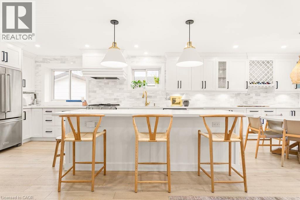 Prepare to be captivated by this stunning, fully renovated, top-to-bottom raised-ranch bungalow, perfectly situated in a prime, family-friendly Burlington location. This exceptional home offers the rare combination of a mature, sought-after neighbourhood with the luxury and convenience of a brand-new build. Key Features You Will Love: Open-Concept Main Level: The heart of the home features a seamless, bright, and airy open-concept layout, perfect for modern family living and entertaining. Custom Gourmet Kitchen: A chef's dream! The custom kitchen boasts high-end finishes, premium stainless steel appliances, and ample storage, flowing effortlessly into the dining and living areas. 3 + 1 Bedrooms & 2 Bathrooms: Generous accommodations with three spacious bedrooms on the main level and a large, versatile bedroom/office on the lower level. Amazing Lower Level: The expansive, fully finished basement is a true showstopper, offering an amazing recreational room ideal for movie nights, a home gym, or a play area. Backyard Retreat: Step outside to your private sanctuary. The professionally landscaped backyard is an entertainer's delight, centered around a beautifully updated inground salt-water swimming pool. Enjoy endless summer days and stylish outdoor entertaining! Unbeatable Location: Enjoy the ultimate convenience with schools, parks, and major shopping hubs all within easy walking distance. Ideal for commuters with quick access to major routes. This is more than just a houseāit's a lifestyle upgrade. All the hard work has been done; simply move in and enjoy the superior craftsmanship and exceptional amenities. Don't miss the opportunity to own this turn-key, executive residence in one of Burlington's most desirable areas! (id:4555)