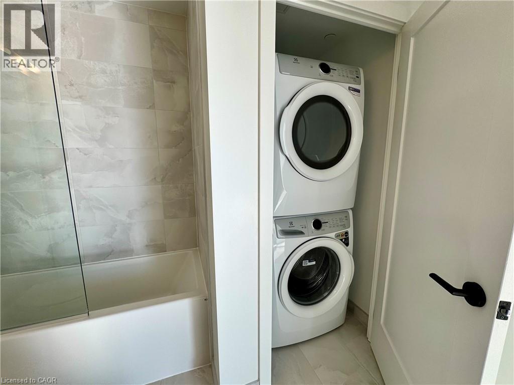 Brand New Downtown Burlington Condo with Lake Views! Welcome to Martha James Condos by Mattamy. This stunning brand new 2 bedroom, 2 bath suite provides modern living in the heart of downtown Burlington with beautiful views of downtown and Lake Ontario. Featuring 789 sq. ft. of thoughtfully designed interior space plus a 78 sq. ft. balcony, this bright unit boasts upgraded fixtures and appliances throughout. The open-concept kitchen and living area is perfect for everyday living and entertaining, with direct access to the balcony. Enjoy the convenience of in-suite laundry, a storage locker, and 1 underground parking space (#531). Residents can enjoy several common spaces including a sate of the art exercise room & yoga studio, private lounge/ party room and pet washing station. (Pet restrictions apply). Ideally located steps to restaurants, shopping, parks, transit, and schools, this is urban living at its best. A fantastic opportunity to lease a brand new condo in one of Burlington’s most sought-after developments. (id:4555)