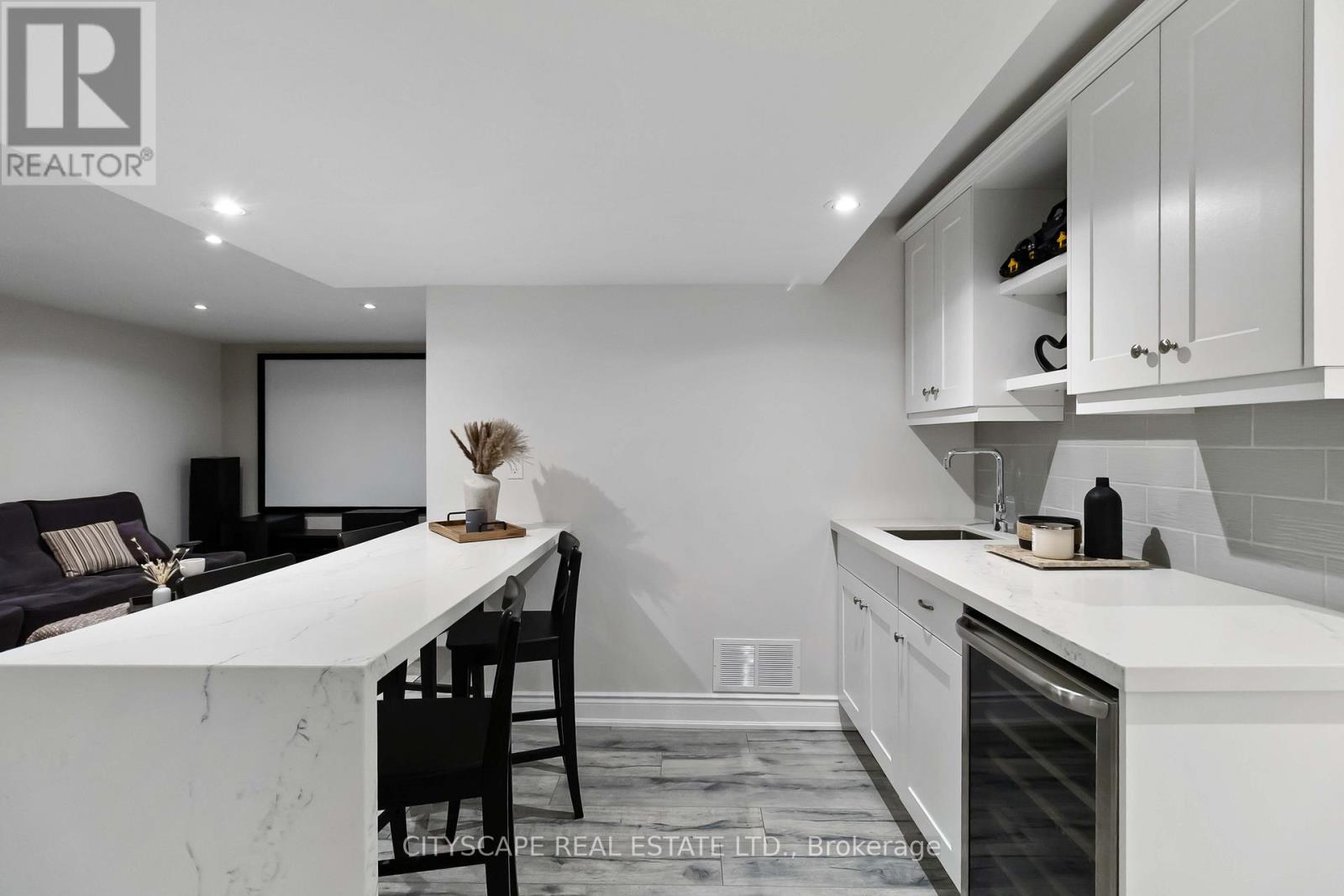 Welcome to 4269 Vivaldi Rd in Alton Village - The perfect blend of style, comfort and functionality! Step into this executive 4-bedroom, 3.5-bathroom stone and brick home nestled in one of Burlington's most sought-after communities. Offering 3,369 sqf of elegant living space, including 945 sqf of finished basement. Whether you're entertaining guests or enjoying a quiet evening, this layout is thoughtfully designed to make every space count. Fully renovated in 2023 with high-quality finishes throughout and over $250K invested. This home is ideal for growing families, professionals, or anyone seeking low-maintenance, modern living. Engineered hardwood on all above ground levels, modern tile, and updated fixtures. Open-to-above ceiling in the main entrance area and smooth ceilings on all three floors. The bright open-concept main floor with seamless flow between the living room, dining area and breakfast nook. Gourmet chef's kitchen with built-in black stainless steel KitchenAid appliances, quartz countertops, and custom cabinetry including a coffee station. The upper level offers four spacious bedrooms, a family room, and two full bathrooms. The spa-inspired primary ensuite includes heated floor, large glass shower, free standing tub, heated towel rack, and luxurious finishes that turn daily routines into a retreat. The finished basement is designed for entertainment with a wet bar, built-in Klipsch speakers and plenty of room for movie nights or gatherings. It also includes a Murphy bed and a bathroom, ideal for hosting overnight guests. Beautiful outdoor space featuring a built-in deck and landscaped backyard - perfect for relaxing. This home delivers turnkey luxury in a prime location with every detail elevated for modern living. Located within walking distance to top-ranking schools, parks, and amenities - this home truly shows a 10+. A family-friendly street, excellent walk score, and wonderful neighbours make this the perfect place to call home. (id:4555)