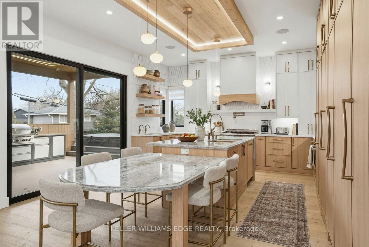 A rare opportunity to own an exclusive, gated custom estate offering unparalleled privacy in the heart of central Burlington, within the highly sought-after Tuck School district. Set on a fully fenced double lot surrounded by mature trees, this brand-new home exemplifies timeless design, refined luxury, and curated craftsmanship, perfect for executive living. The open-concept interior has been thoughtfully designed with high-end finishes throughout. The chef's kitchen features bespoke, ceiling-height white oak cabinetry, quartz countertops, a marble backsplash, a statement island, and premium stainless-steel appliances. Dramatic living and dining areas boast soaring 10-24 ft ceilings, integrated lighting, and a striking stone fireplace framed by expansive windows. Oversized sliding doors open to a covered, heated patio with a Napoleon outdoor kitchen, swim spa, and hot tub, creating a seamless indoor-outdoor experience ideal for year-round entertaining. A custom solid wood entry welcomes you to a dramatic floating staircase with glass panels and open risers, bathing the home in natural light and serving as a modern, elegant architectural centerpiece. The upper level offers a private primary retreat with a walk-in dressing room and a spa-inspired ensuite with heated floors. Three additional bedrooms each include private en-suites and walk-in closets with organizers. The fully finished lower level, with above-grade windows, includes a fifth bedroom with an ensuite, a secluded office, and a private walk-up entrance. Outside, the property is professionally landscaped with a paved driveway for four cars and a double garage. The home also features structural, mechanical, and smart home upgrades throughout, reflecting thoughtful design and enduring quality. This is a prestigious, rare offering in one of Burlington's most sought-after neighborhoods, delivering timeless, elevated living in a private, curated setting. (id:4555)