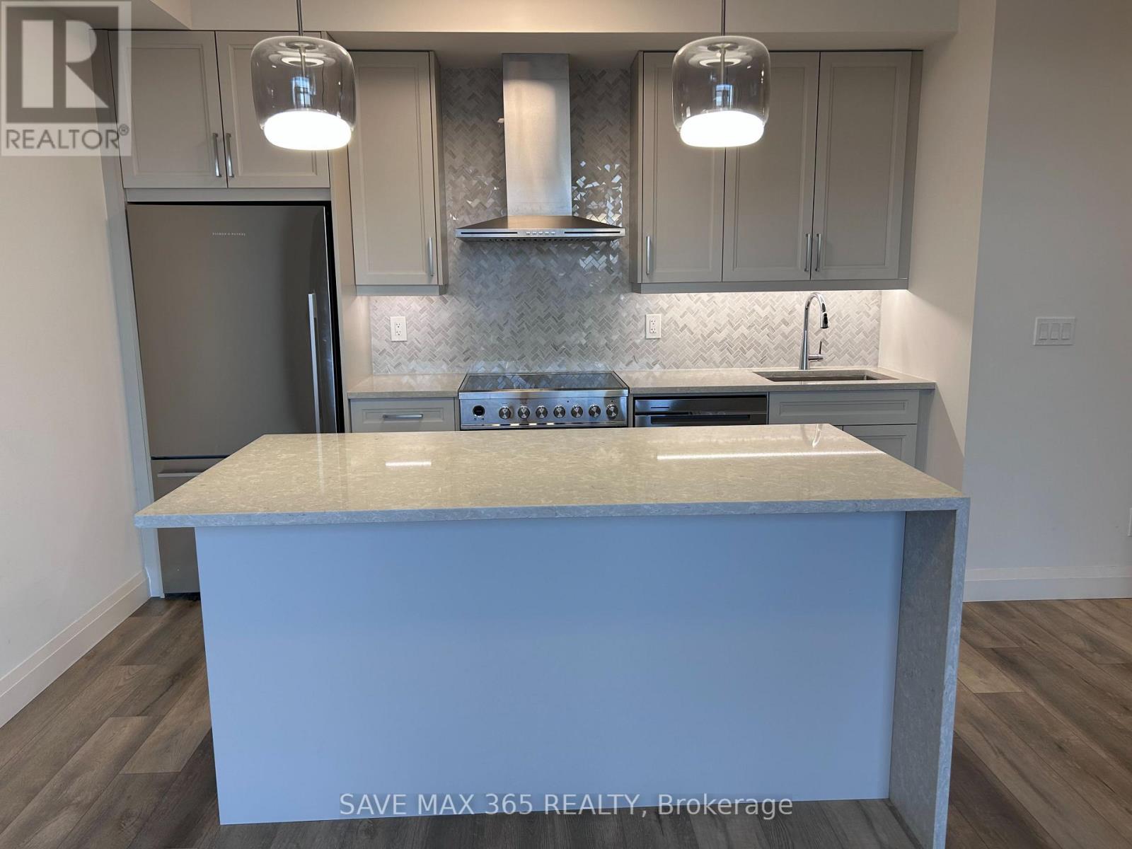 Best value opportunity for a beautifully finished, quiet, and bright 1 bedroom, 1 bathroom suite offering a modern open-concept layout with enhanced finishes throughout. This well-designed unit features abundant natural light and a walkout to a private balcony, ideal for everyday living and entertaining. The sleek contemporary kitchen showcases transitionally inspired cabinetry, custom countertops, with pendant lights and a generous centre/breakfast island providing ample prep and storage space. Complete with high-end stainless steel appliances and modern fixtures throughout.The spacious bedroom includes a stylish 4-piece ensuite, complemented by modern bathroom finishes. Convenient ensuite laundry adds to the functionality of this suite.Residents enjoy access to premium building amenities including a fully equipped gym and an impressive party room. Ideally located close to a wide range of shops, restaurants, waterfront trails, parks, and everyday conveniences. Minutes to Joseph Brant Hospital and public transportation, offering exceptional accessibility.An excellent opportunity for someone seeking comfort, quality, a prime location & proximity to Burlington Go Station (id:4555)