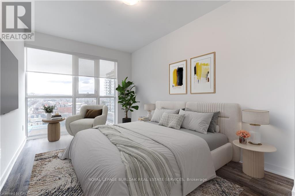 Welcome to this exceptional corner-unit residence offering 2 bedrooms, 2 bathrooms, and 2 owned parking spaces with floor to ceiling windows in the heart of downtown Burlington. Bathed in natural light, this rare suite boasts a spectacular 180 sq ft balcony with south, west, and north exposures, delivering unobstructed views of Lake Ontario, Burlington Bay, and the Niagara Escarpment-a true showstopper. The thoughtfully designed interior features full-size stainless steel appliances, including a gas oven/range, perfect for everyday living and entertaining alike. The spacious primary suite is a private retreat, complete with a luxurious 5-piece ensuite, highlighted by a floor-to-ceiling window, and a walk-in closet for added comfort and functionality. The gallery offers high quality amenities including; indoor pool, gym, party/billiard room, yoga room, guest suite, and a rooftop terrace. Set in an unbeatable location, just steps to Lake Ontario, waterfront trails, dining, shopping, and all downtown amenities, this home offers the perfect blend of urban convenience and scenic tranquility. A rare opportunity to enjoy elevated condo living in one of Burlington's most desirable settings. (id:4555)