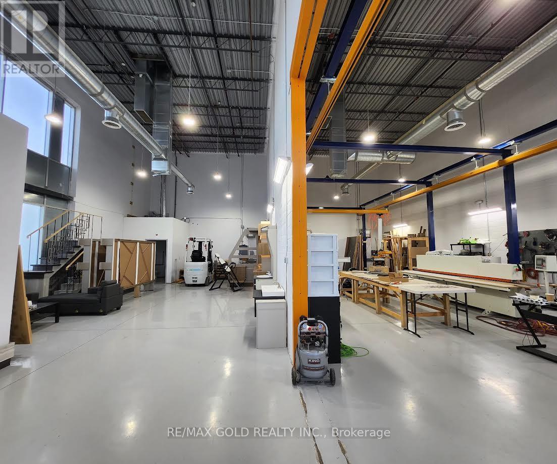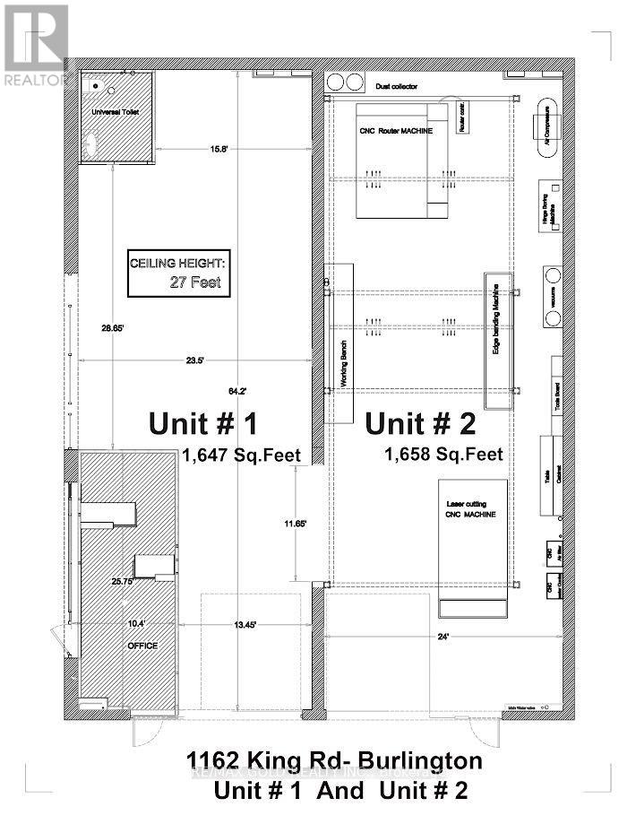 Location-Location-Location, corner units located on a main street, at the main andthe only entrance of a commercial/Industrial condominium located in a hot SpotNext to BURLINGTON IKEA on the KING's RD side, These attached 2 Units arecombined with an opening in between to function as 1 Unit with a total are of3,305 Square feet but still with separated DEEDs, with a BC1-471 zoning whichallows a variety of USE for many kinds of businesses, fully furnished with HVAC,Sewage, epoxy flooring, water proof walls painting, well distributed Powersupplies 2PH and 3Phase electricity, Including a fully furnished 230 Sq.F Office anda Universal ToiletA less than 3 years old fully equipped Millwork machineries legally permitted setup with $ 120,000 Value Can also be Added to the price (Optional) (id:4555)