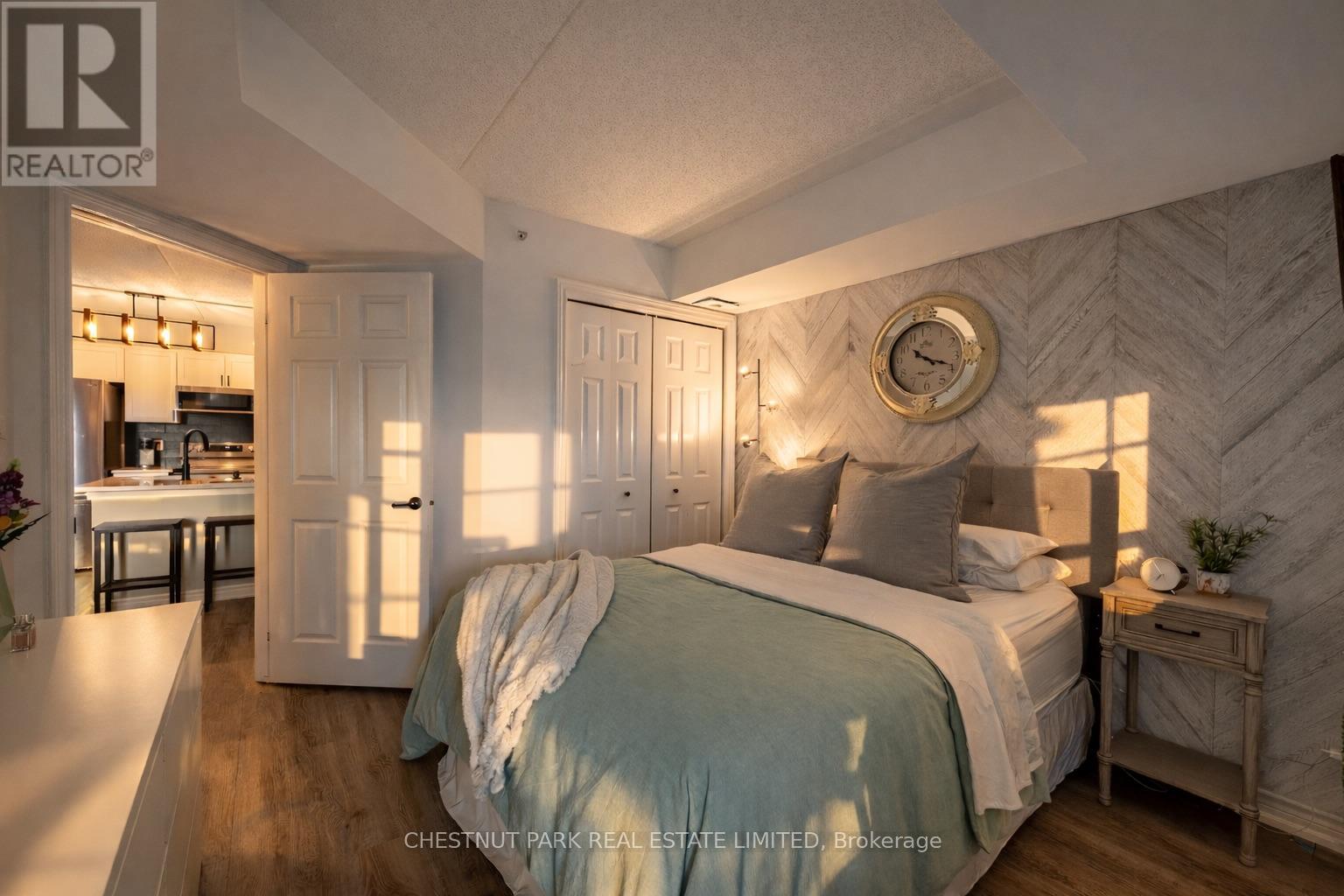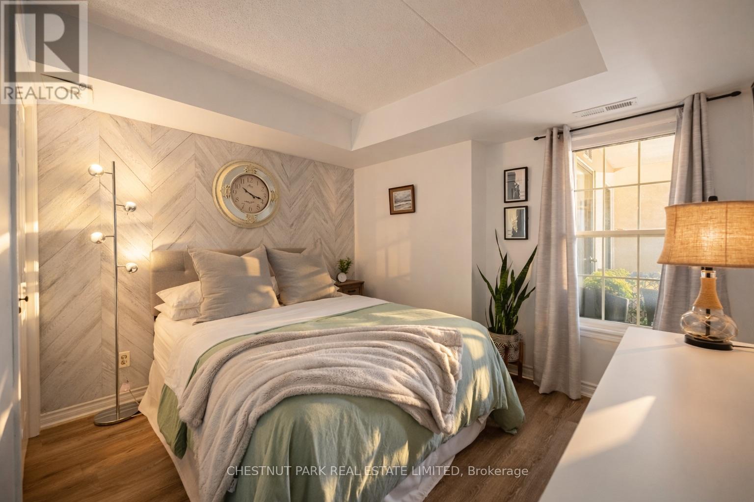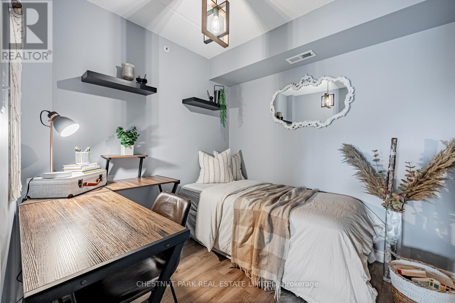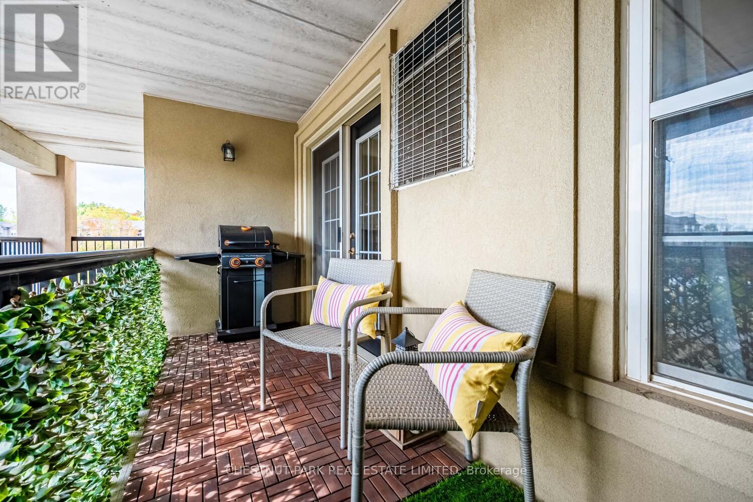 This well appointed and spacious 1-bedroom + den suite offers a fantastic layout in one of Burlington's most desirable communities. The open-concept living and dining area is filled with natural light, featuring large windows and a walk-out to a private balcony -perfect for morning coffee or evening relaxation. The kitchen boasts modern appliances, ample cabinetry, and a breakfast bar for casual dining. A versatile den provides the ideal space for a home office or guest area. The generously sized primary bedroom includes a double closet for ample storage, while the 4-piece bathroom is well-appointed and practical. Enjoy the convenience of in-suite laundry, one underground parking space, and two private lockers! The building offers excellent amenities, including a fitness room, party/meeting room, and plenty of visitor parking. Located in a quiet, well-managed complex just minutes from shops, restaurants, schools, parks, and major highways, this home is perfect for first-time buyers, downsizers, or investors alike. Move-in ready and full of charm, don't miss your opportunity to own in Orchard Uptown! (id:4555)