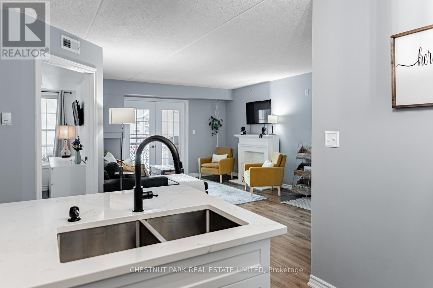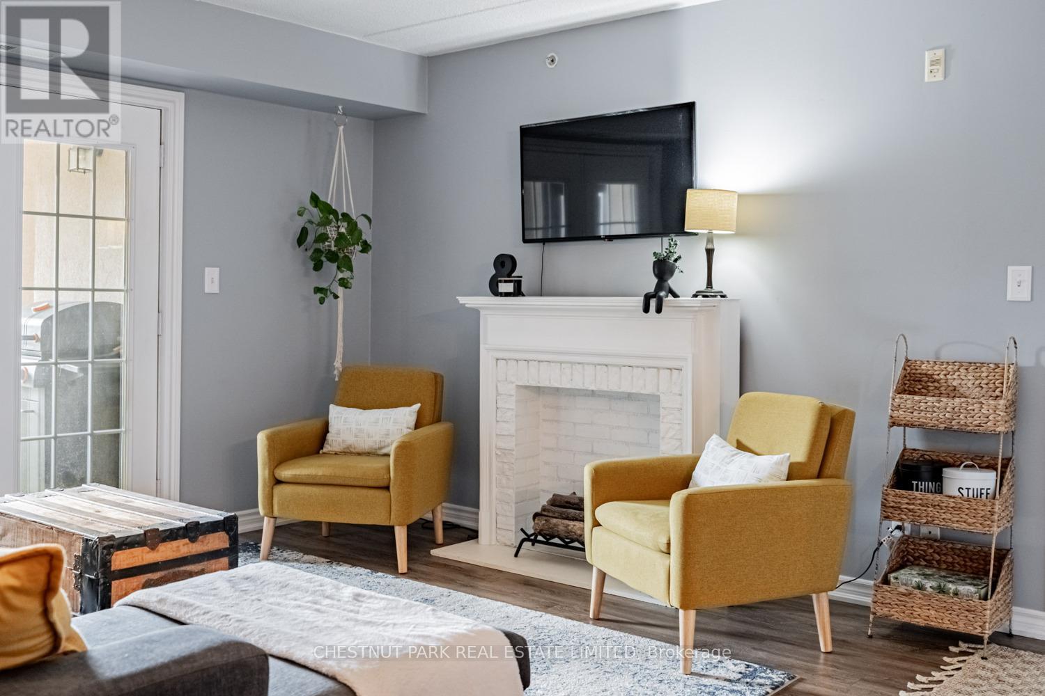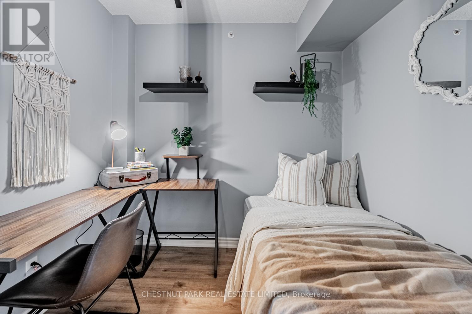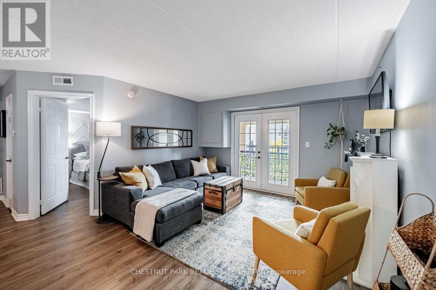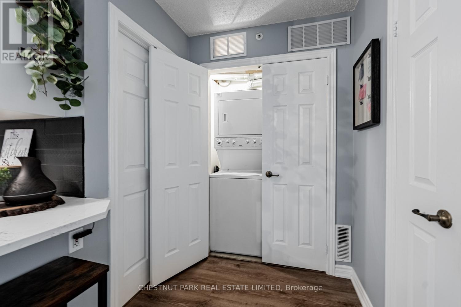 This well appointed and spacious 1-bedroom + den suite offers a fantastic layout in one of Burlington's most desirable communities. The open-concept living and dining area is filled with natural light, featuring large windows and a walk-out to a private balcony -perfect for morning coffee or evening relaxation. The kitchen boasts modern appliances, ample cabinetry, and a breakfast bar for casual dining. A versatile den provides the ideal space for a home office or guest area. The generously sized primary bedroom includes a double closet for ample storage, while the 4-piece bathroom is well-appointed and practical. Enjoy the convenience of in-suite laundry, one underground parking space, and two private lockers! The building offers excellent amenities, including a fitness room, party/meeting room, and plenty of visitor parking. Located in a quiet, well-managed complex just minutes from shops, restaurants, schools, parks, and major highways, this home is perfect for first-time buyers, downsizers, or investors alike. Move-in ready and full of charm, don't miss your opportunity to own in Orchard Uptown! (id:4555)
