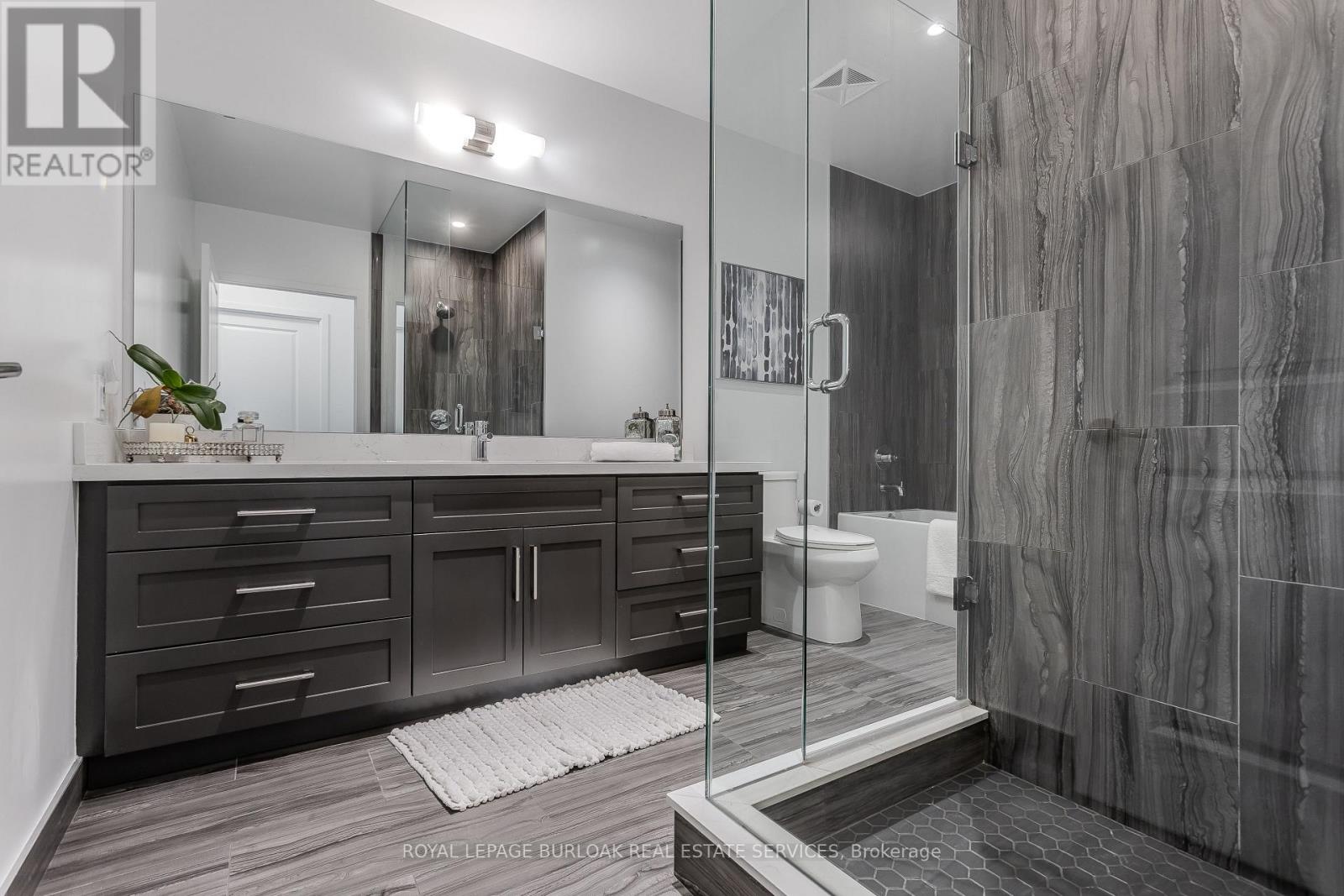 Experience elevated condo living at Gallery Condos, located in the heart of Burlington's vibrant downtown core, where luxury, lifestyle, and breathtaking lake views come together seamlessly. Spanning 1,064 sqft, this stunning residence offers panoramic waterfront vistas and a front-row seat to one of the city's most sought-after urban lifestyles-perfect for young professionals who want it all, just steps from their door. Inside, a modern and highly functional layout is flooded with natural light, complemented by upgraded wide-plank hardwood flooring throughout. The striking eat-in kitchen blends style and practicality with quartz countertops and backsplash, stainless steel appliances, deep pot-and-pan drawers, a pantry cabinet with efficient roll-out shelving, valance lighting, and a generous island with breakfast bar-ideal for hosting, working, or unwinding. Floor-to-ceiling windows in the spacious living area frame picturesque lake views and open to a private balcony with gas line for BBQ, creating an effortless indoor-outdoor connection. The primary suite is a true retreat, featuring floor-to-ceiling windows, a walk-in closet, and a spa-inspired ensuite with oversized vanity, deep soaker tub, and glass walk-in shower. A second bedroom with floor-to-ceiling windows offers flexibility for guests or a home office, complemented by a sleek four-piece main bath and convenient in-suite laundry. Parking and a storage locker are included. Residents enjoy an impressive collection of amenities including a contemporary lobby lounge, fully equipped fitness centre, co-working and meeting spaces, party and games rooms, media room, indoor lap pool, rooftop terrace with community BBQs, guest suites, concierge service, and a car wash. Set in an unbeatable lifestyle location, you're steps from exceptional dining, cafés, entertainment, waterfront parks and trails, daily essentials, transit, and quick highway access-urban living at its most refined. (id:4555)
