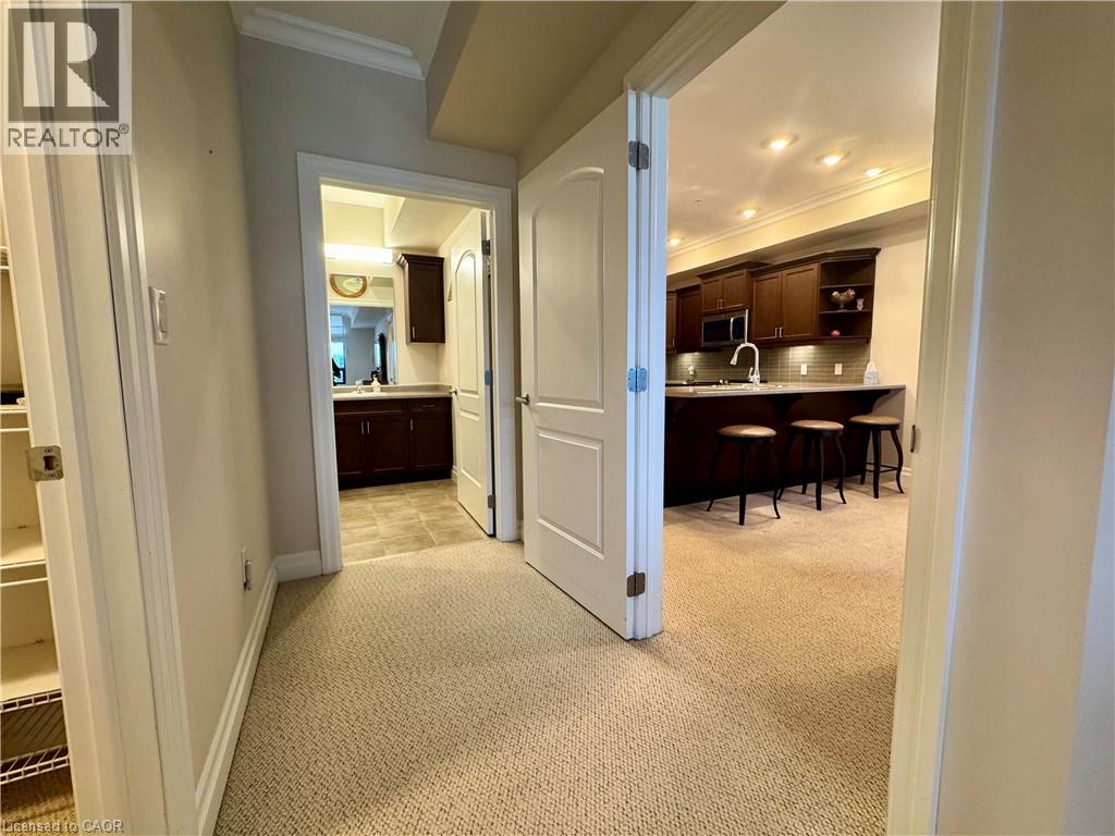 Welcome to “The Gardens by Maranatha”, a fully wheelchair-accessible 55+ life lease community located in the heart of mature South Burlington. This thoughtfully designed 1 bedroom plus den residence spans approximately 985 sq. ft. and is situated on the 3rd floor, creating an ideal setting for comfortable, low-maintenance retirement living. The bright, open-concept layout features a spacious kitchen with stainless steel appliances, ample cabinetry, and lower cabinets equipped with convenient pull-out drawers for enhanced accessibility. The kitchen flows seamlessly into the dining and living areas. The living room connects to a private balcony. The primary bedroom includes a walk-in closet and a wheelchair-accessible bathroom complete with a roll-in shower and grab bars. A versatile den provides flexible space for a home office, or hobby room. Additional conveniences include an automatic unit door opener, wide doorways, and in-suite laundry with custom cabinetry, designed with accessibility in mind. Residents enjoy more than 10,000 sq. ft. of outstanding amenities, including a fitness room, woodworking workshop, library, games lounge, coffee shop, main floor lounge, party and meeting rooms, outdoor terraces, and a beautifully appointed 4th-floor rooftop terrace with BBQs and raised garden beds. Secure underground parking, storage lockers, and guest suites add further comfort and convenience. Ideally positioned steps from shopping, public transit, churches, parks, lakefront trails, the hospital, Senior’s Centre, and downtown Burlington, this welcoming community blends connection with convenience.Monthly fees include heat, water, building insurance, maintenance, landscaping, snow removal, property taxes, phone, internet, and common elements, ensuring a truly carefree lifestyle. A warm, vibrant community designed for independent living — The Gardens by Maranatha is a place you’ll be proud to call home. (id:4555)