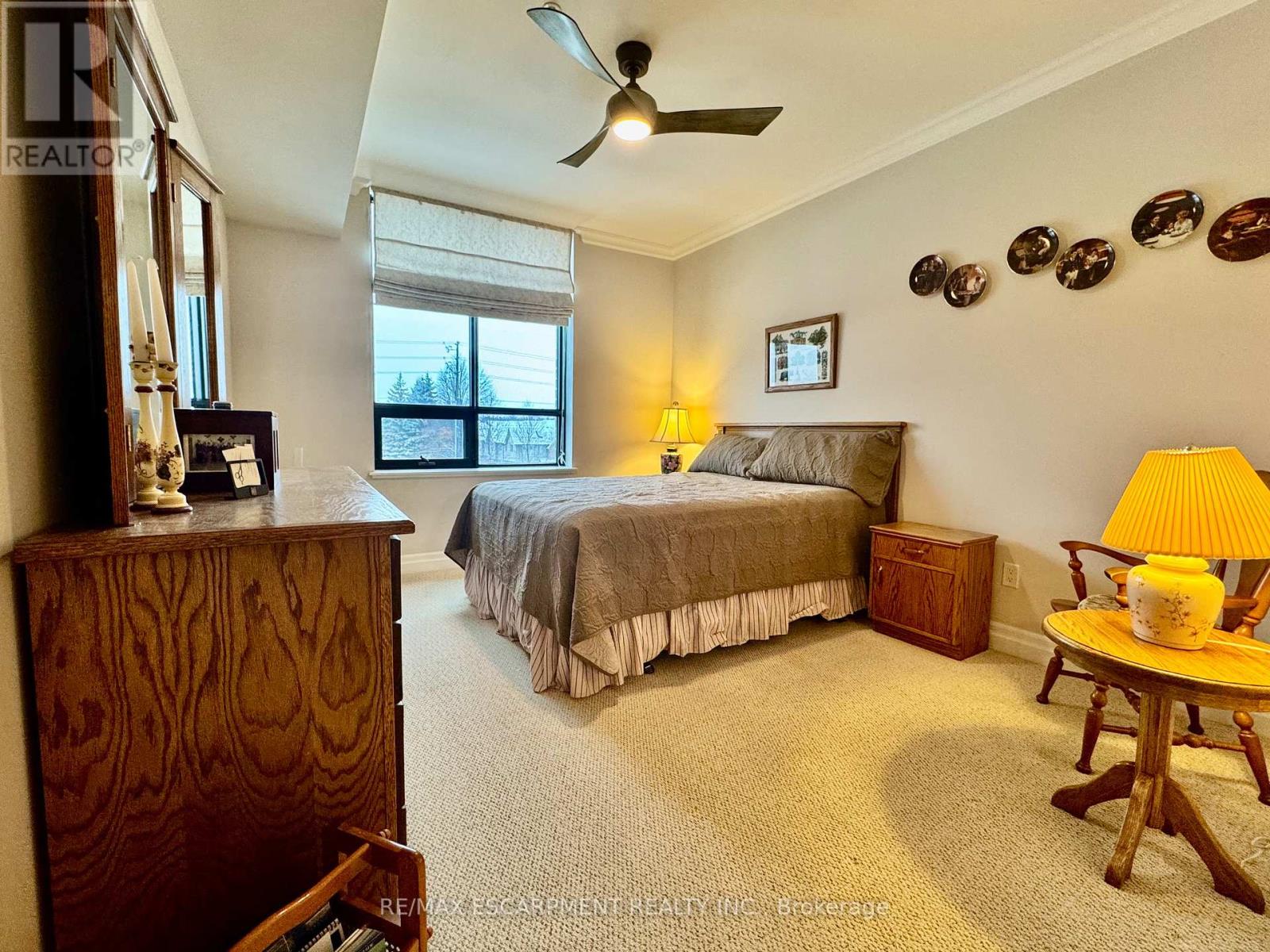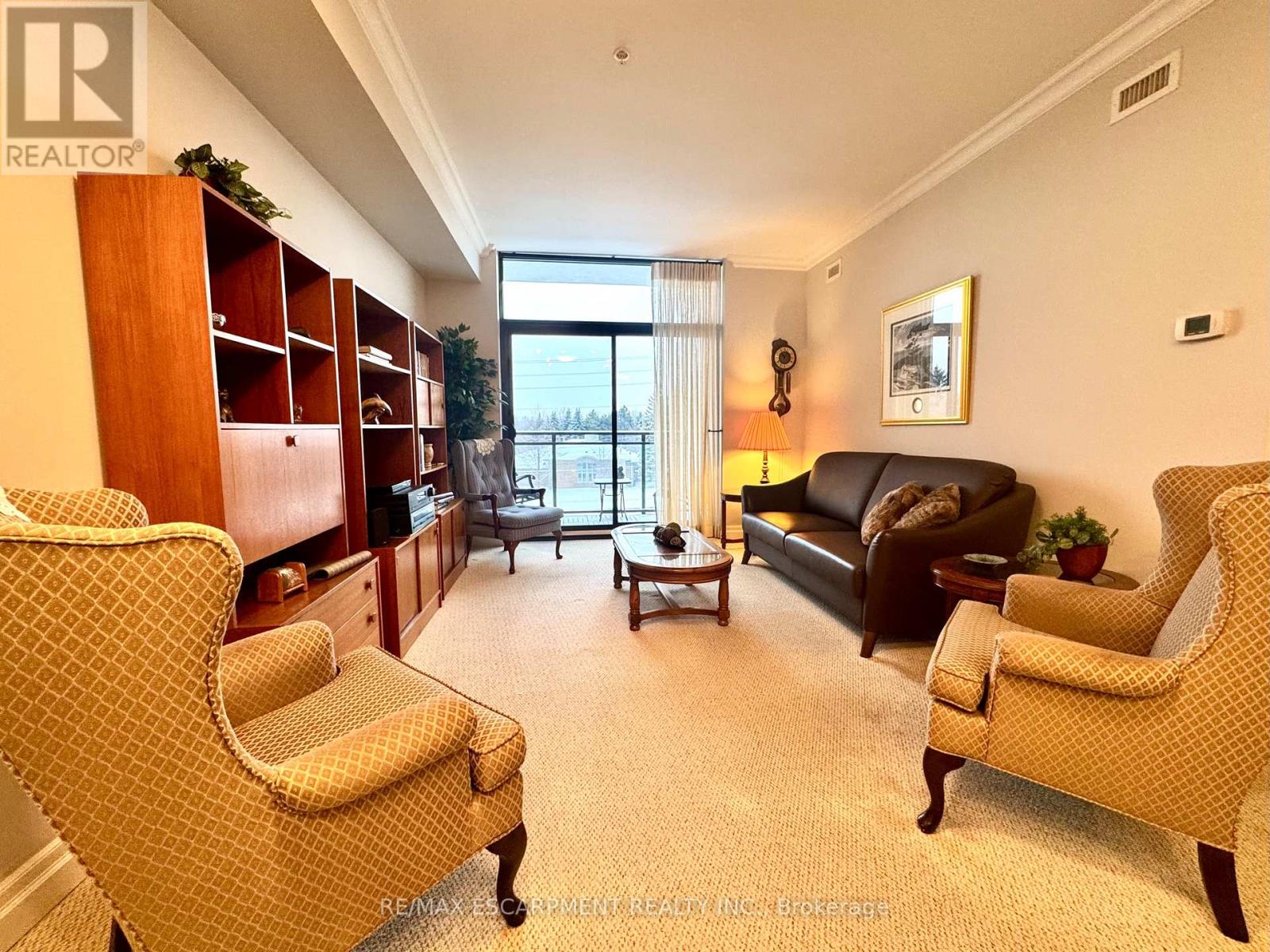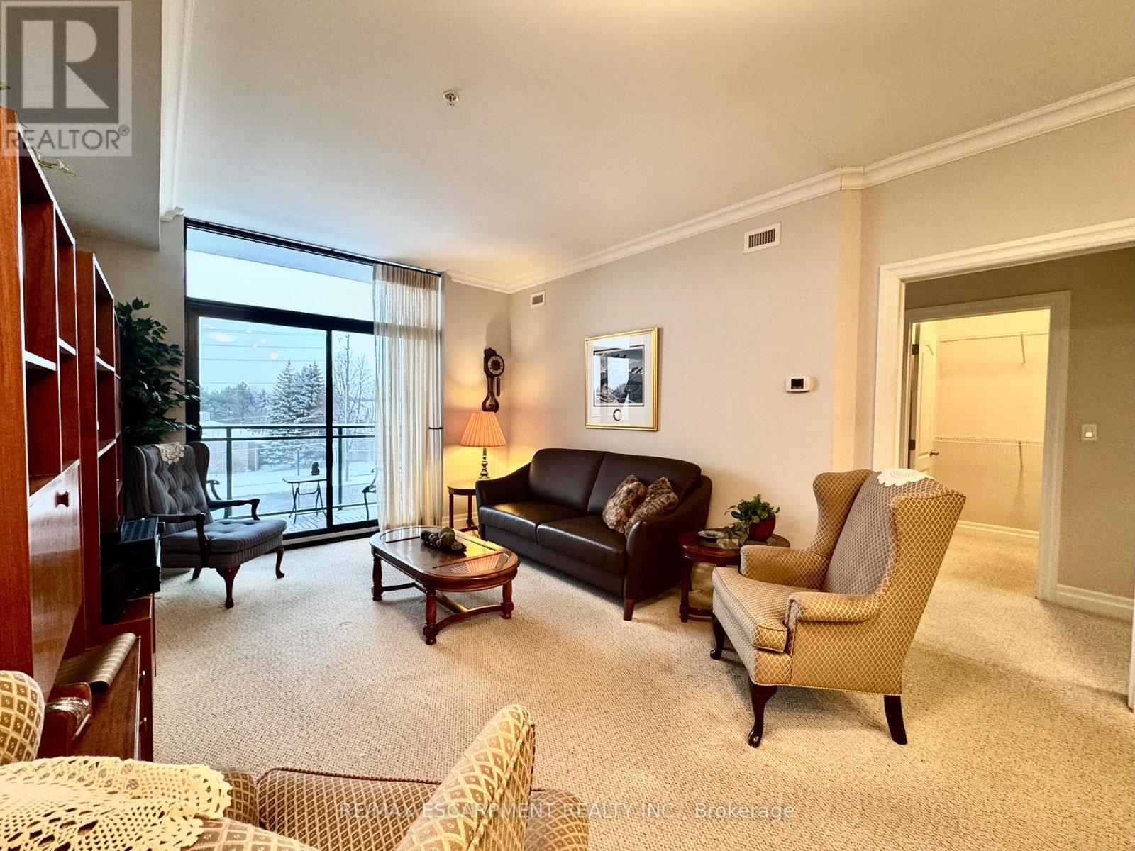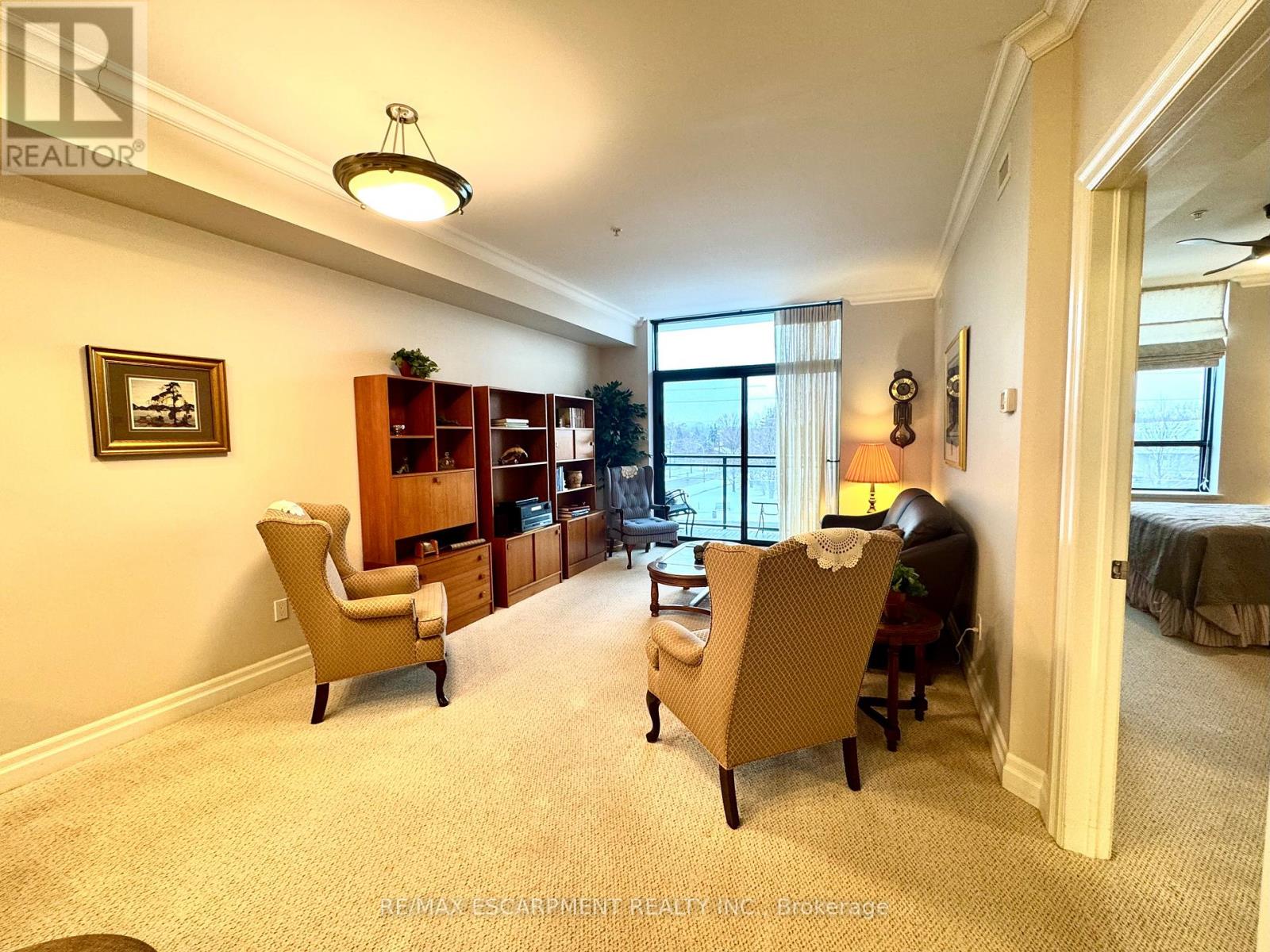 Welcome to "The Gardens by Maranatha", a fully wheelchair-accessible 55+ life lease community located in the heart of mature South Burlington. This thoughtfully designed 1 bedroom plus den residence spans approximately 985 sq. ft. and is situated on the 3rd floor, creating an ideal setting for comfortable, low-maintenance retirement living. The bright, open-concept layout features a spacious kitchen with stainless steel appliances, ample cabinetry, and lower cabinets equipped with convenient pull-out drawers for enhanced accessibility. The kitchen flows seamlessly into the dining and living areas. The living room connects to a private balcony. The primary bedroom includes a walk-in closet and a wheelchair-accessible bathroom complete with a roll-in shower and grab bars. A versatile den provides flexible space for a home office, or hobby room. Additional conveniences include an automatic unit door opener, wide doorways, and in-suite laundry with custom cabinetry, designed with accessibility in mind. Residents enjoy more than 10,000 sq. ft. of outstanding amenities, including a fitness room, woodworking workshop, library, games lounge, coffee shop, main floor lounge, party and meeting rooms, outdoor terraces, and a beautifully appointed 4th-floor rooftop terrace with BBQs and raised garden beds. Secure underground parking, storage lockers, and guest suites add further comfort and convenience. Ideally positioned steps from shopping, public transit, churches, parks, lakefront trails, the hospital, Senior's Centre, and downtown Burlington, this welcoming community blends connection with convenience.Monthly fees include heat, water, building insurance, maintenance, landscaping, snow removal, property taxes, phone, internet, and common elements, ensuring a truly carefree lifestyle. A warm, vibrant community designed for independent living - The Gardens by Maranatha is a place you'll be proud to call home. (id:4555)
