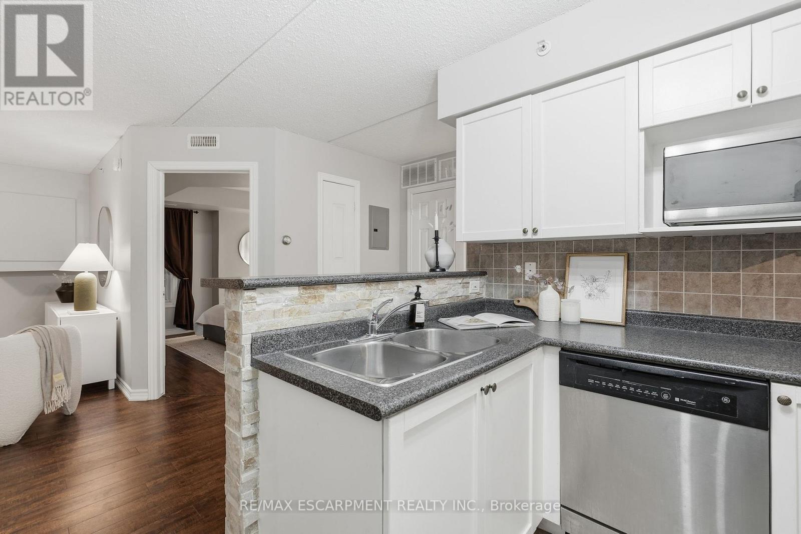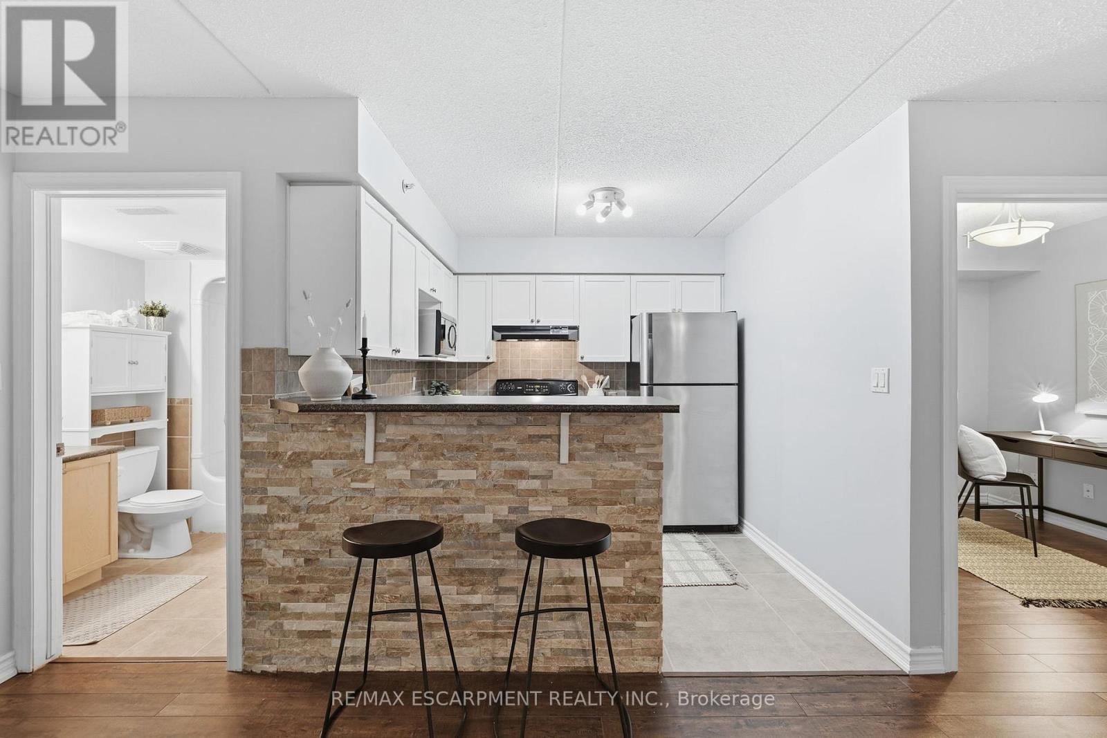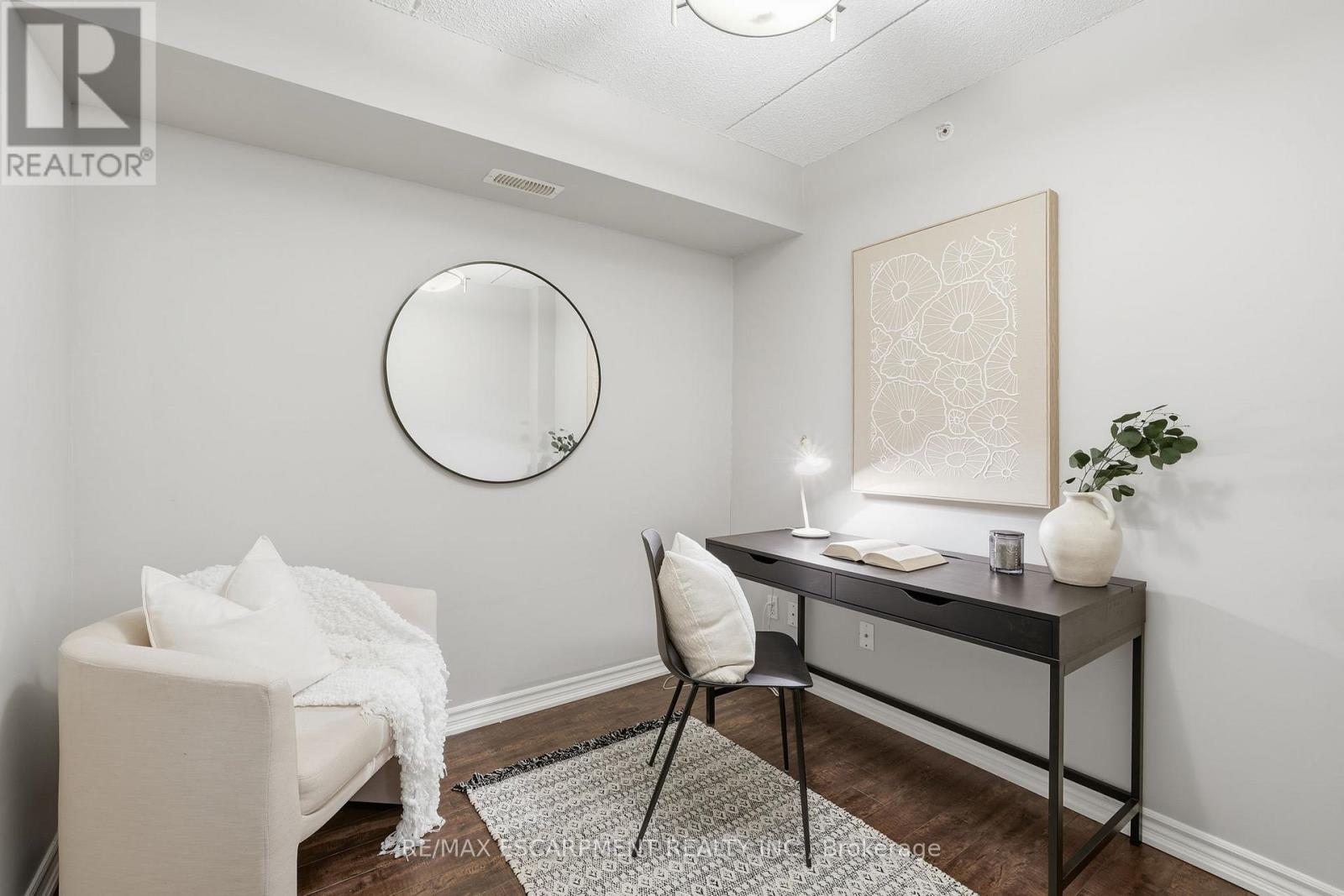 1 YEAR OF CONDO FEES PREPAID BY THE SELLER. Stylist low-maintenance living in the heart of Burlington! This modern 1 bedroom plus den, 1 bathroom unit is the perfect fit for young professionals looking to own their first home or retirees seeking comfort, convenience, and lifestyle. Located just minutes from the QEW and Hwy407, commuting is a breeze while being steps to restaurants, cafes, and all the shopping you need means keeping your time spent in the car to a minimum. Bright kitchen cabinetry and sleek laminate flooring throughout the main living space make this space fresh and move in ready. The spacious den provides an ideal work from home space or hobby room. Other conveniences include in-suite laundry, 1 underground parking space, and 1 locker for extra storage. Plus an additional bonus storage room can be found on the balcony for added convenience. Plenty of visitor parking means friends and family can drop by anytime. Residents also enjoy access to a fitness centre and party room, ideal for socializing or staying active without ever leaving home. Whether you're working downtown, hybrid, or remote, this is a smart move in a fantastic location!Don't miss this opportunity to simplify your life without sacrificing style, comfort, or location! (id:4555)