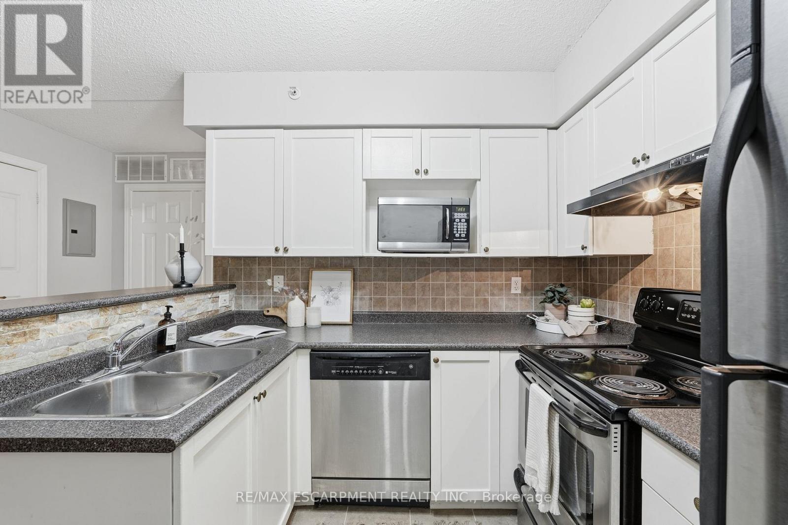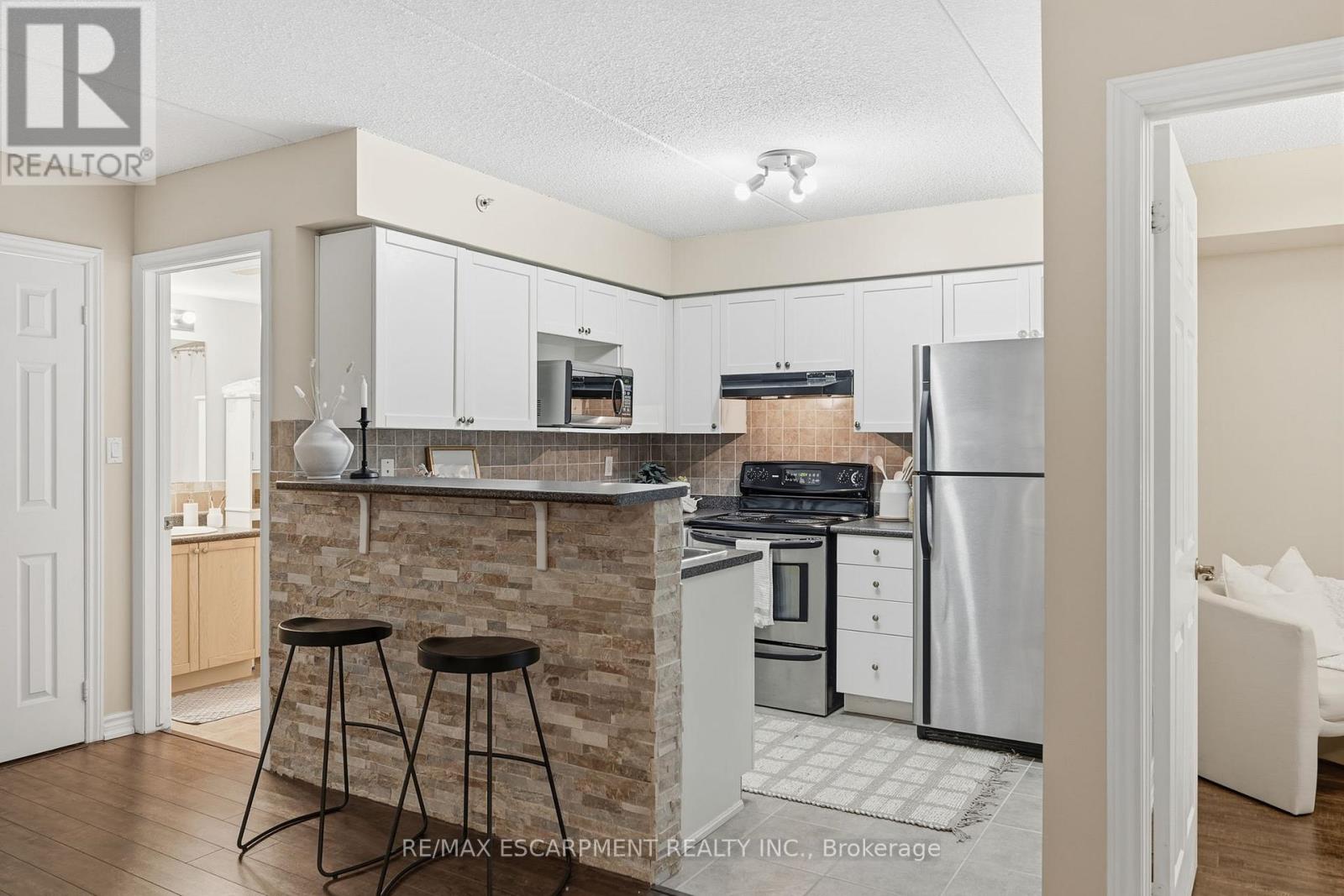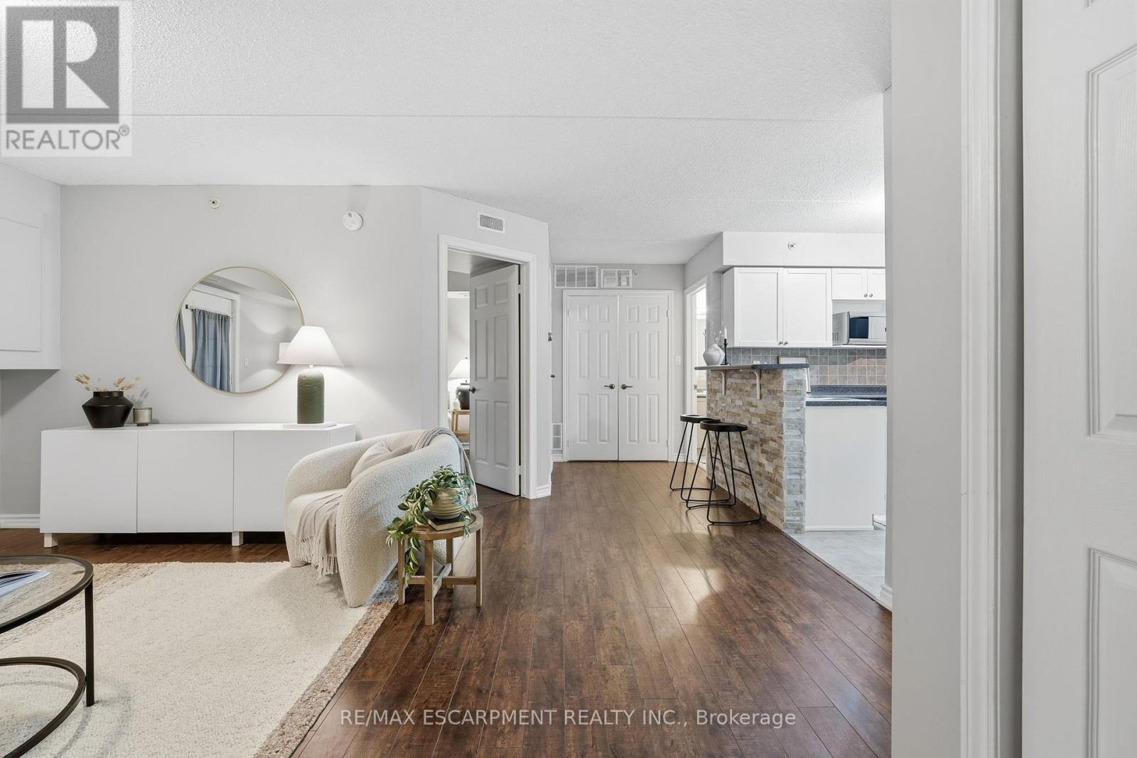 1 YEAR OF CONDO FEES PREPAID BY THE SELLER. Stylist low-maintenance living in the heart of Burlington! This modern 1 bedroom plus den, 1 bathroom unit is the perfect fit for young professionals looking to own their first home or retirees seeking comfort, convenience, and lifestyle. Located just minutes from the QEW and Hwy407, commuting is a breeze while being steps to restaurants, cafes, and all the shopping you need means keeping your time spent in the car to a minimum. Bright kitchen cabinetry and sleek laminate flooring throughout the main living space make this space fresh and move in ready. The spacious den provides an ideal work from home space or hobby room. Other conveniences include in-suite laundry, 1 underground parking space, and 1 locker for extra storage. Plus an additional bonus storage room can be found on the balcony for added convenience. Plenty of visitor parking means friends and family can drop by anytime. Residents also enjoy access to a fitness centre and party room, ideal for socializing or staying active without ever leaving home. Whether you're working downtown, hybrid, or remote, this is a smart move in a fantastic location!Don't miss this opportunity to simplify your life without sacrificing style, comfort, or location! (id:4555)