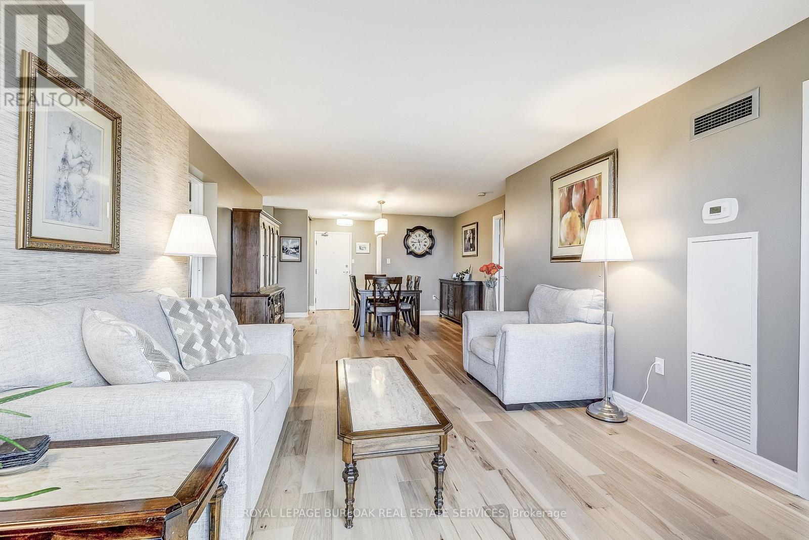 Welcome to this bright and spacious 2-bedroom, 2-bath corner suite offering over 1,300 sq. ft. of comfortable living space, perfect for downsizing, with stunning south-facing views of Lake Ontario from every window. This beautifully updated condo features a split-bedroom layout for added privacy, engineered hardwood flooring throughout, and 2x2 porcelain tiles in the kitchen, bathroom, and laundry. Enjoy electronic blinds in the kitchen and second bedroom for added convenience. The spacious living room opens to a large south-facing balcony through four panel sliding patio doors, seamlessly blending indoor and outdoor living and flooding the space with natural light. The modern eat-in kitchen is a chef's dream, showcasing gleaming white push-touch cabinets, pot lights, under-mount cabinet lighting, and all stainless steel appliances, including an induction stove, fridge with ice maker and water dispenser, Miele dishwasher, and a reverse osmosis system. The primary suite offers a cozy sitting area, walk-in closet, and 4-pieceensuite. The second bedroom is also generously sized with a semi-ensuite 3-piece bath. A separate laundry room includes a Miele side-by-side washer and ventless dryer with plenty of storage space. Includes two parking spots and a locker, plus access to exceptional building amenities: a heated outdoor pool, tennis court, gym, library, social room, workshop, and an indoor carwash bay. Ideally located steps to downtown Burlington, waterfront trails, beaches, restaurants, shopping, and across from Joseph Brant Hospital. Convenient access to the QEW, 403, 407, and three GO Stations makes commuting a breeze. Make 809-1201 North Shore your Home!! (id:4555)