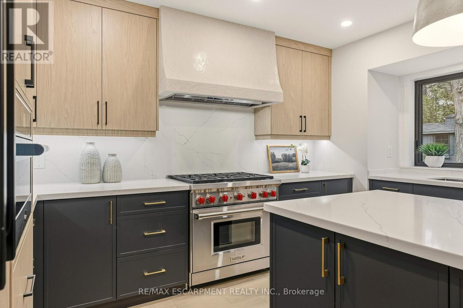 Sophisticated bungalow living in the heart of Aldershot! Welcome to 759 Shadeland Ave. Meticulously renovated from top to bottom with designer details throughout. Impressive millwork and built-ins, white oak flooring, and heated floors on all tiled surfaces. The focal point is the gourmet kitchen with oversized island, Wolf gas range, and custom plaster hood. Gorgeous dining room with vaulted ceilings and wall to wall sliding doors overlooking the private yard. Sleek gas fireplace and inviting living room with accent ceiling. In-ceiling SONOS speakers throughout with multiple zones including backyard. Lower level features an additional bedroom, full bath and rec room. Convenient laundry room off the garage with heated floors and lots of storage. Garage has rough-in for electric car charger. Private backyard with composite deck. Enjoy the tranquillity of the neighbourhood with its gorgeous tree canopy and proximity to the waterfront and Burlington Golf & Country Club. Close to downtown, shopping GO Train, and schools. (id:4555)