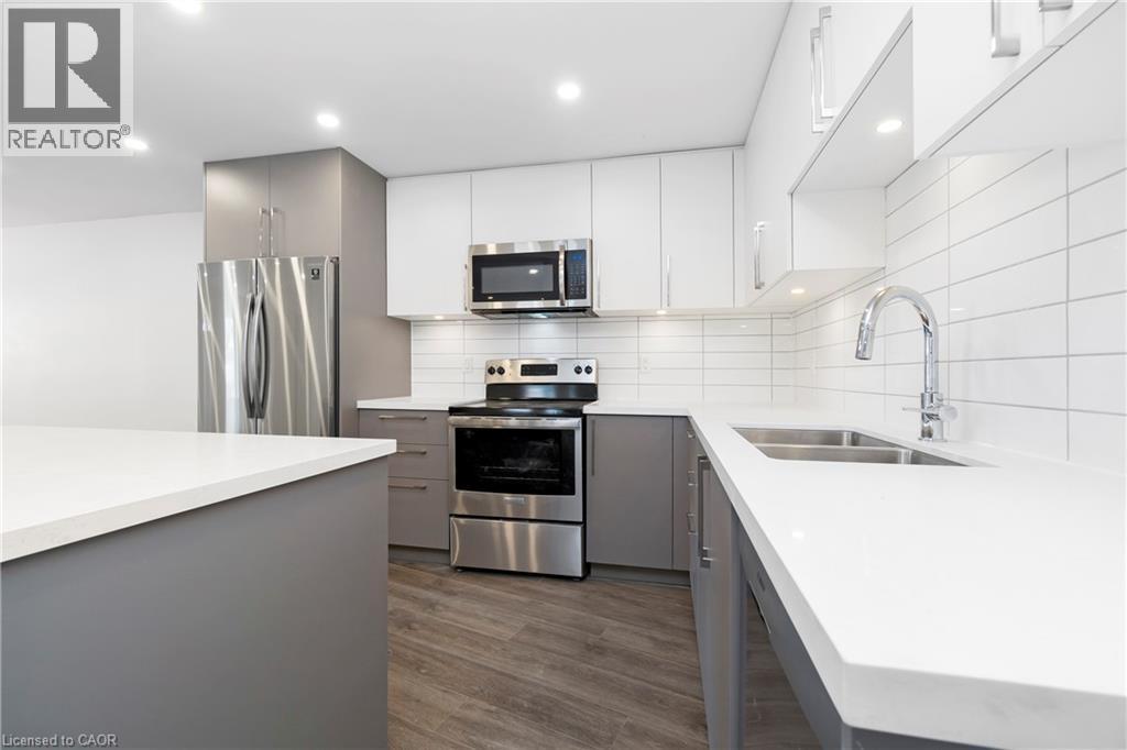 Renovated from top to bottom - this unit boasts 2 large bedrooms and 2 bathrooms, including a primary 3pc en-suite. The open concept kitchen/dining area is filled with natural light and has been updated with brand new modern fixtures, quartz counters and stainless steel appliances. This unit also includes a large laundry room with new washer/dryer and sink. Situated at the end of a court in a quiet neighbourhood in North Burlington, this unit is close to all amenities, schools, parks and has backyard access to the local bike path. Space for 2 small cars or 1 larger car. Landlord will take care of lawn maintenance. Internet Included. Available as of March 1st. (id:4555)