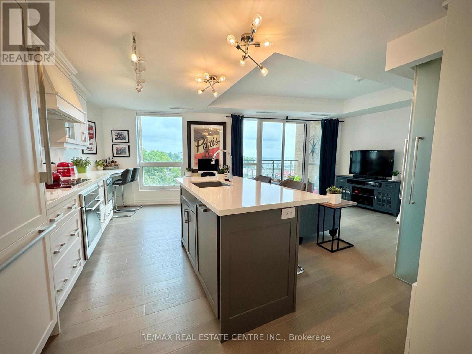 AFFORDABLE LUXURY ON THE WATERFRONT! Beautiful one bedroom condo, with high end finishes, located in the prestigious Bridgewater Residence. Bridgewater is waterfront living at its finest. Exceptional amenities include a huge 8th floor outdoor terrance with BBQs and spectacular views of Lake Ontario. Other amenities include 2 fitness centres, party room with billiards and piano, spa like indoor pool, boutique style lobby with 24 hour concierge , direct access to Isabells restaurant, Pearl Cafe and the Pearle Hotel. Enjoy monthly social events and get togethers. Located directly on the gorgeous Waterfront Trail on Lake Ontario, along the Brant Street Pier and Spencer Smith Park. The condo features beautiful sunrises from the East facing balcony. Open concept living room /dining room/ kitchen. The kitchen features beautiful white cabinetry, huge island and Thermador appliances. The kitchen/ dining room/ living room area is pretty spacious, with room for more furniture and flexible configuration. Heated floors in the 4 piece bathroom; bedroom features a large double closet. Beautiful trim work throughout. Located in the heart of Burlington, walkable to vibrant shops and a variety of many restaurants. Included are one underground parking spot and one storage locker (both are owned). Book your showing today. (id:4555)