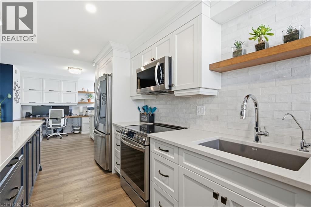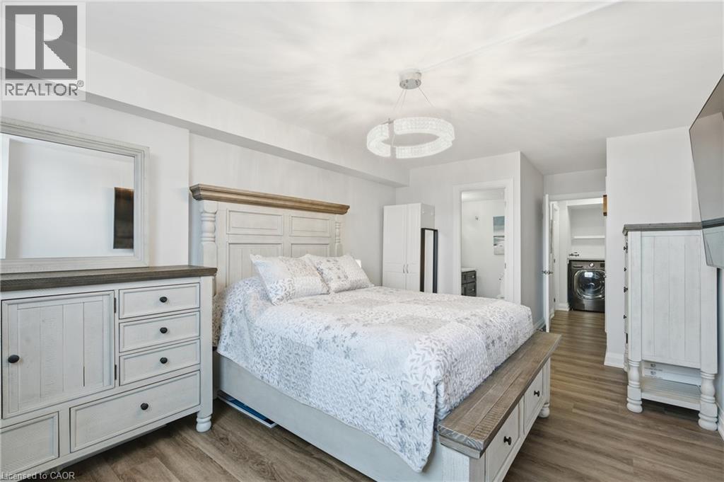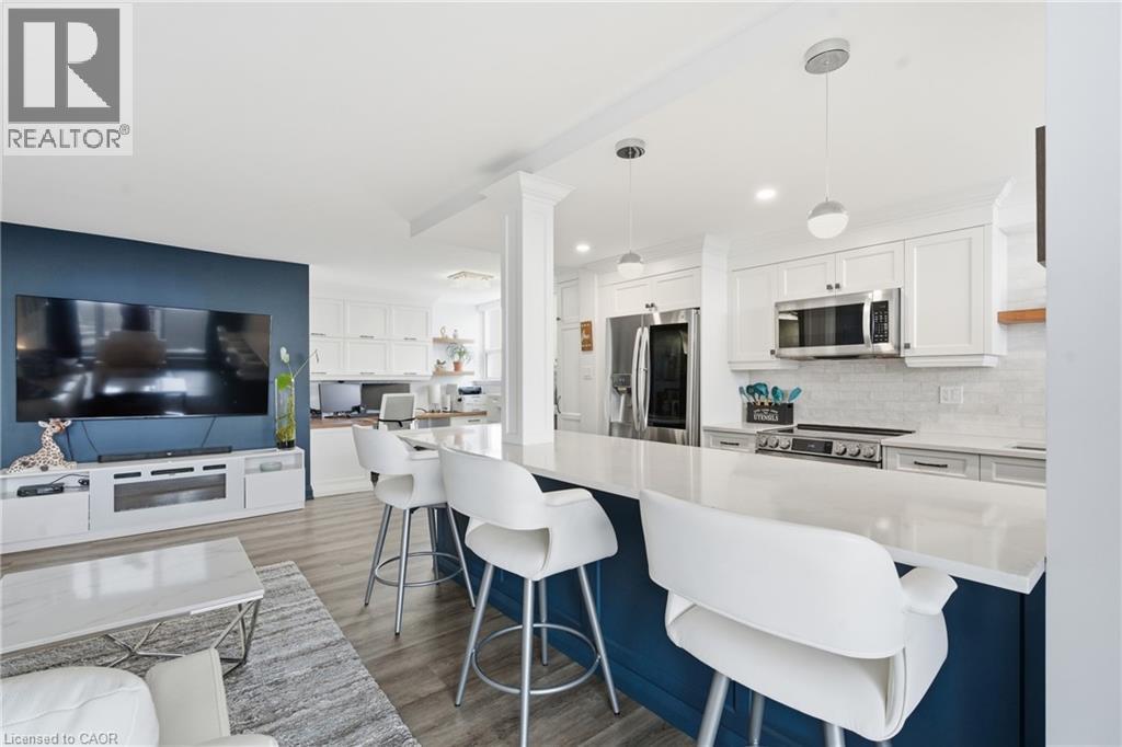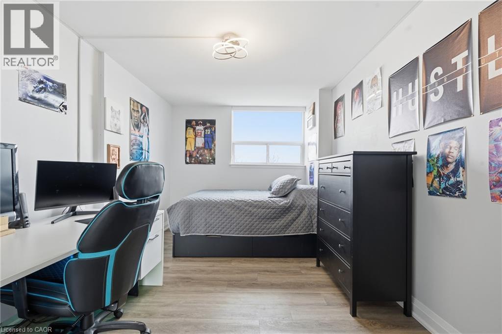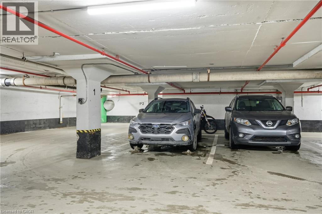 Unbelievable value with condo fees that include heat, hydro, water, gas, cable, internet, and full building maintenance! Then there's the indoor pool, gym, library, two woodworking shops, three bicycle rooms, car wash, underground parking, and a vibrant community that hosts euchre, bridge, Christmas dinners, and more. A convenience store is located directly across the street.This stunning suite has been extensively renovated with a COMPLETE $125,000 renovation in 2022 and is truly move in ready. The custom high-end kitchen is stunning, featuring high end multi-tone cabinetry, quartz countertops, deep upgraded sink and faucet with bar seating, LG appliances, and a dedicated coffee/tea/alcohol barista bar. Both bathrooms have been beautifully updated with high end vanities, finishes and an oversized shower. Gorgeous flooring throughout includes an upgraded noise reduction underlay for added comfort. A gorgeous home office has been built in, complete with matching cabinetry and a built-in desk that complements the kitchen perfectly. And there is still room to put in a table when needed. Both bedrooms are generously sized, with the primary bedroom offering a walk-in closet and a 2 pc ensuite both with chandeliers. In suite laundry and an exceptionally handy in-suite storage room add to the functionality of this space. Upgraded light fixtures throughout including the storage room. Oversized balcony facing Lake Ontario. Gorgeous 20 minute walk to Lakeshore Blvd. Spacious, modern, and impeccably finished, this suite is located close to downtown, with easy highway access and an abundance of shopping nearby. Ample visitor parking in the rear of the building and clean, well-lit underground parking for the the owner. All appliances are 3 years old. (id:4555)