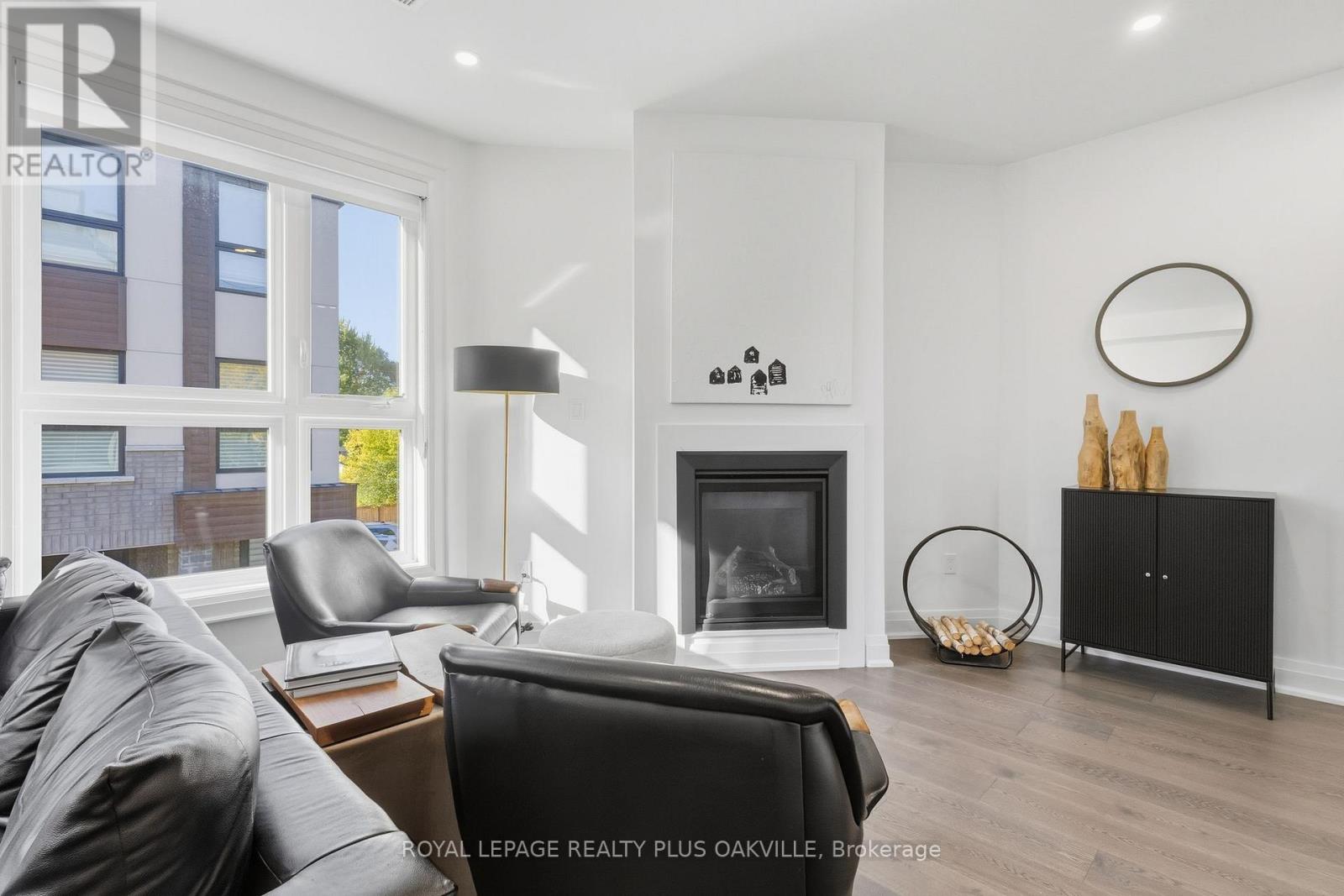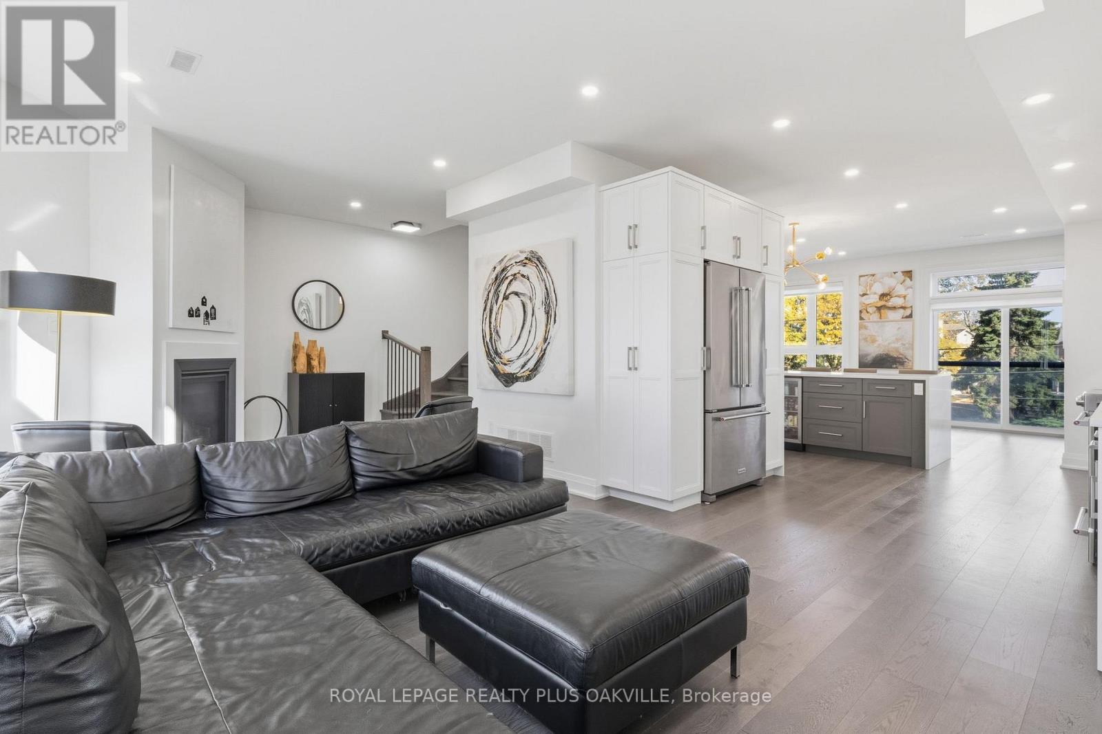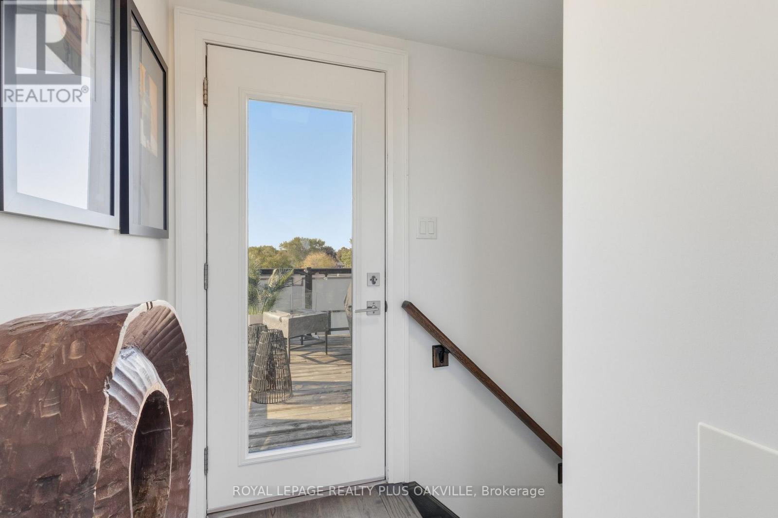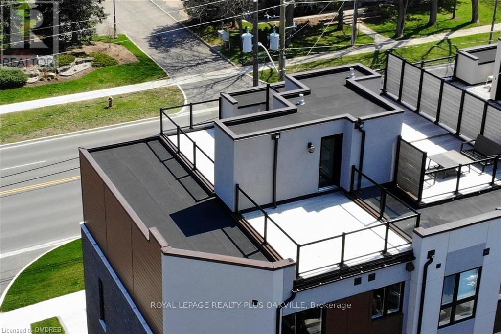 A One-of-a-Kind FREEHOLD Townhome in a Sought-After Community, Exceptional in both design and scale, this beautiful three-bedroom home stands apart as the largest and widest floorplan in this exclusive ten-residence enclave. Every detail has been carefully chosen, creating a bright, refined living space filled with natural light from its extra-large windows. The exterior blends brick, stone, and stucco with a striking 8-foot modern entrance door. Inside, you'll find 9-foot ceilings on every level, 8-foot solid interior wood doors, upgraded trim, and hardwood floors throughout no carpet anywhere. The custom kitchen is the heart of the home, featuring soft-close cabinetry, quartz countertops and backsplash, a waterfall island with undermount sink, KitchenAid appliances including a gas stove, and a built-in beverage fridge. The open-concept living area flows seamlessly and features a gas fireplace and Juliette balcony, creating a space that feels both stylish and inviting. The oak staircase with metal pickets and Hunter Douglas blinds continue the homes attention to detail. Upstairs, the primary suite offers a spa-like retreat with heated floors, a frameless glass shower, and double comfort-height vanities. Additional thoughtful upgrades such as custom closet organizers, LED pot lights, and a full-sized washer and dryer finishes the space beautifully. The appeal extends outdoors with a rare 375-square-foot rooftop terrace finished in cedar and complete with a gas line for barbecuing perfect for relaxing or entertaining under the open sky. Additional conveniences include inside garage entry, a large window in the garage, a covered second parking space, and an owned hot water tank. Located close to Downtown Burlington, shopping, schools, parks, the Burlington Centennial Bike Path, public transportation, major highways and the GO Train. This is a home worth seeing... you will truly be impressed. (id:4555)