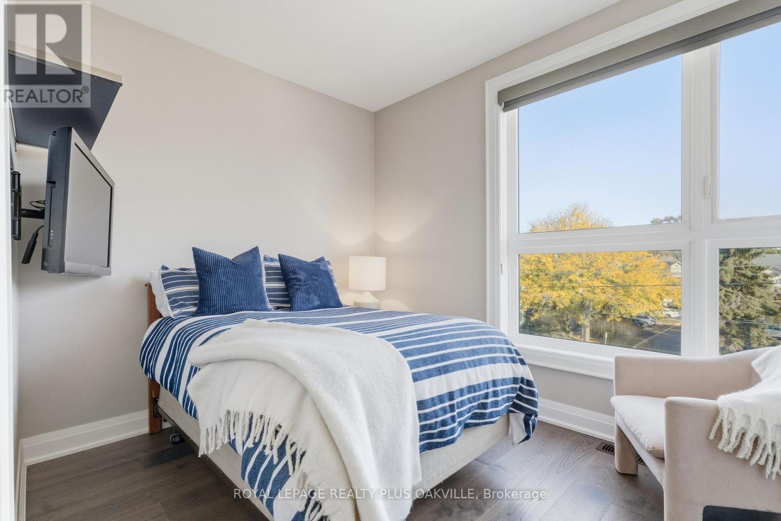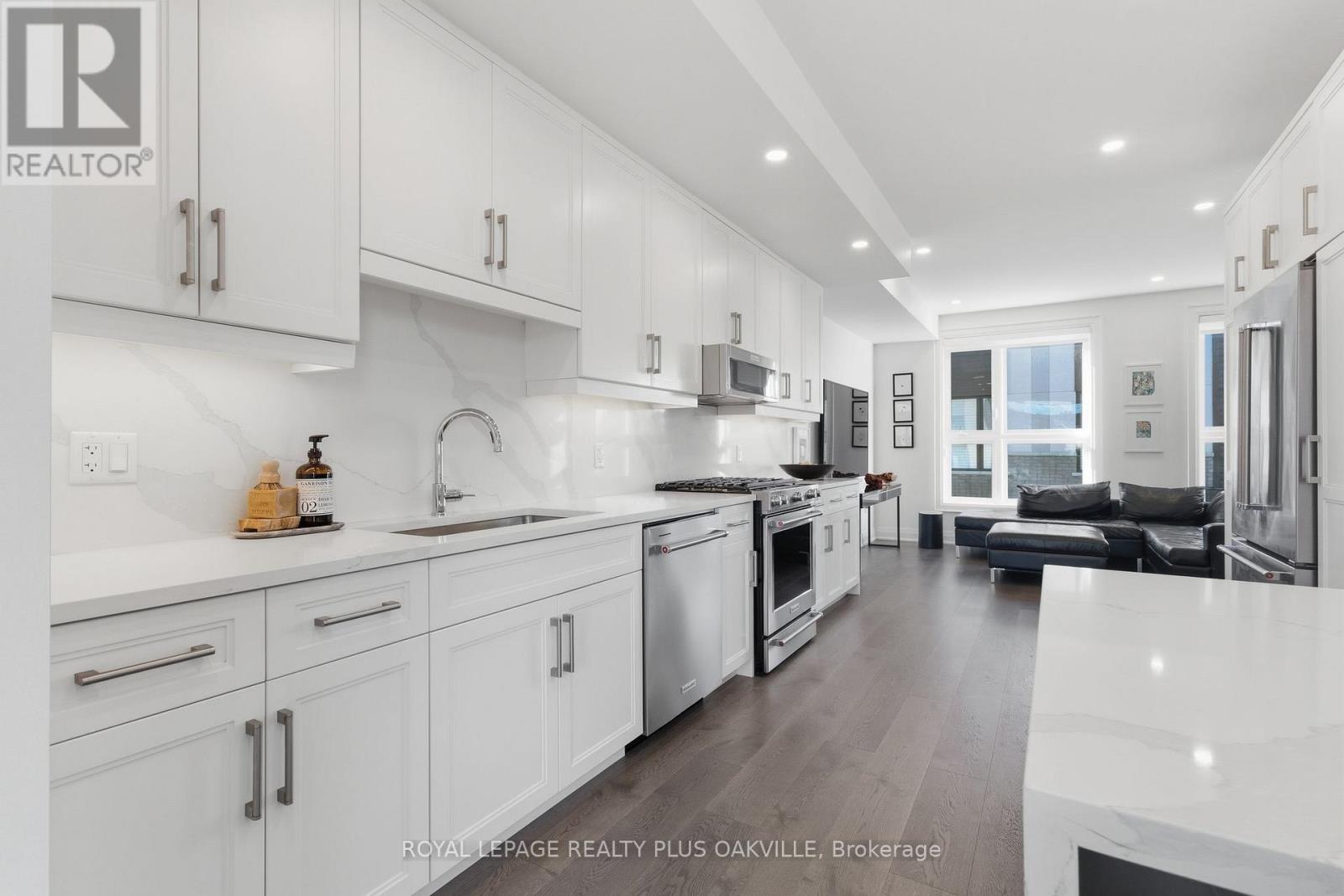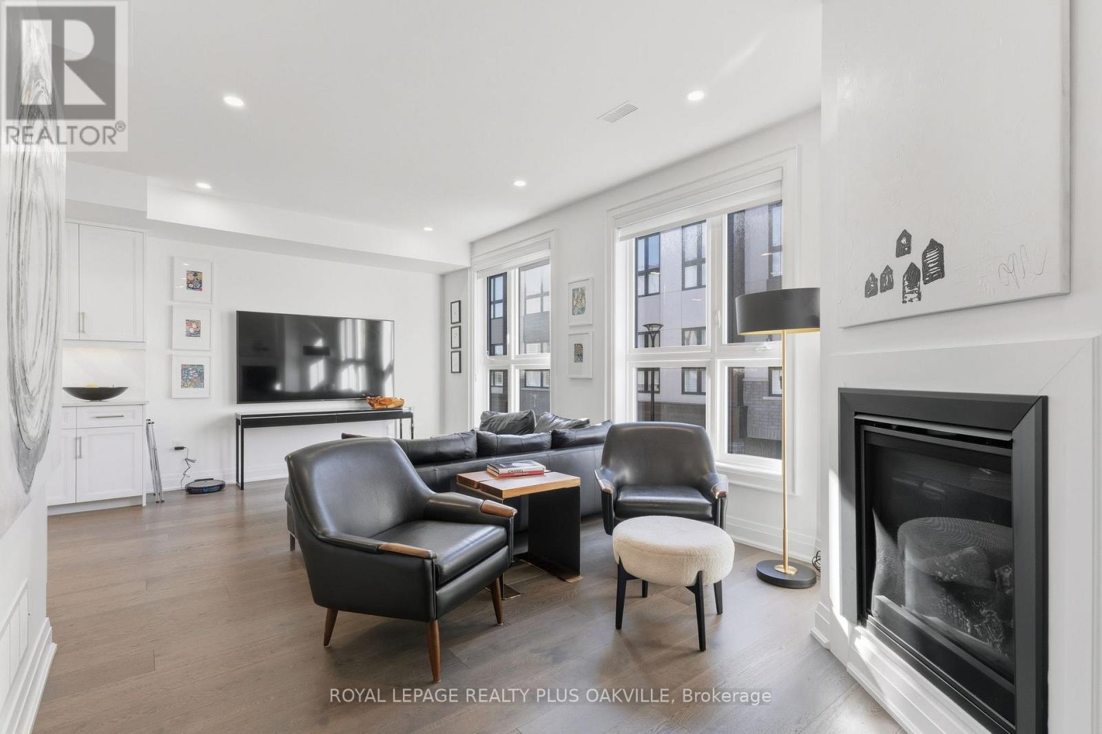 A One-of-a-Kind FREEHOLD Townhome in a Sought-After Community, Exceptional in both design and scale, this beautiful three-bedroom home stands apart as the largest and widest floorplan in this exclusive ten-residence enclave. Every detail has been carefully chosen, creating a bright, refined living space filled with natural light from its extra-large windows. The exterior blends brick, stone, and stucco with a striking 8-foot modern entrance door. Inside, you'll find 9-foot ceilings on every level, 8-foot solid interior wood doors, upgraded trim, and hardwood floors throughout no carpet anywhere. The custom kitchen is the heart of the home, featuring soft-close cabinetry, quartz countertops and backsplash, a waterfall island with undermount sink, KitchenAid appliances including a gas stove, and a built-in beverage fridge. The open-concept living area flows seamlessly and features a gas fireplace and Juliette balcony, creating a space that feels both stylish and inviting. The oak staircase with metal pickets and Hunter Douglas blinds continue the homes attention to detail. Upstairs, the primary suite offers a spa-like retreat with heated floors, a frameless glass shower, and double comfort-height vanities. Additional thoughtful upgrades such as custom closet organizers, LED pot lights, and a full-sized washer and dryer finishes the space beautifully. The appeal extends outdoors with a rare 375-square-foot rooftop terrace finished in cedar and complete with a gas line for barbecuing perfect for relaxing or entertaining under the open sky. Additional conveniences include inside garage entry, a large window in the garage, a covered second parking space, and an owned hot water tank. Located close to Downtown Burlington, shopping, schools, parks, the Burlington Centennial Bike Path, public transportation, major highways and the GO Train. This is a home worth seeing... you will truly be impressed. (id:4555)
