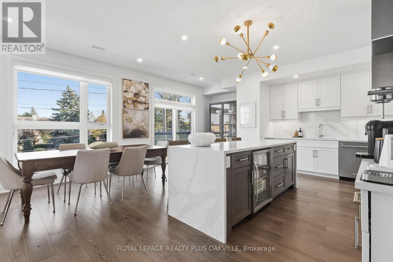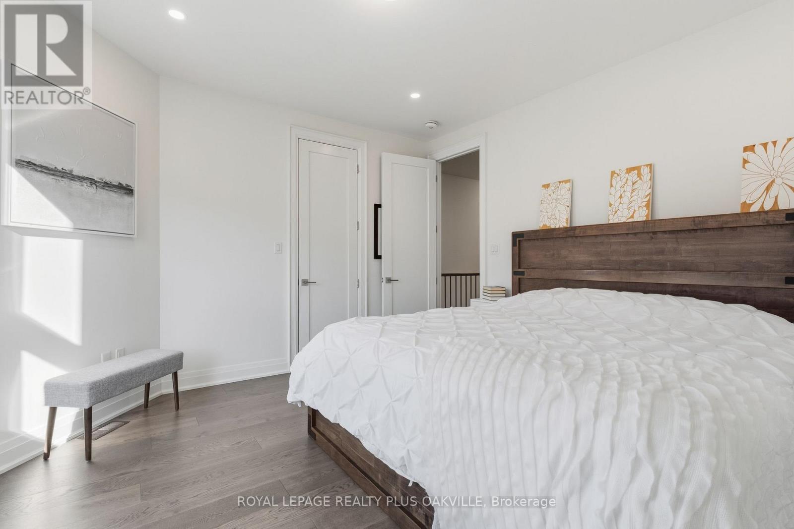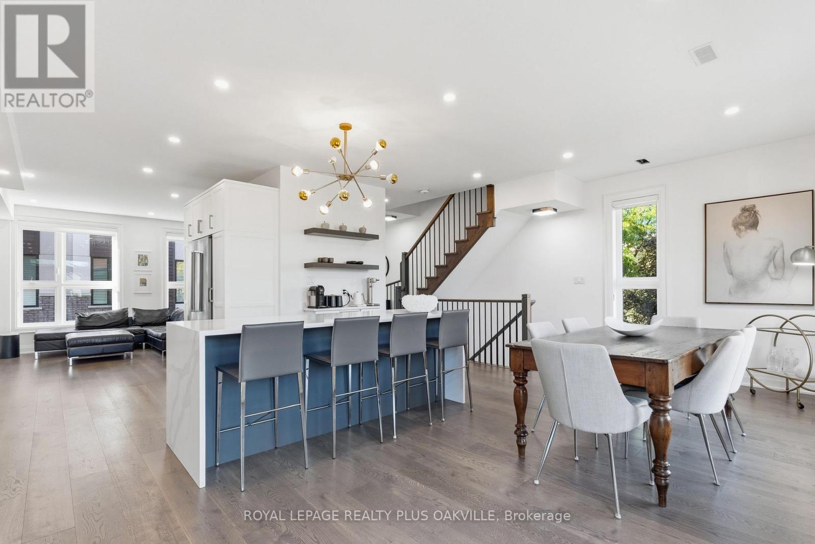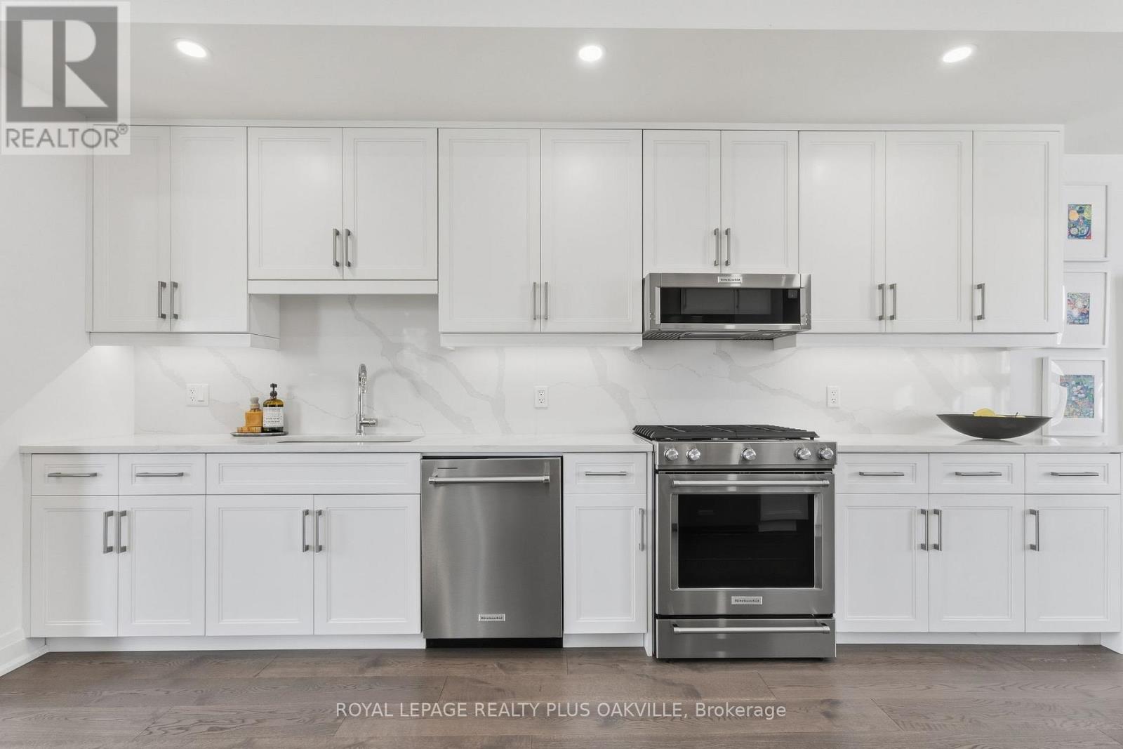 A One-of-a-Kind FREEHOLD Townhome in a Sought-After Community, Exceptional in both design and scale, this beautiful three-bedroom home stands apart as the largest and widest floorplan in this exclusive ten-residence enclave. Every detail has been carefully chosen, creating a bright, refined living space filled with natural light from its extra-large windows. The exterior blends brick, stone, and stucco with a striking 8-foot modern entrance door. Inside, you'll find 9-foot ceilings on every level, 8-foot solid interior wood doors, upgraded trim, and hardwood floors throughout no carpet anywhere. The custom kitchen is the heart of the home, featuring soft-close cabinetry, quartz countertops and backsplash, a waterfall island with undermount sink, KitchenAid appliances including a gas stove, and a built-in beverage fridge. The open-concept living area flows seamlessly and features a gas fireplace and Juliette balcony, creating a space that feels both stylish and inviting. The oak staircase with metal pickets and Hunter Douglas blinds continue the homes attention to detail. Upstairs, the primary suite offers a spa-like retreat with heated floors, a frameless glass shower, and double comfort-height vanities. Additional thoughtful upgrades such as custom closet organizers, LED pot lights, and a full-sized washer and dryer finishes the space beautifully. The appeal extends outdoors with a rare 375-square-foot rooftop terrace finished in cedar and complete with a gas line for barbecuing perfect for relaxing or entertaining under the open sky. Additional conveniences include inside garage entry, a large window in the garage, a covered second parking space, and an owned hot water tank. Located close to Downtown Burlington, shopping, schools, parks, the Burlington Centennial Bike Path, public transportation, major highways and the GO Train. This is a home worth seeing... you will truly be impressed. (id:4555)