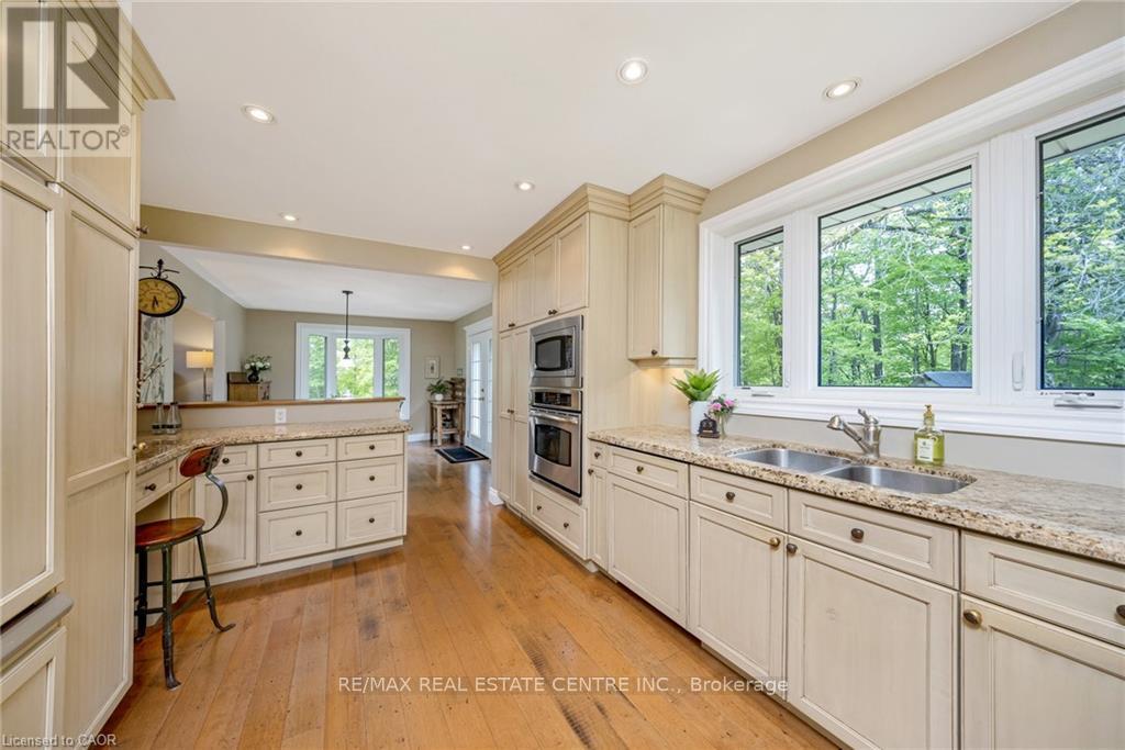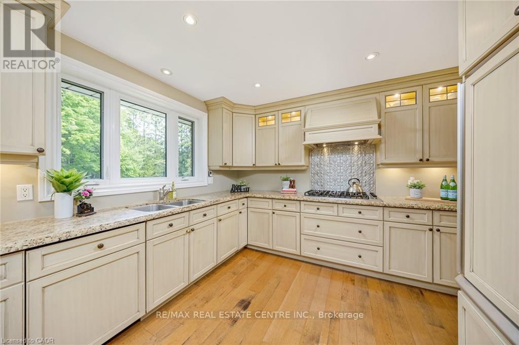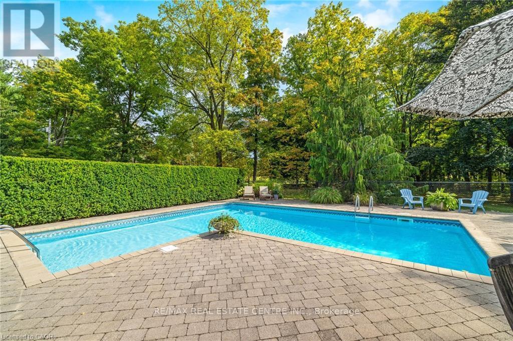 Enjoy the sounds of BRONTE CREEK and birds chirping as you BBQ in your wonderful new back yard! This 3+2 bedroom raised ranch bungalow w/ WALKOUT sits on a STUNNING 1.07 acre lot with a RAVINE along the full length of the property, NO NEIGHBOURS on THREE SIDES and is surrounded by trees for ULTRA-PRIVACY. Located in the highly sought-after village of Kilbride, this home is being offered for sale for the first time by the family of the ORIGINAL OWNERS. The home has lovely curb appeal, sitting back from the street, and features an over-sized living room and dining room w/ newer bay window and French doors to the beautiful yard. The renovated Barzotti kitchen features an abundance of cabinetry, quartz counters, pot lights, SS appliances including a 6-burner Viking gas cooktop and convenient desk area. There are 3 bedrooms on the main level and a 4-pc bathroom. The lower level WALKOUT features two additional bedrooms w/ large above-grade windows, one with a clubhouse cubby, 3-pc bath, large laundry w/ additional storage/workshop space, cold cellar, massive family room w/ fireplace, and den w/ walkout to yard and European roll-down shutters. Enjoy the large HEATED SALTWATER POOL with pool house and two changerooms tucked away for privacy. There is also a fun "camo" clubhouse with walkway and slide, shed for additional storage, firepit and massive back yard for the kids to run and play! Additional features include: steel roof, engineered hardwood on main level, NATURAL GAS HEATING, newer front door, new driveway (2020), new septic pump (2020), 2-car garage with loads of storage and SEPARATE ENTRANCE to BASEMENT from garage. Located close to all amenities, conservation areas, North Burlington Tennis Club, library, numerous golf courses, convenient corner variety store and easy access to major highways. Excellent school district in the desirable Kilbride Public School catchment. Do not miss out on this wonderful FOREVER HOME ... this is the one you have been waiting for (id:4555)