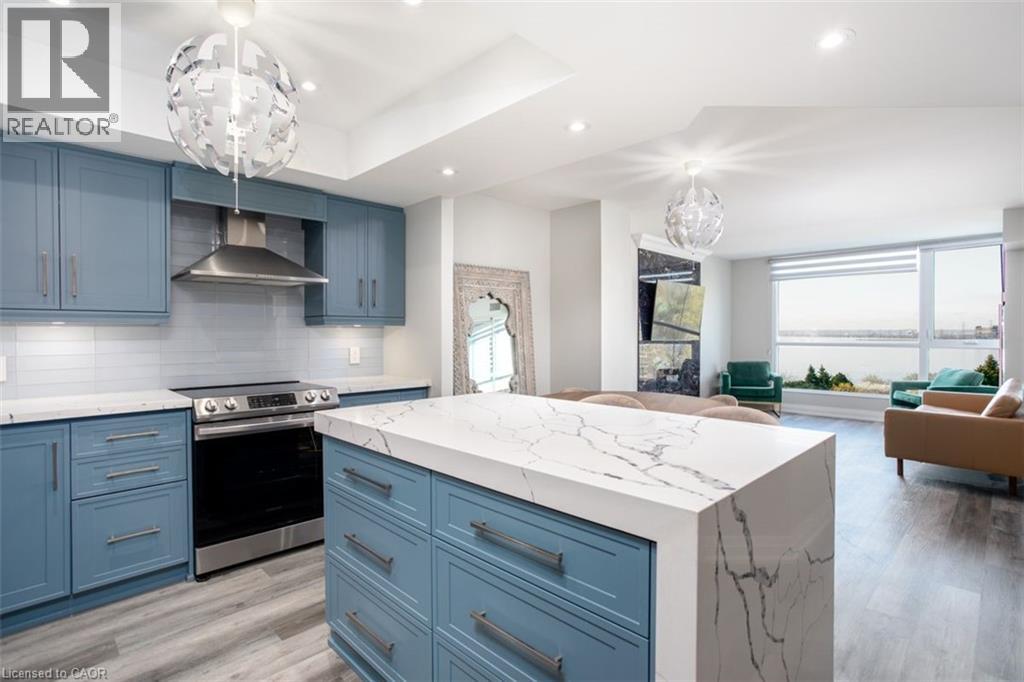 Luxury Lakeview Living in the Heart of Downtown Burlington Welcome to this spacious and beautifully updated 2-bedroom + sunroom luxury condo, perfectly situated in the vibrant core of downtown Burlington. Enjoy unobstructed, panoramic views of Lake Ontario from this premium residence, just steps to the waterfront, Spencer Smith Park, boutique shopping, dining, and all the conveniences of city living. This fully renovated, open-concept suite has been thoughtfully updated from top to bottom and freshly painted in modern, neutral tones. The bright and airy layout features a sun-filled living space, a versatile sunroom ideal for a home office or reading nook, and carpet-free living throughout. The primary bedroom offers a 4-piece ensuite, complemented by a 3-piece powder room, while in-suite laundry adds everyday convenience. Located in a pet-friendly building, residents enjoy an exceptional array of amenities including two side-by-side parking spaces, a generous 6' x 8' storage locker, a rooftop patio, exercise gym, sauna, hobby room, library/party room, and a car wash station. An outstanding opportunity to enjoy luxury, lifestyle, and location all in one. Easy to show-don't miss it! 2 parking spaces - Level B #8,#9. 1 storage locker - Level #60. (id:4555)
