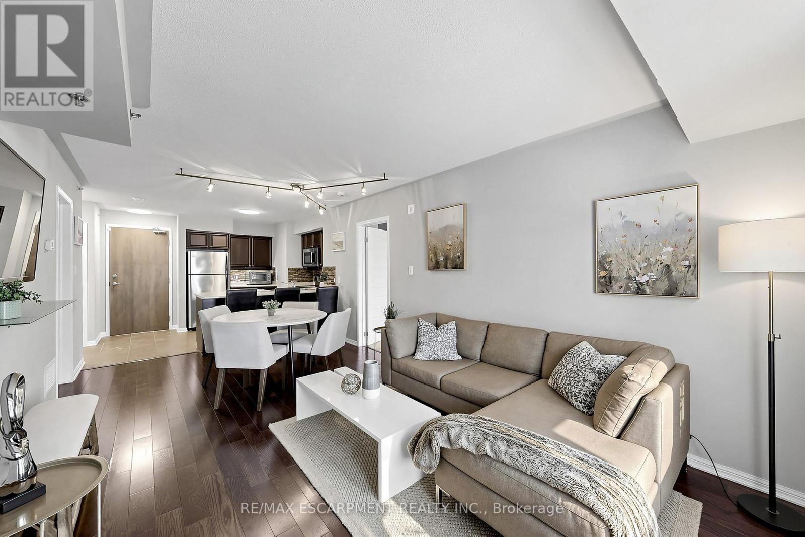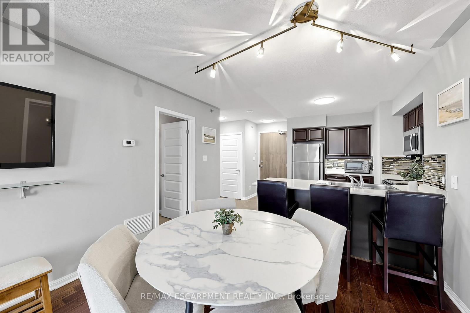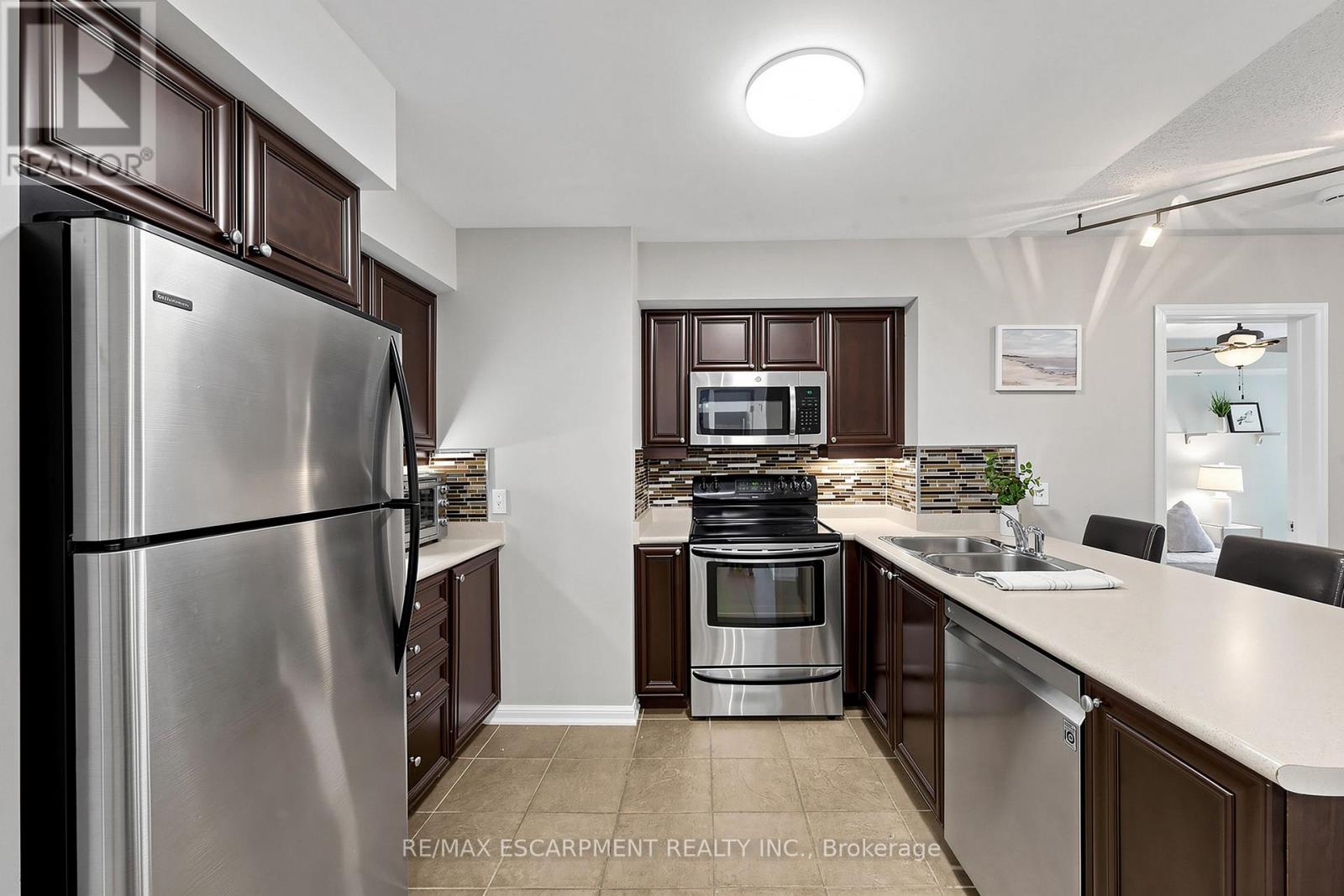 Welcome to Unit 103 at The Cornerstone Condos in Alton Village! A rare ground-level 2-bedroom, 2-bathroom suite offering the convenience and comfort of townhome-style living. With 881 SF, this is one of the larger units in the building, featuring a bright, airy, and functional open-concept layout that blends urban convenience with natural charm. Perfect for first-time buyers, downsizers, or rightsizers this is low-maintenance living at its best. Enjoy easy access to the outdoors through your private patio, perfect for morning coffee, entertaining, or letting pets safely enjoy fresh air, a standout feature that sets this unit apart from traditional condo living. Plenty of windows fill the space with natural light, creating a warm, welcoming atmosphere. The unit showcases hardwood flooring throughout the main living areas, a modern kitchen with nice dark cabinetry, glass backsplash, SS appliances, and a breakfast bar. The primary bedroom includes a large walk-in closet and private ensuite, while the second bedroom is equally spacious, ideal for guests, a home office, or a growing family. An additional full bathroom and the convenience of in-suite laundry add to the home's functionality. Additional features include 2 parking spaces (one underground, one surface) and 1 private storage locker. The well-maintained Cornerstone community offers excellent amenities such as a party room, outdoor playground, and ample visitor parking. Conveniently located minutes to Hwy 407 and within walking distance to shops, a medical clinic, and the Haber Community Centre, this home combines location, lifestyle, and functionality in one exceptional package. (id:4555)